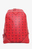 Refresh availabilityMCM Red Leather Logo Large Backpack. Top zip closure. Top handle and adjustable backpack straps at back. Front zip up pocket. Black leather interior lining. 3 interior compartments. Gold-toned hardware. Tonal stitching.