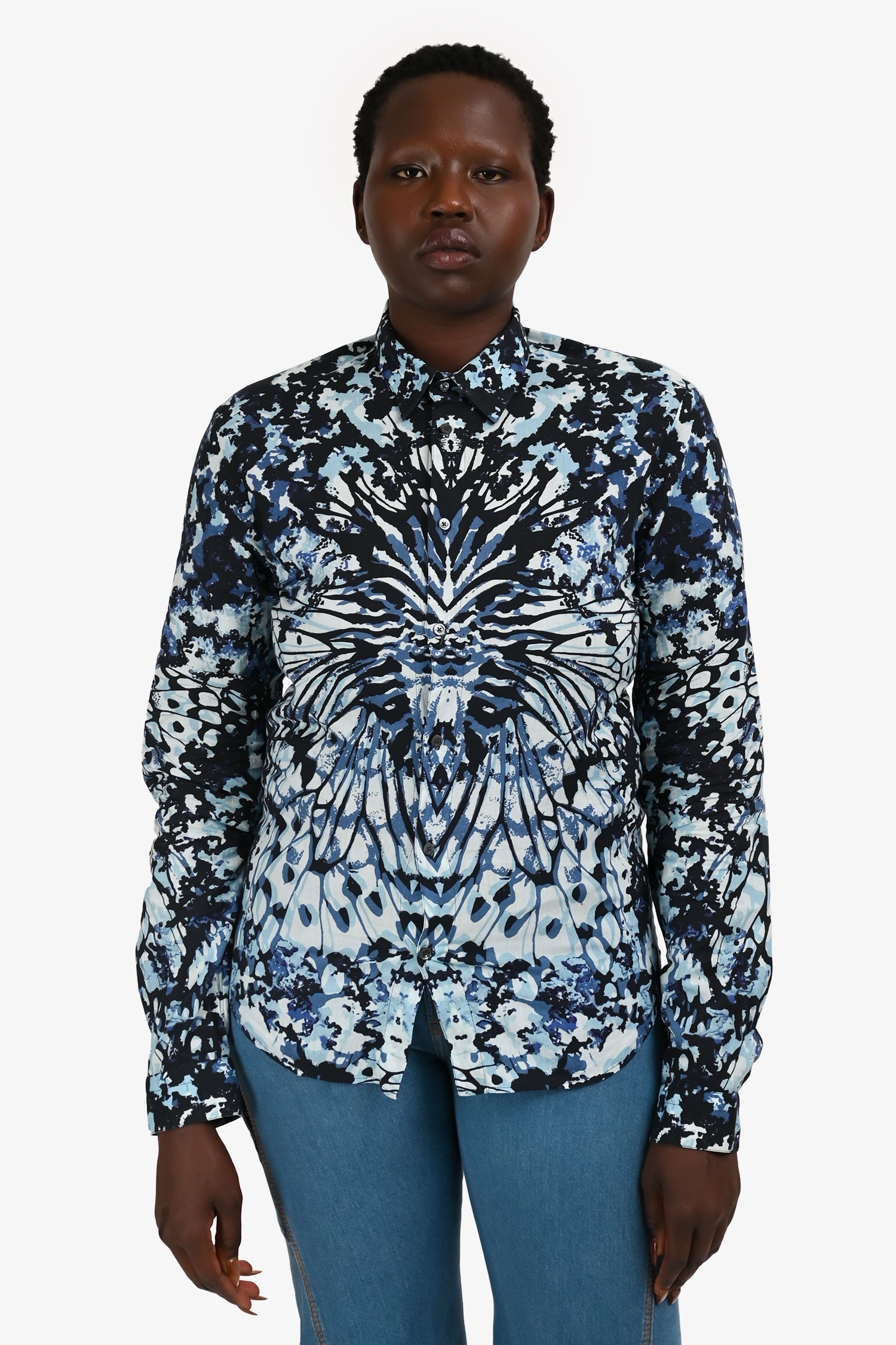 MCQ by Alexander McQueen Blue Cotton Butterfly Button Down Shirt Size 46
