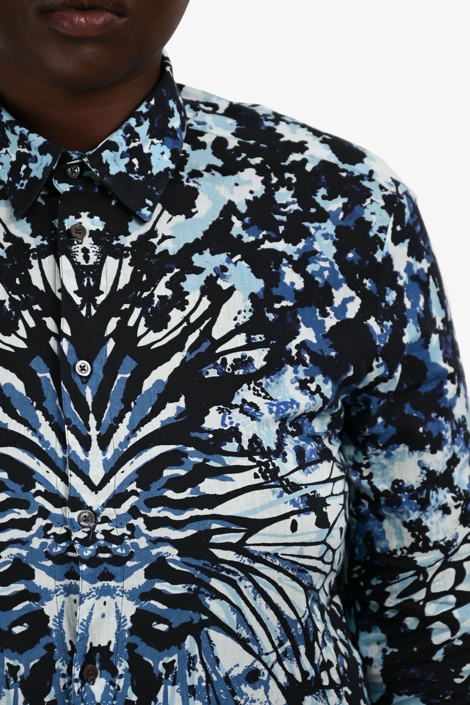 Refresh availabilityMCQ by Alexander McQueen Blue Cotton Butterfly Button Down Shirt. Button closure on the cuffs.