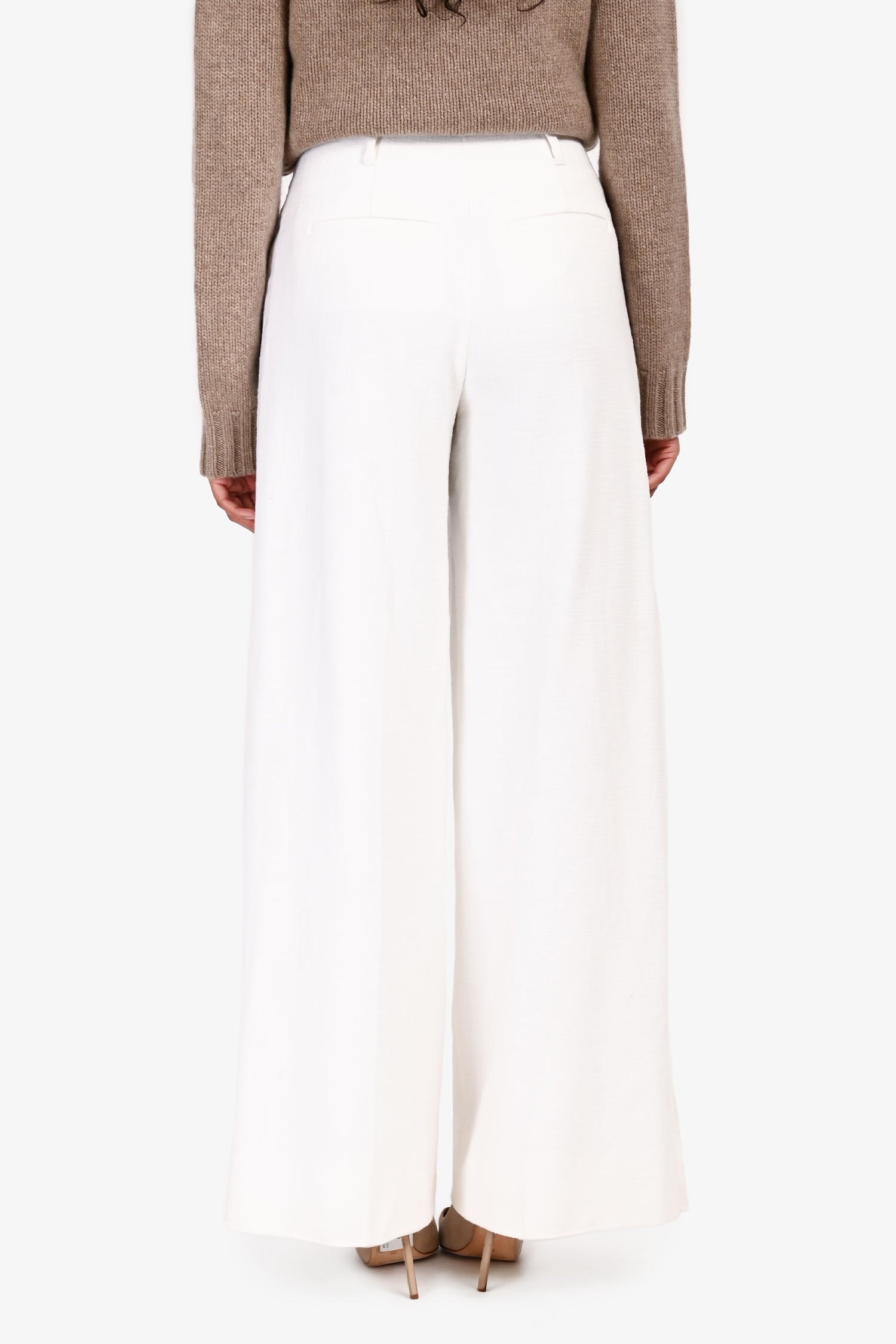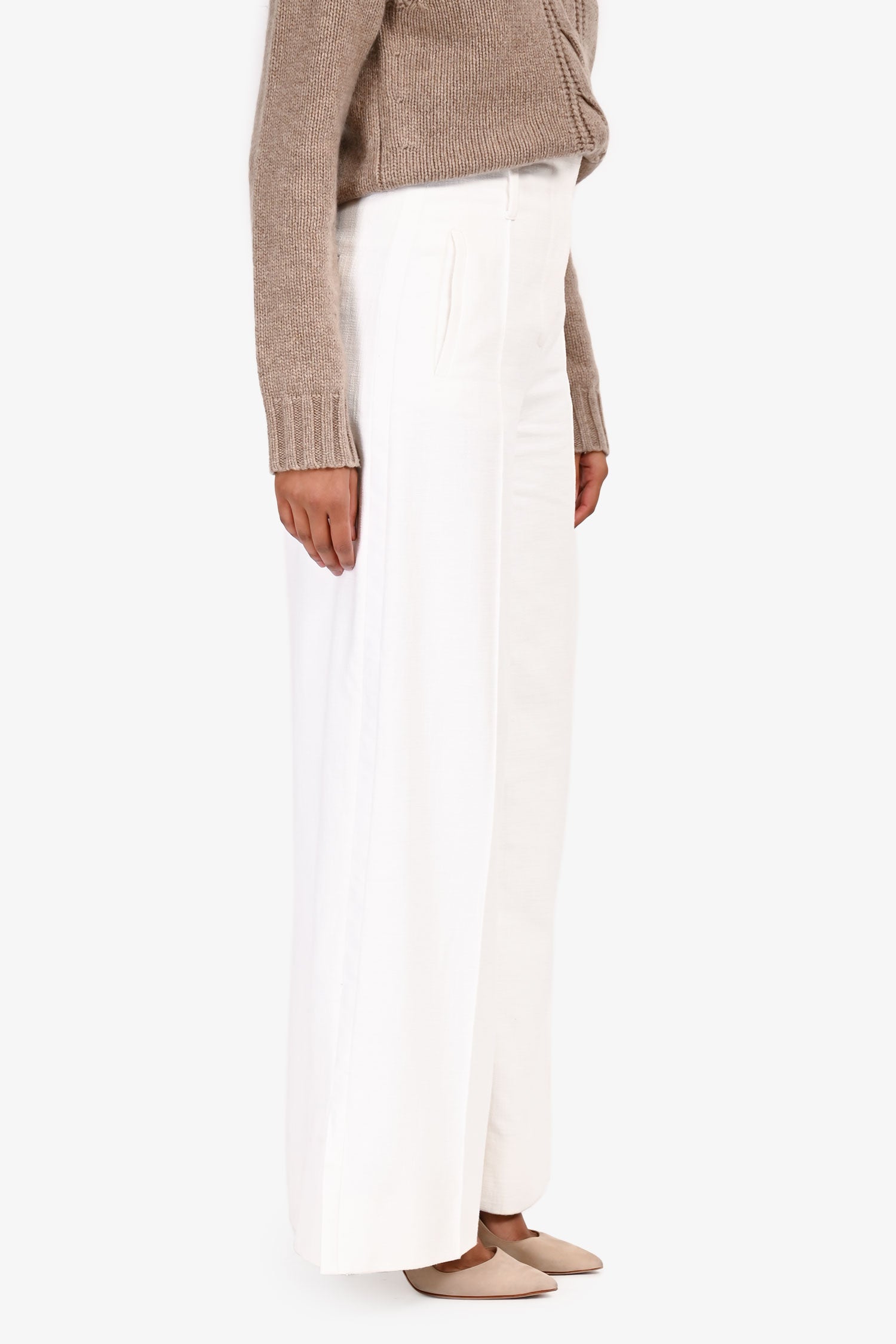Refresh availabilityMe+Em White Cotton Wide Leg Pants. Pull-on. Front zip closure. Front and rear pockets. Waist belt loops. Tonal stitching.