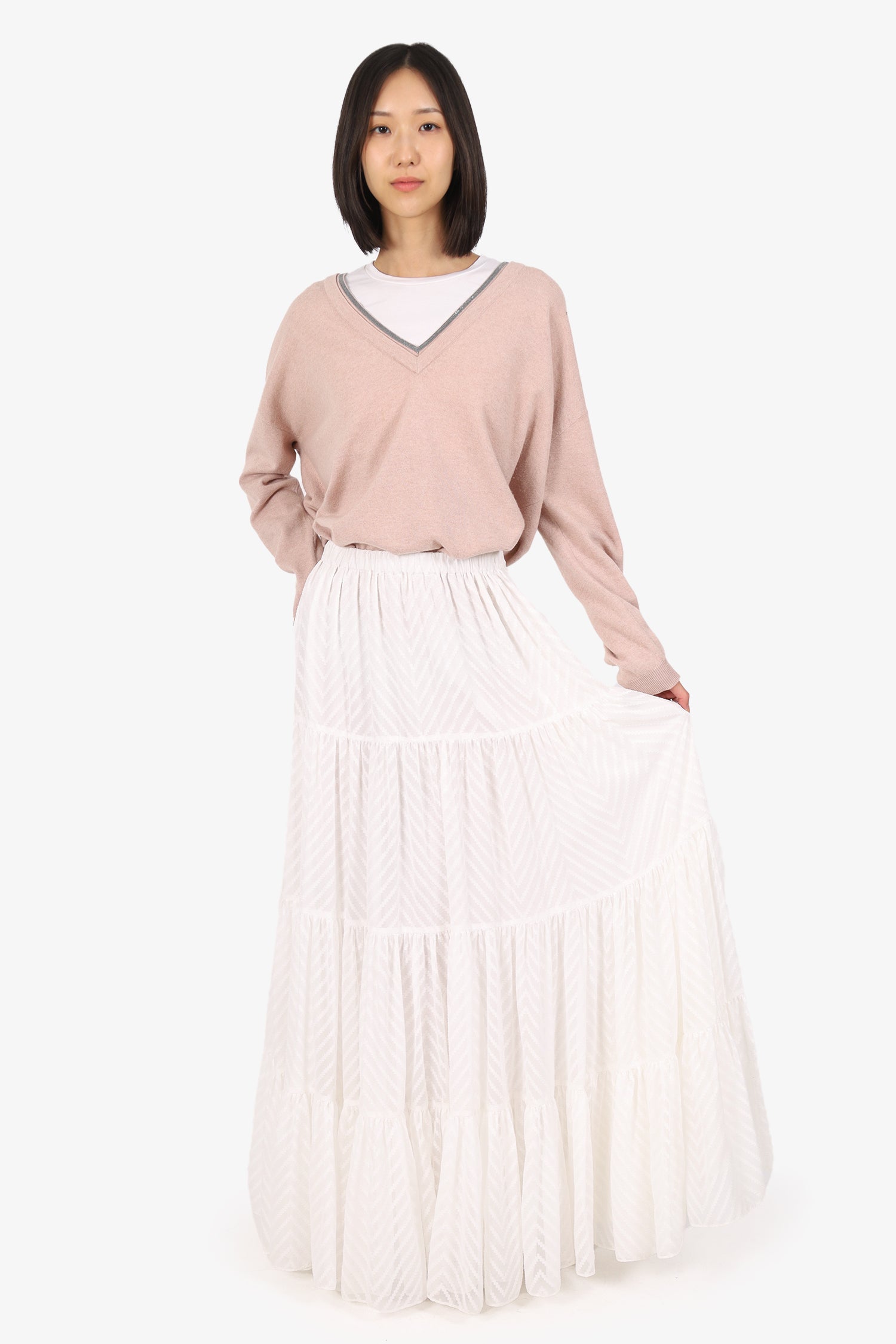 Michael Costello x Revolve White Tiered Maxi Skirt Size XS