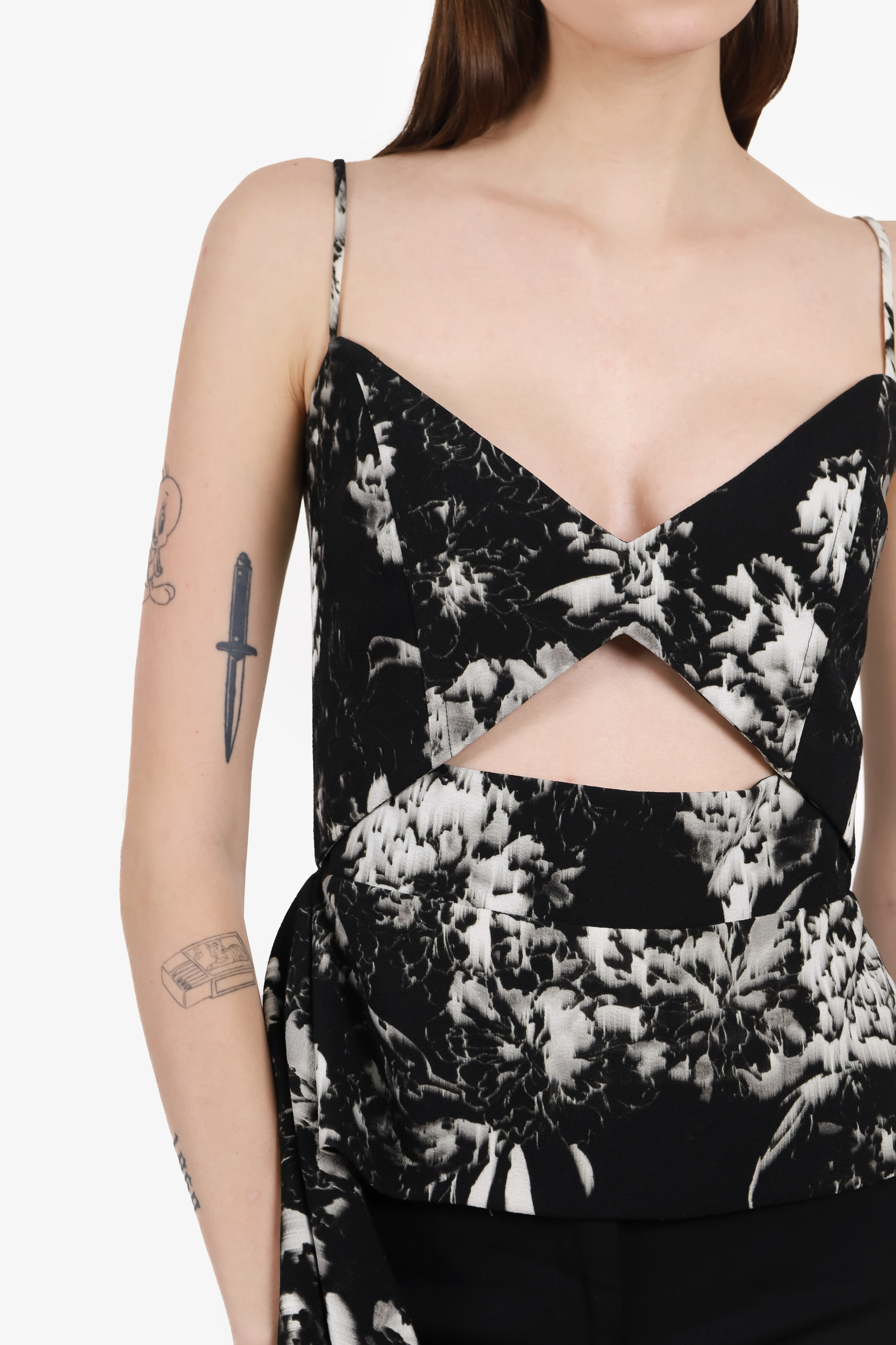 Refresh availabilityMichelle Mason Black/White Printed Cut-out Top. Back zipper closure. Lined. Tonal stitching.
