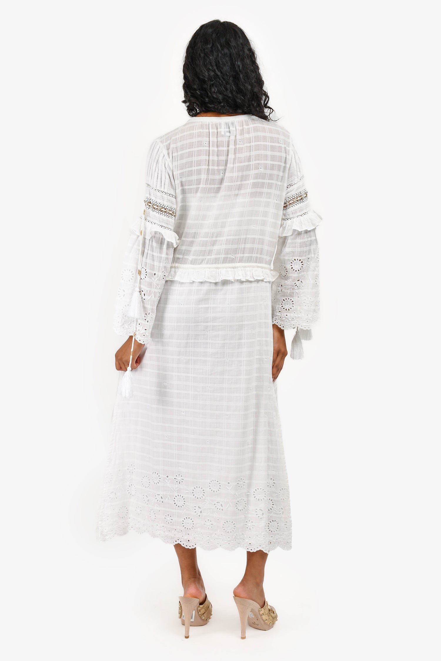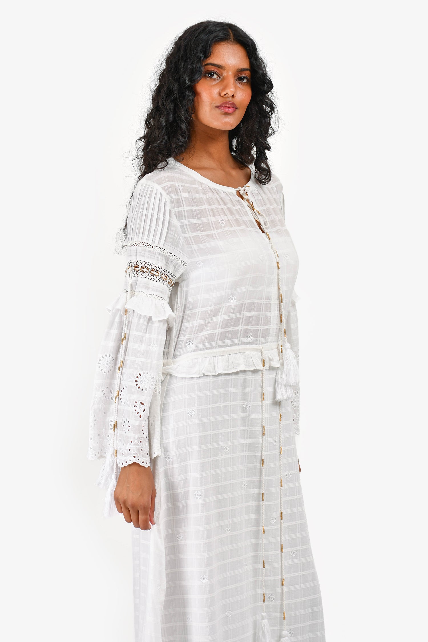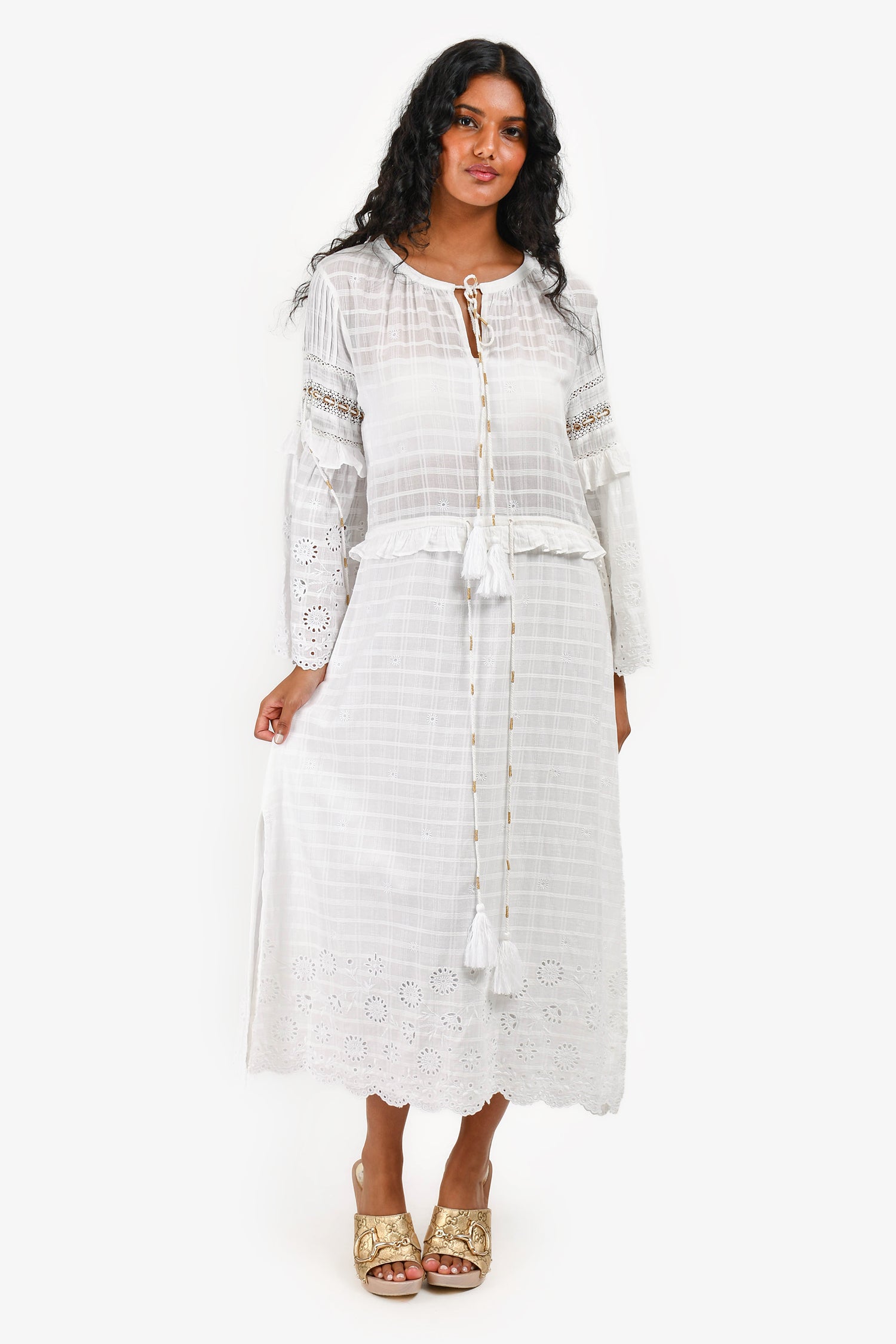 Misa Los Angeles White Patterned Tassel Detailed Midi Dress Size XS