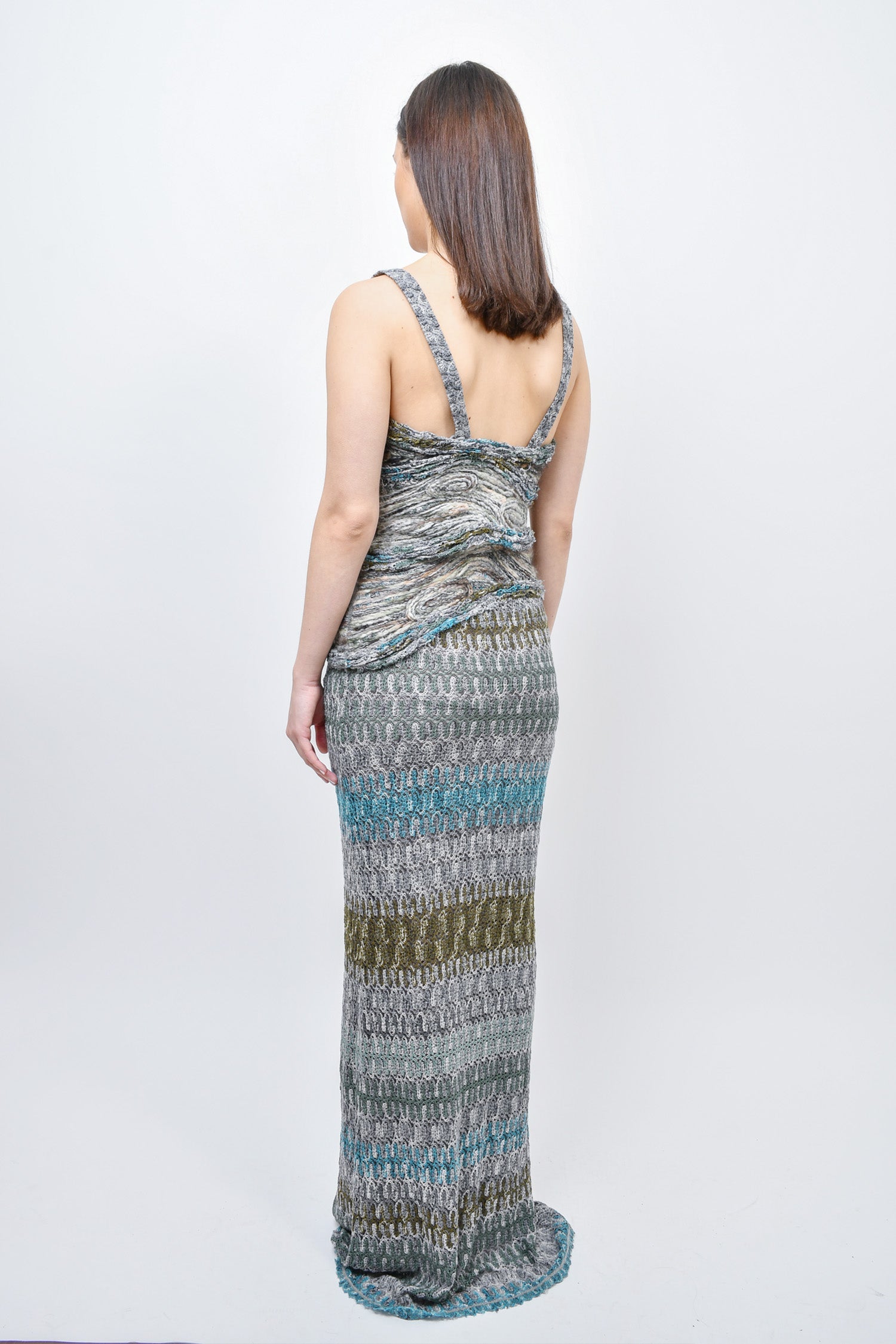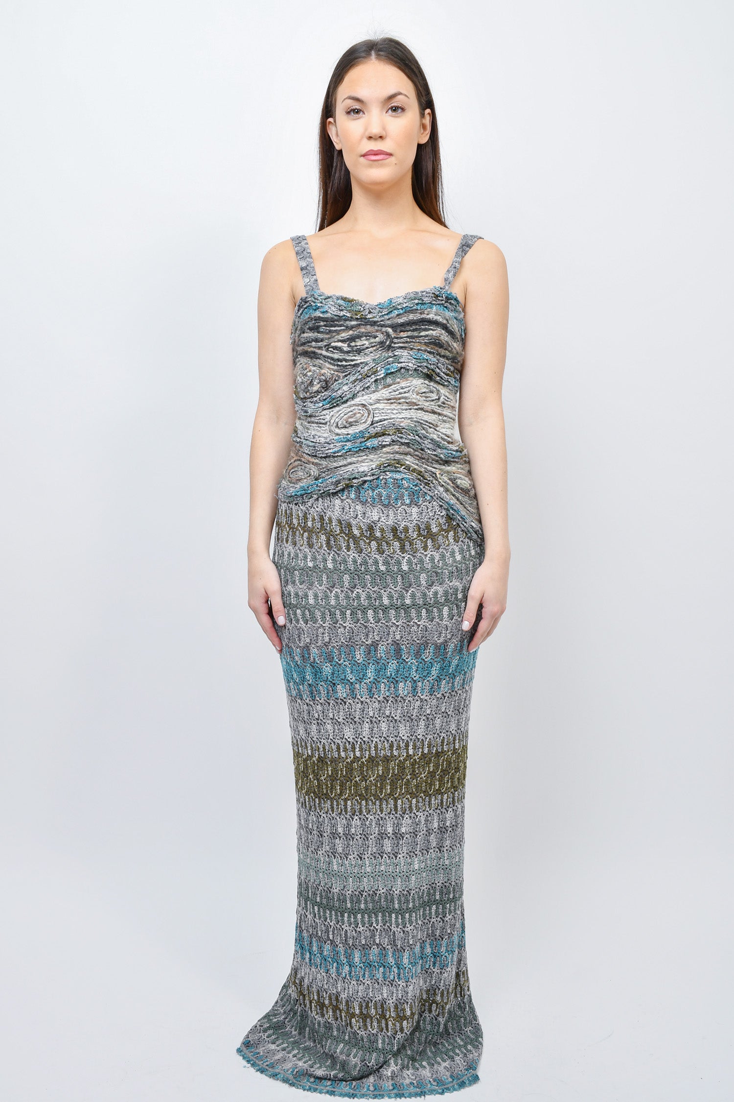Missoni Blue/Grey Striped Knit Maxi Dress sz 40