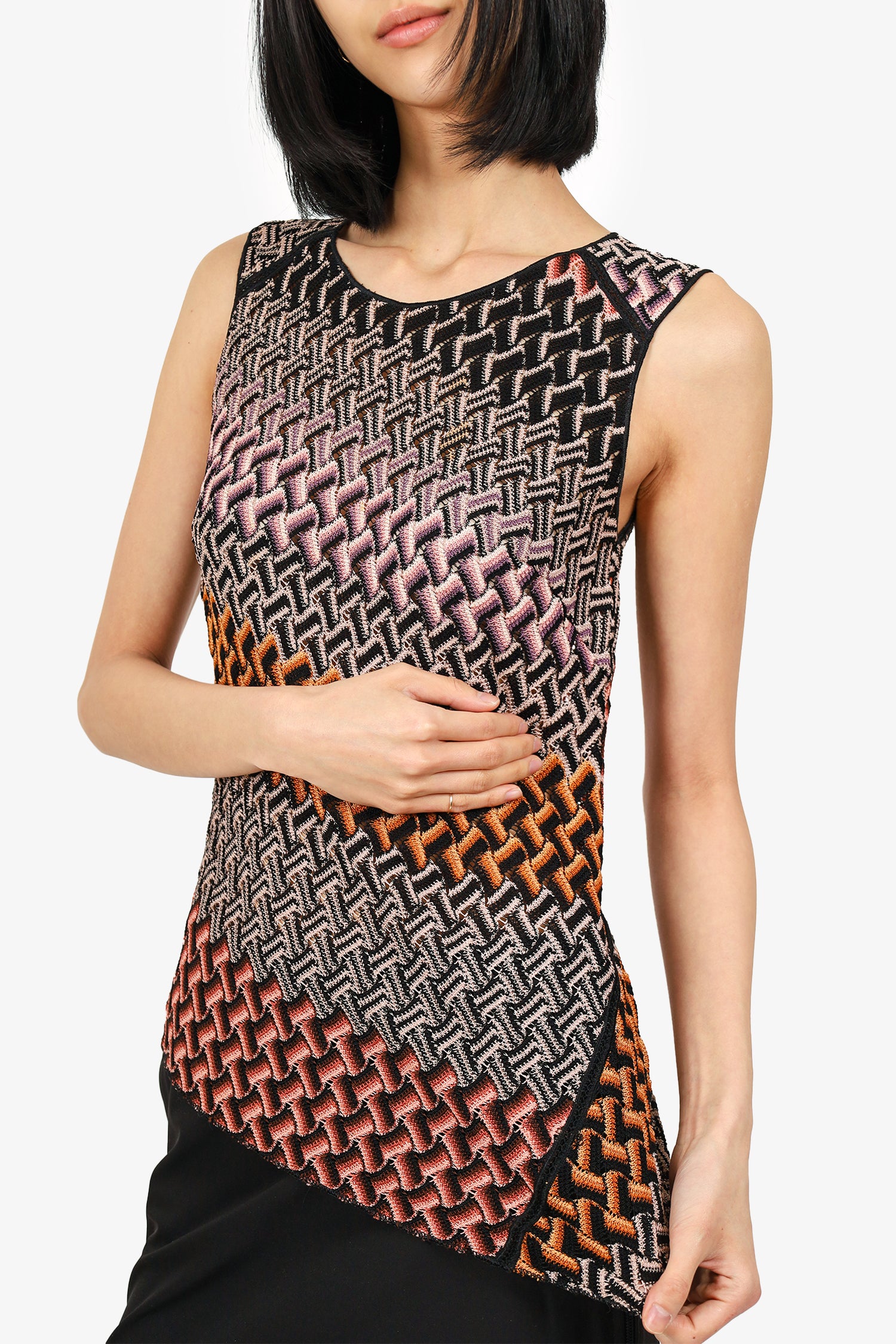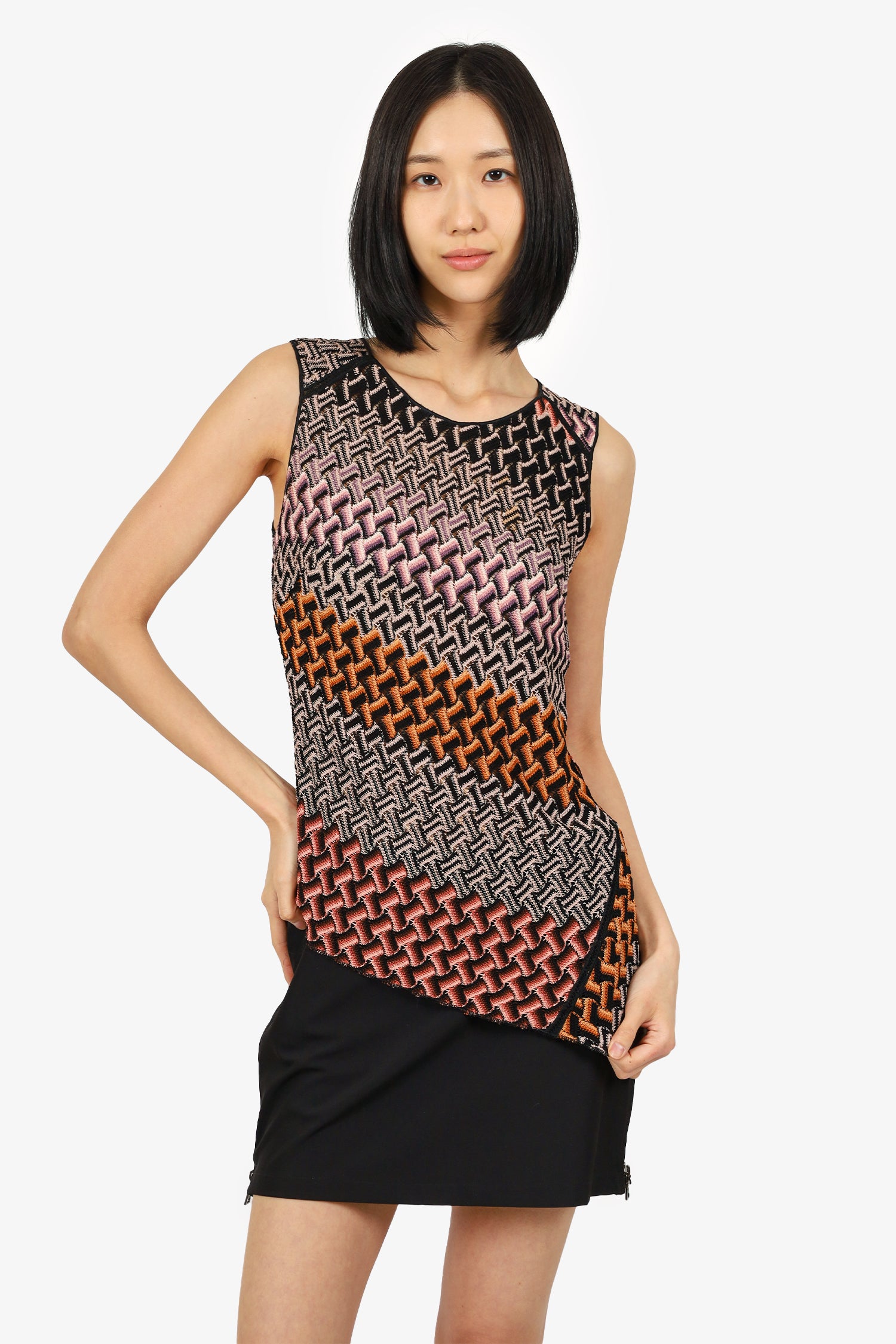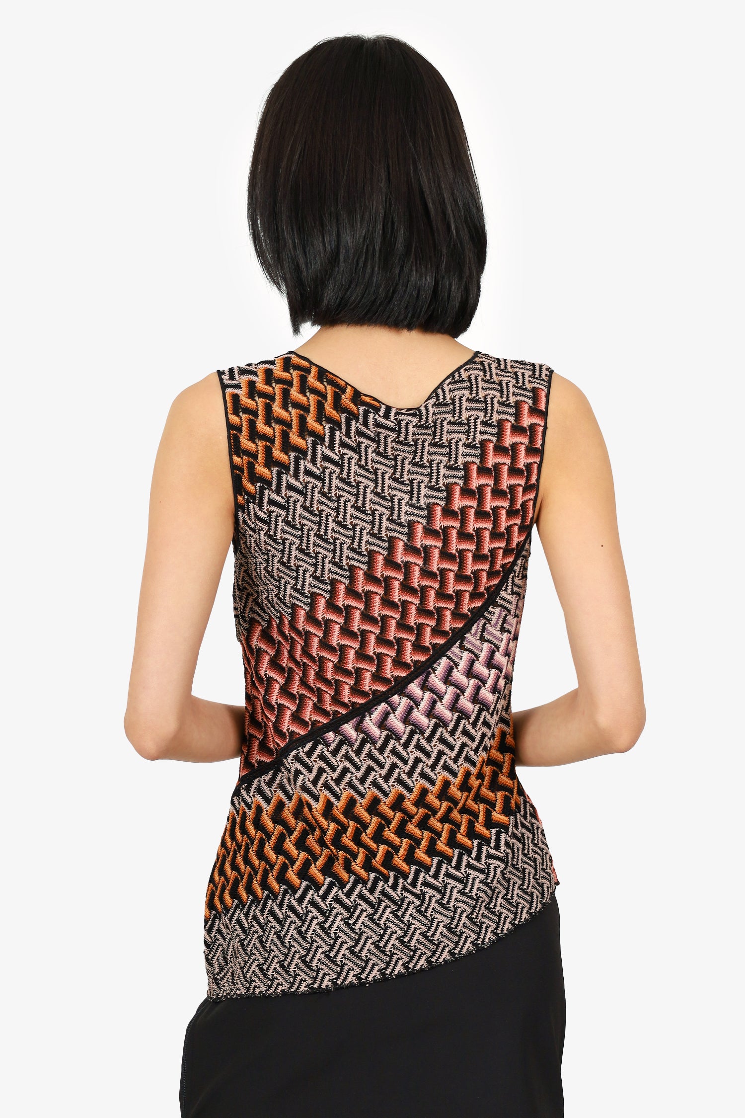 Refresh availabilityMissoni Brown/Orange Knit Sleeveless Top. Pull-on. Round-neckline. Perforated knit exterior. Unlined. Tonal stitching.