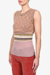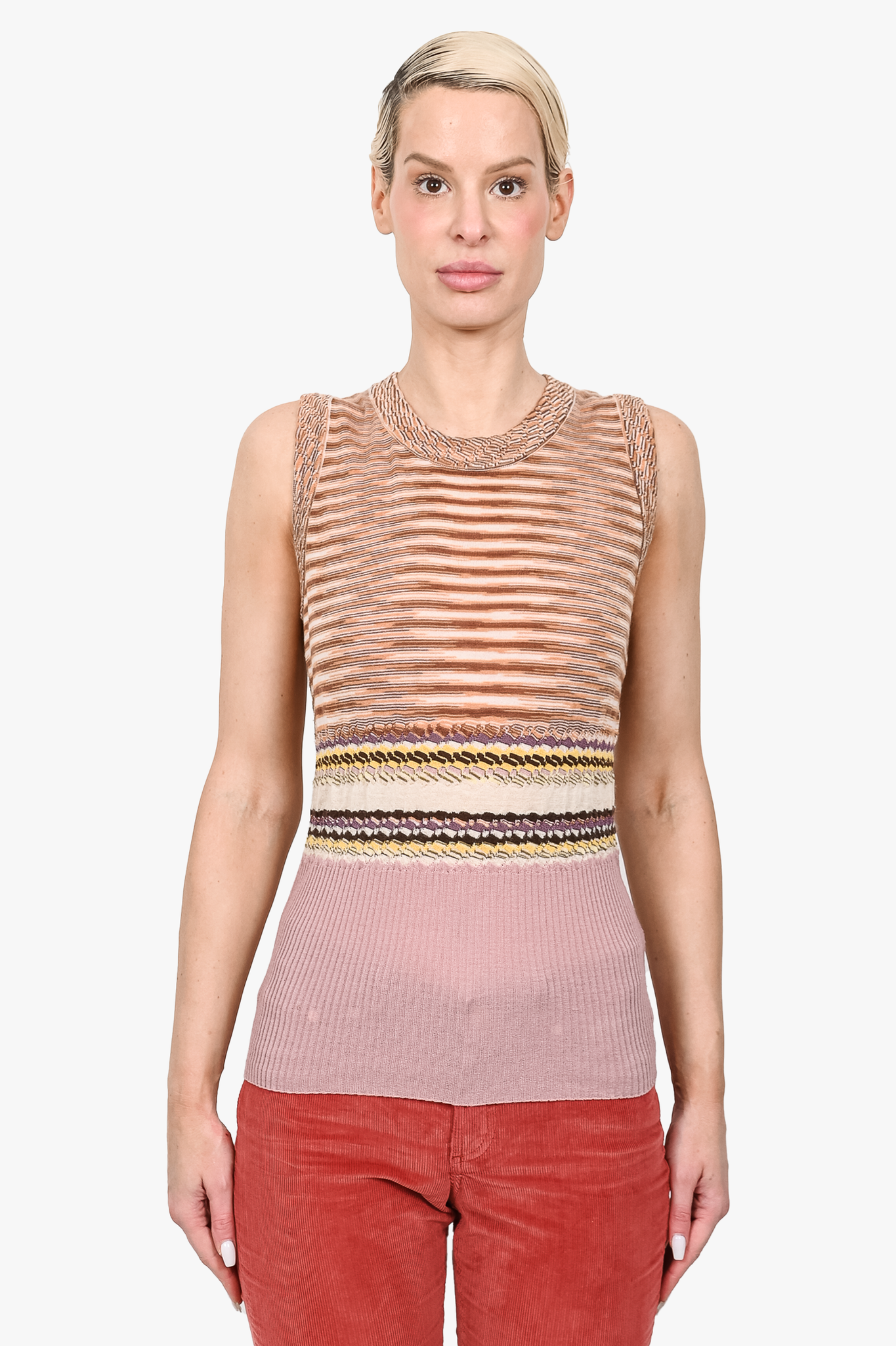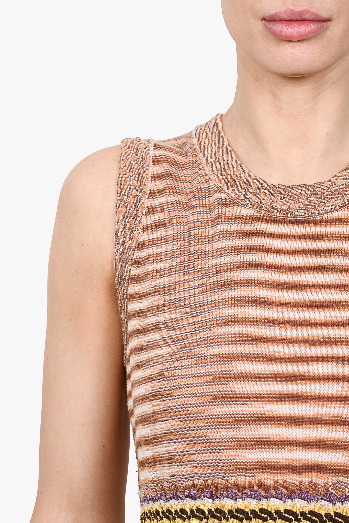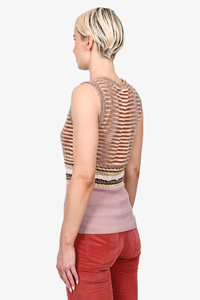 Missoni Brown/Pink Striped Sleeveless Knit Top. Round neck. Tonal stitching.