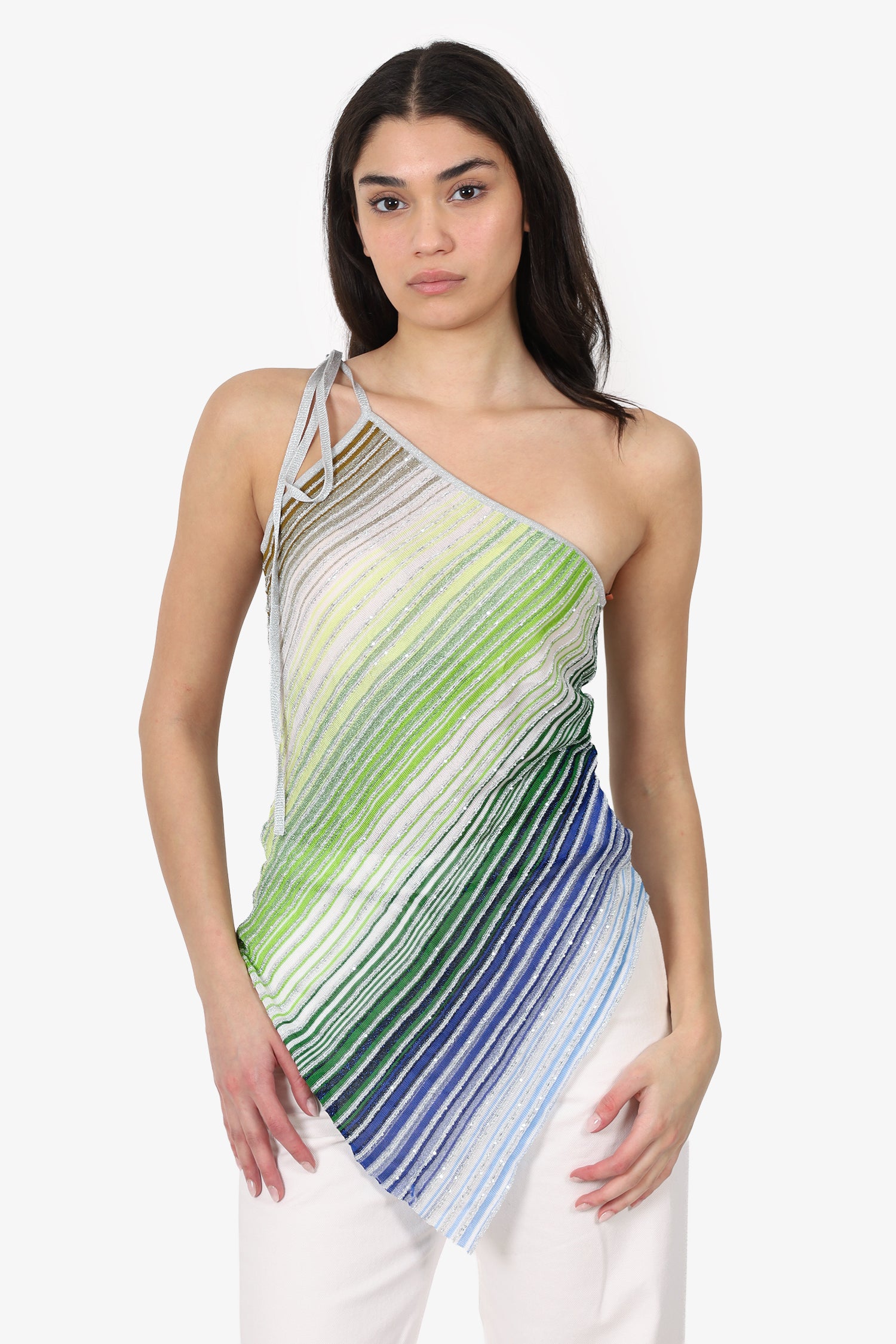 Refresh availabilityMissoni Green Asymmetric Strappy Top. Pull-on. One shoulder with tie-up closure. Tonal stitching.