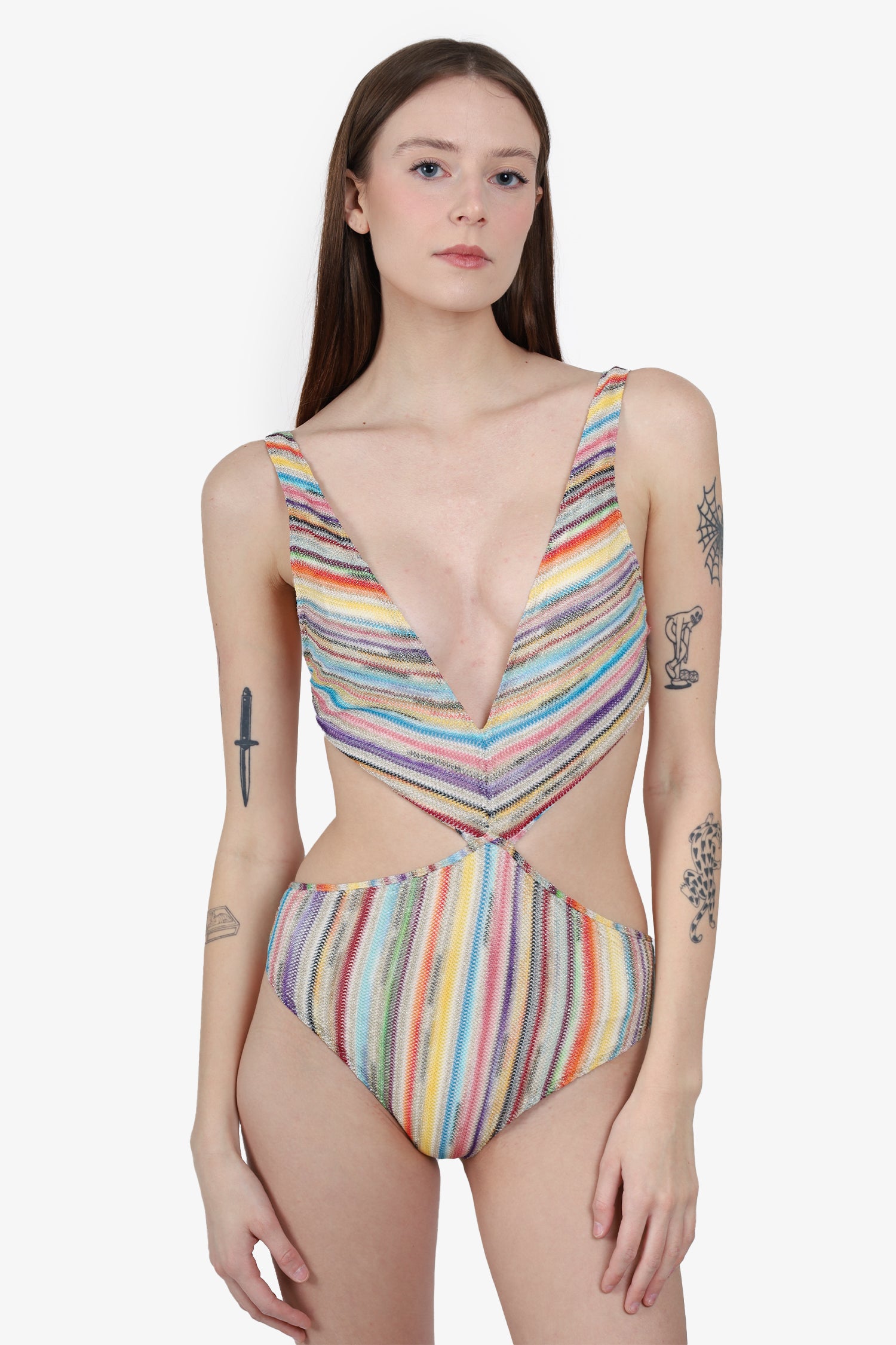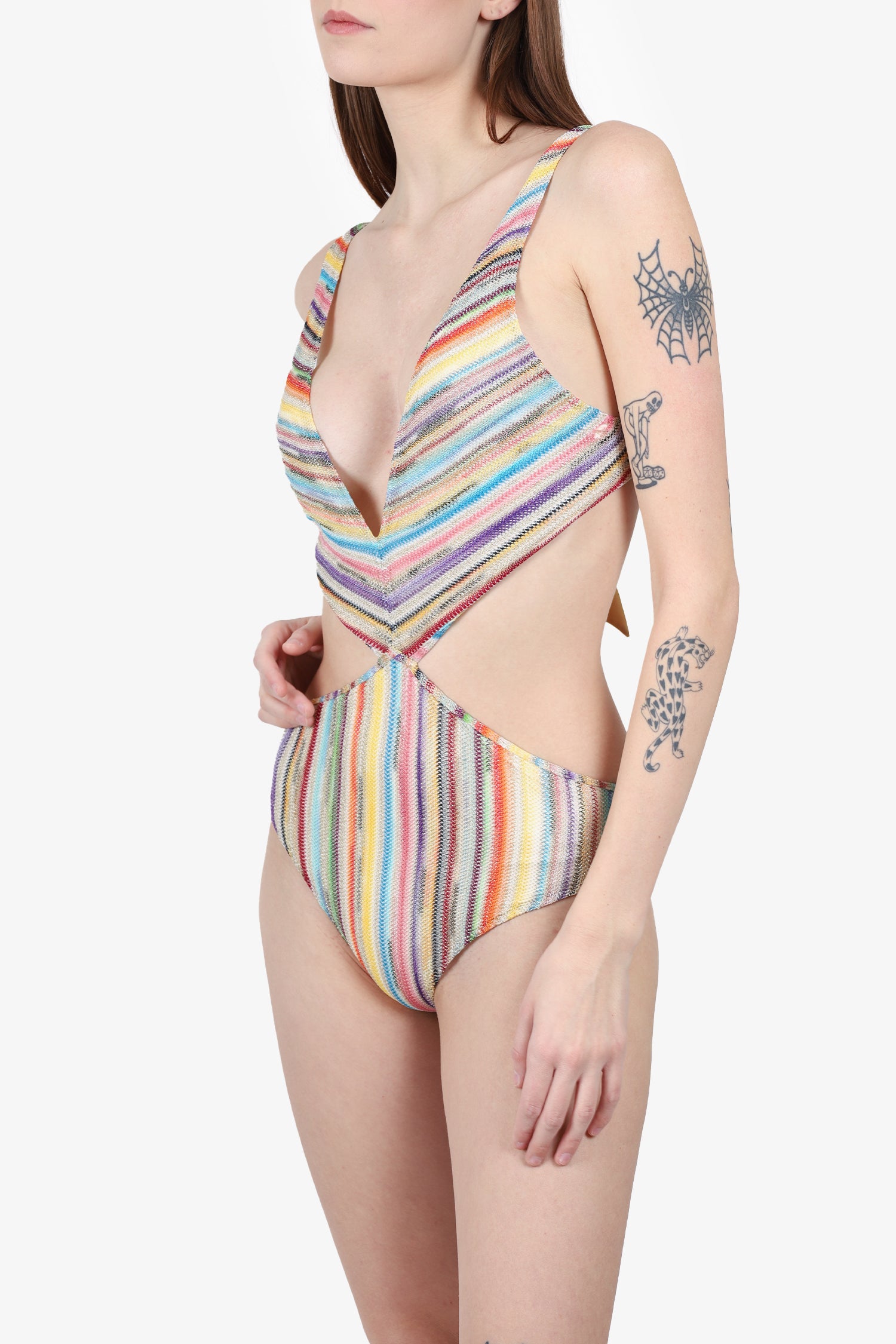 Refresh availabilityMissoni Multicolor Striped Bathing Suit. Plunging neckline. Back tie-up closure. Interior lining. Tonal stitching