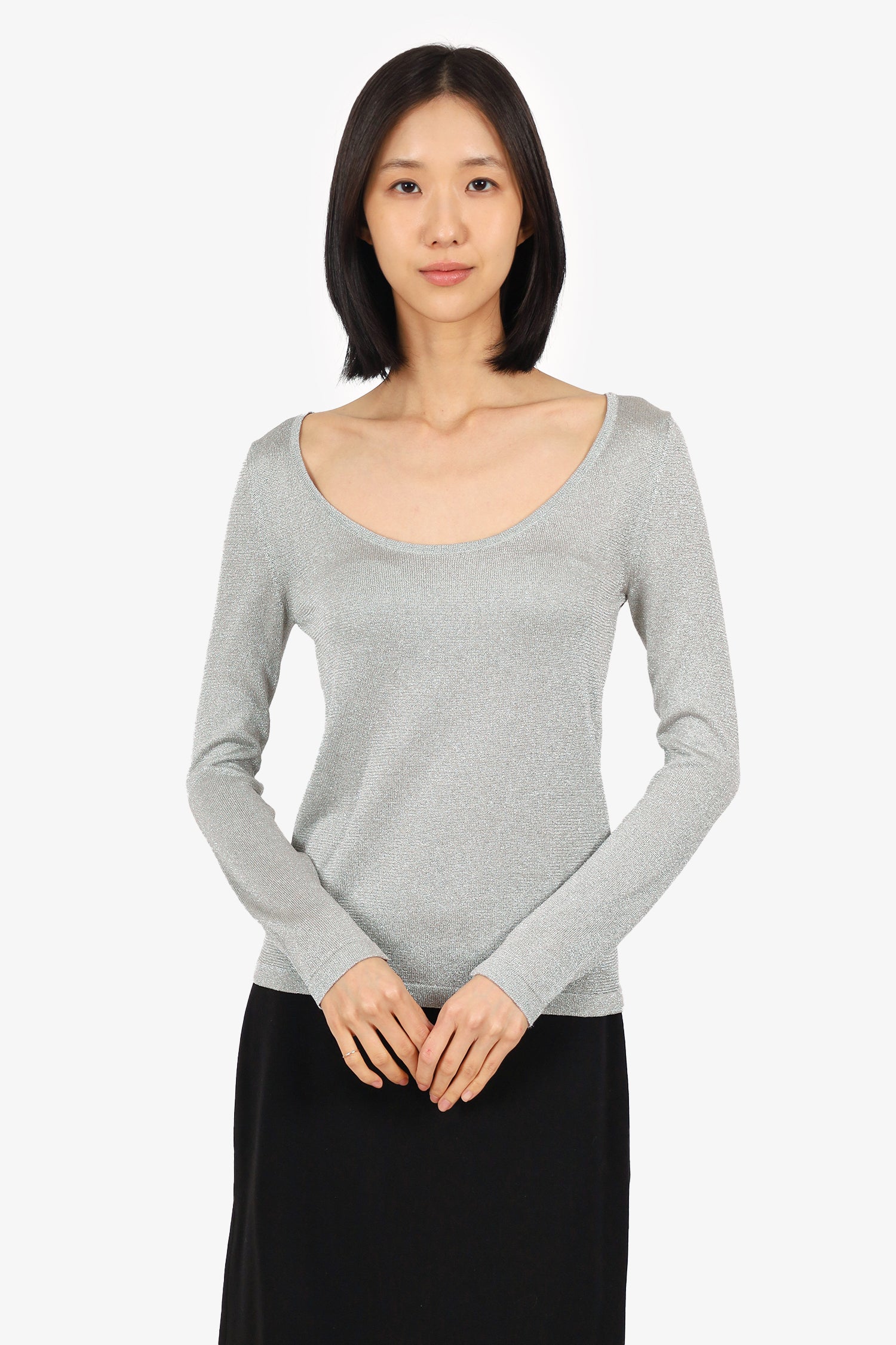Refresh availabilityMissoni Silver Metallic Knit Round Neck Top. Pull-on. Scoop neckline. Tonal stitching.