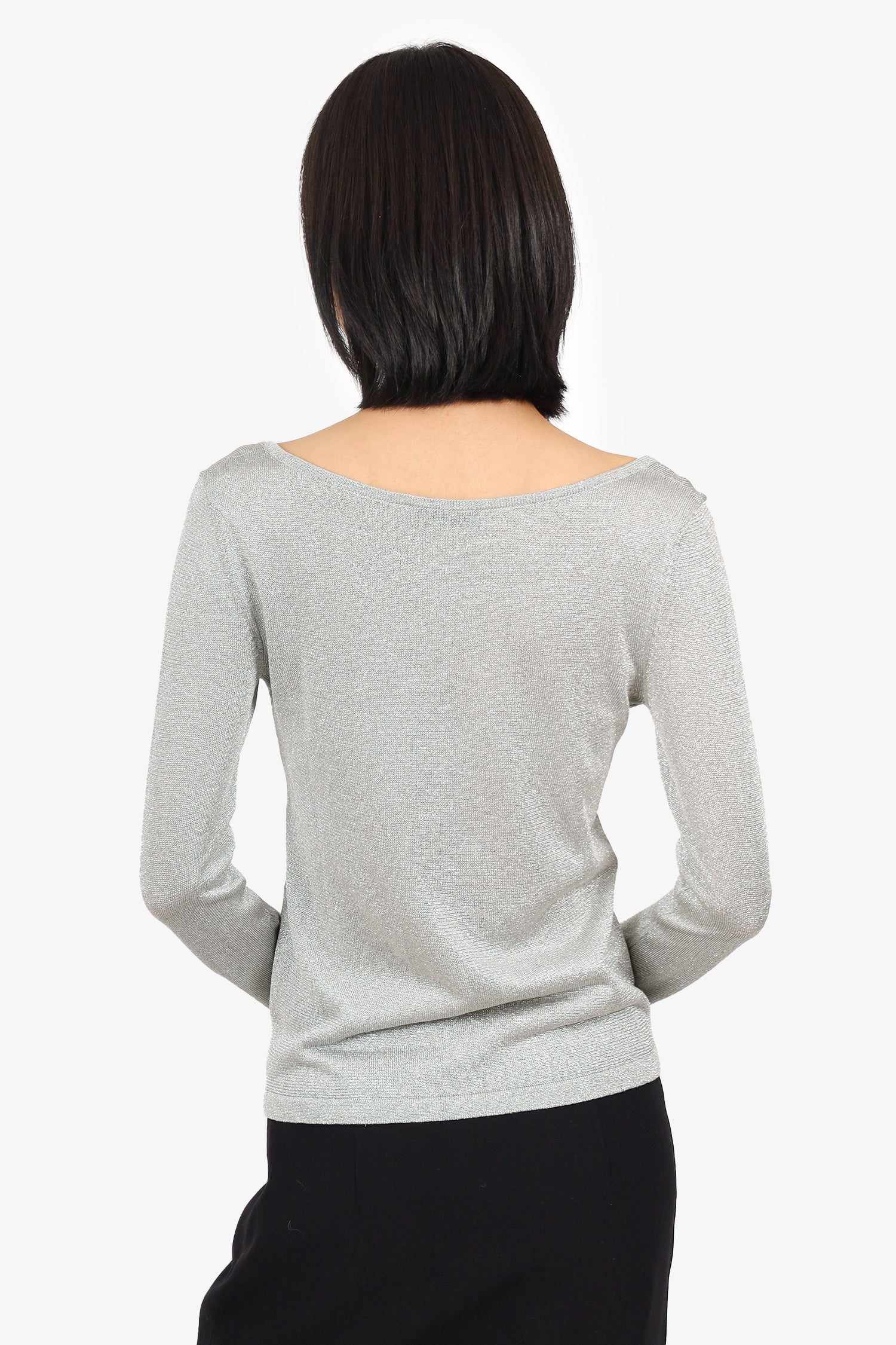 Missoni Silver Metallic Knit Round Neck Top Estimated Size Small