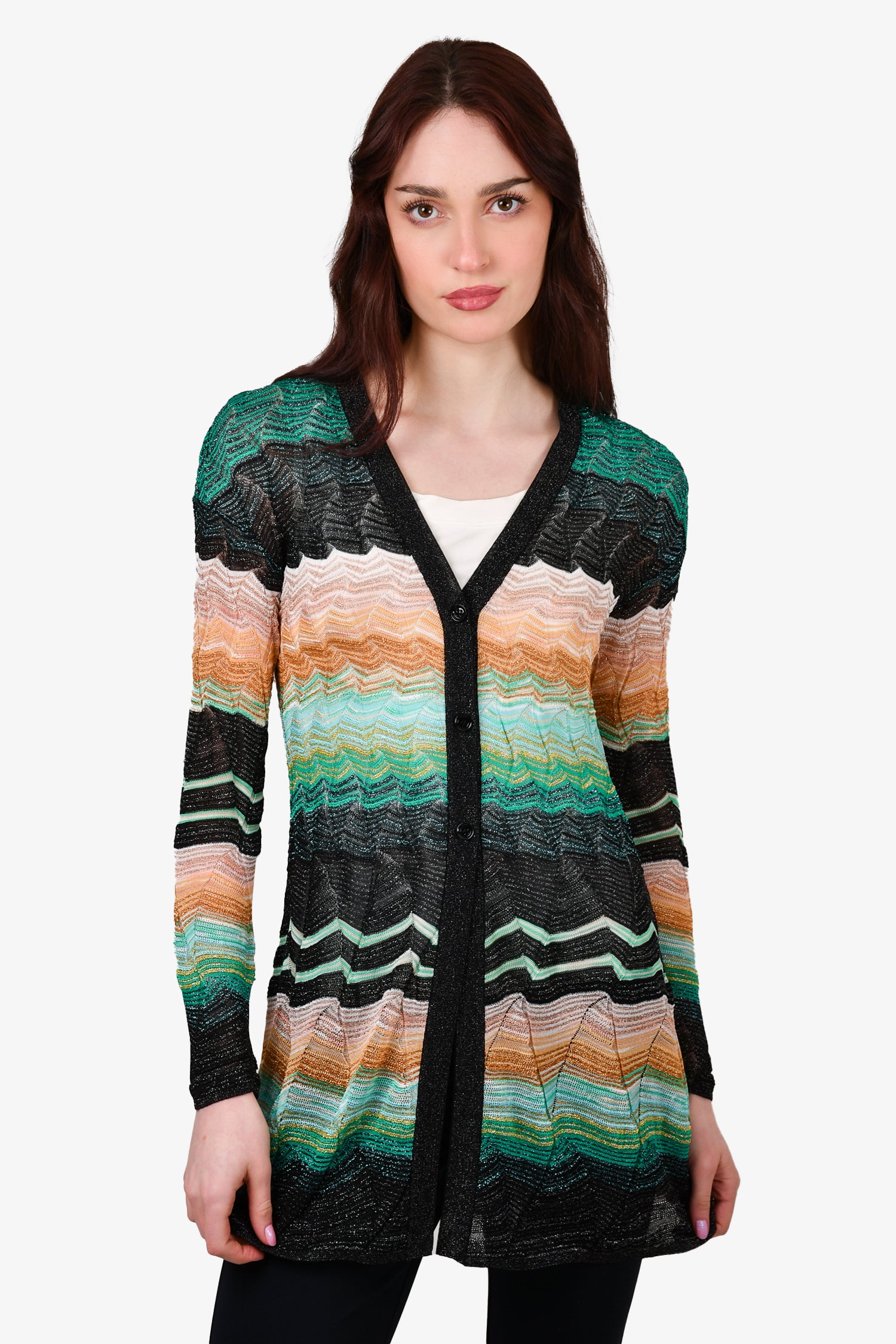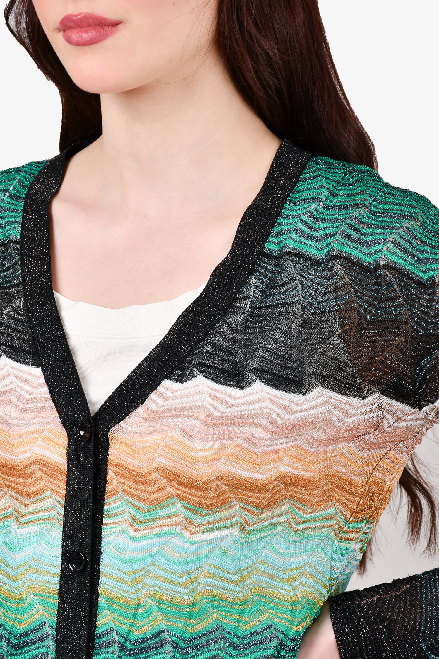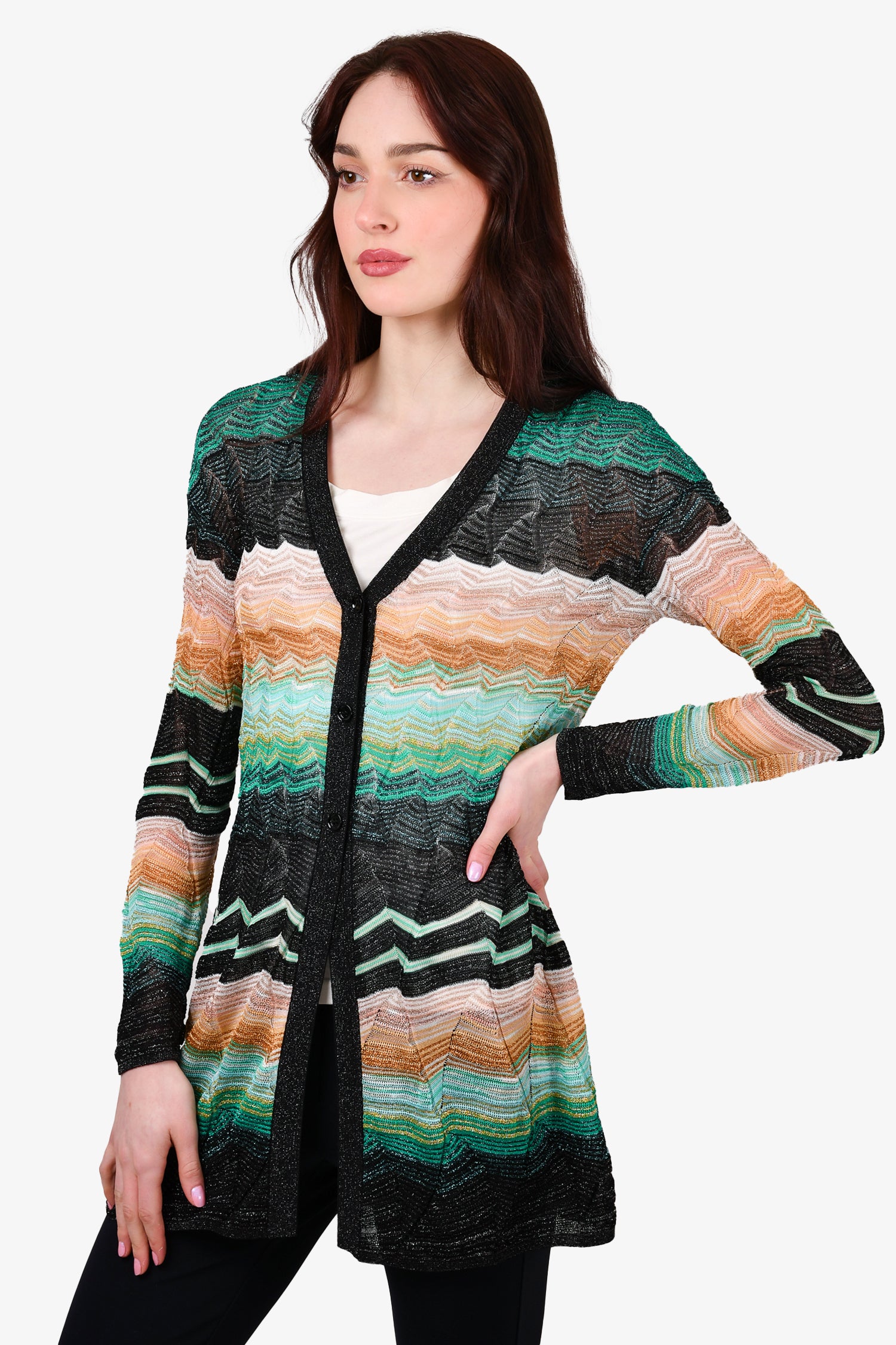 Refresh availabilityMissoni Teal/Gold Chevron Cardigan. Front button-up closure. V-neckline. Tonal stitching.
