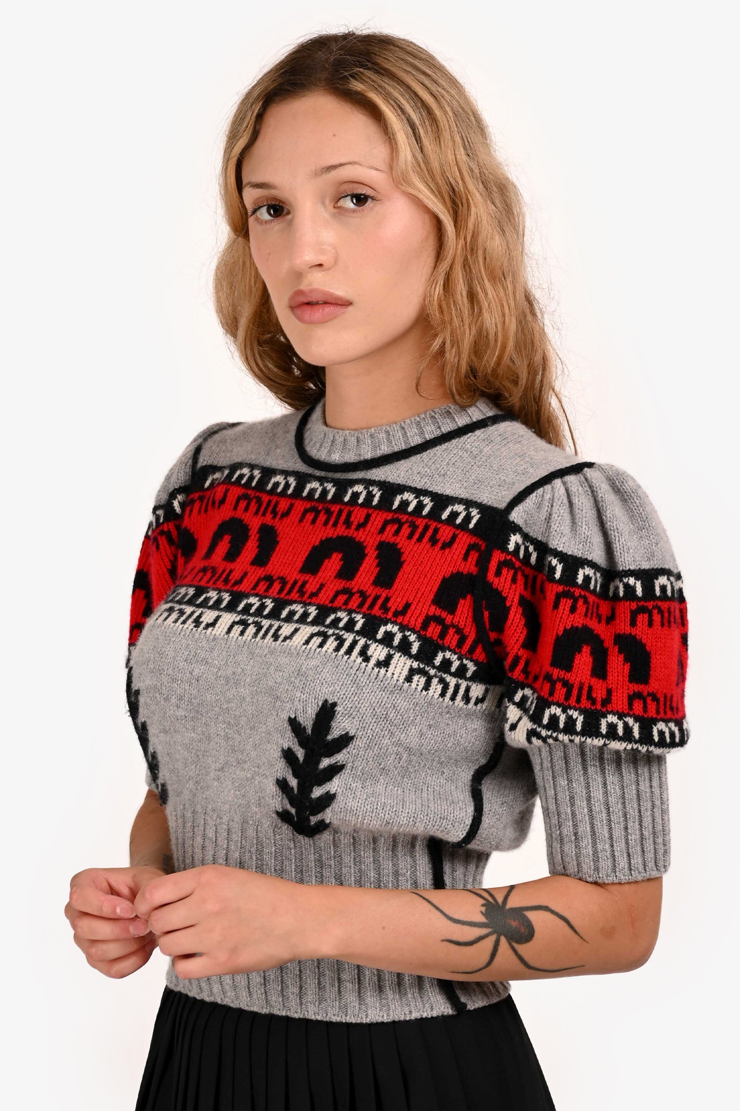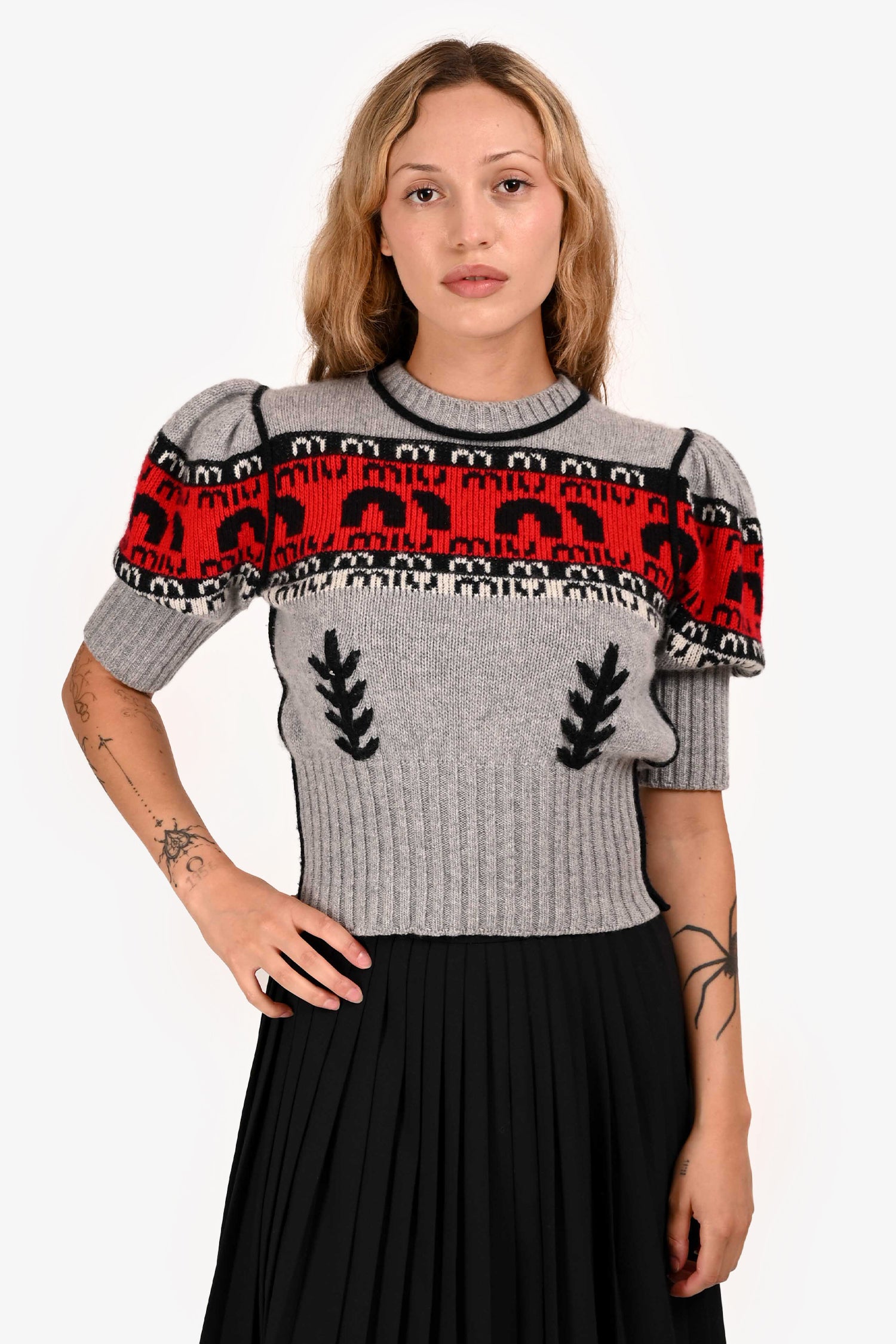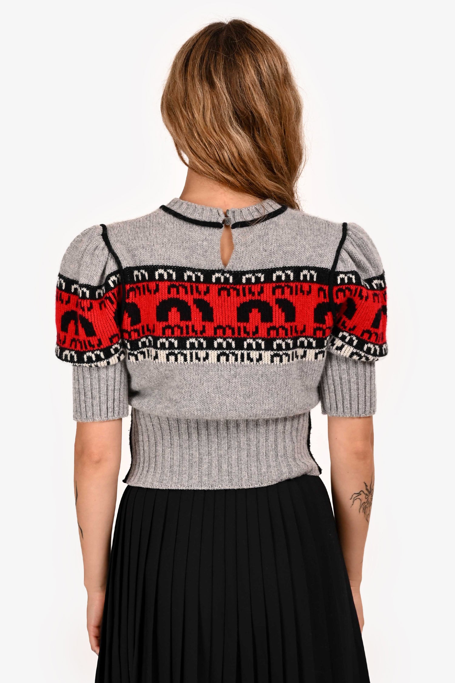 Miu Miu 2017 Grey/Red Wool 'M' Logo Sweater Size 38