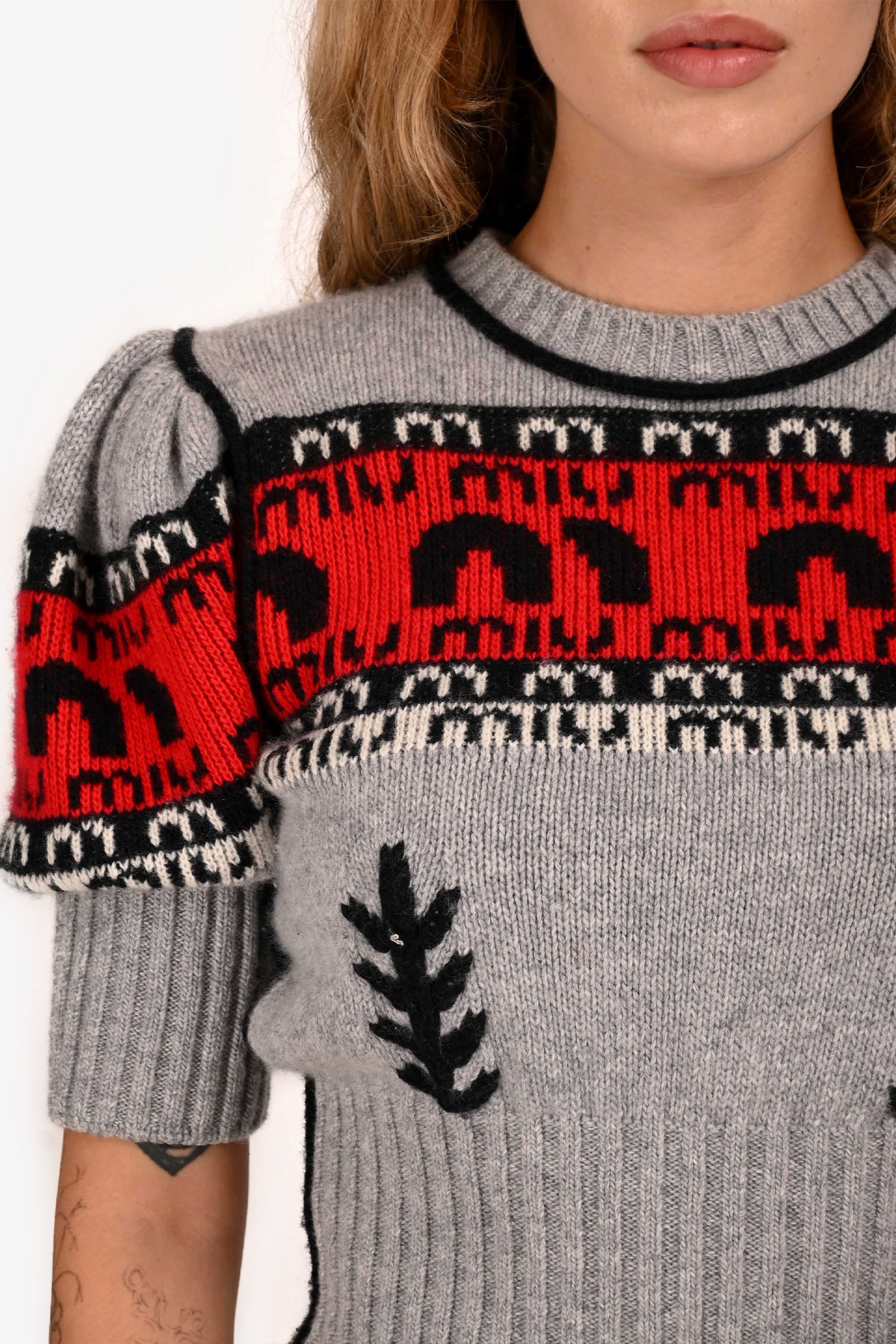 Refresh availabilityMiu Miu 2017 Grey/Red Wool 'M' Logo Sweater. Round neck. Rear button-up closures.