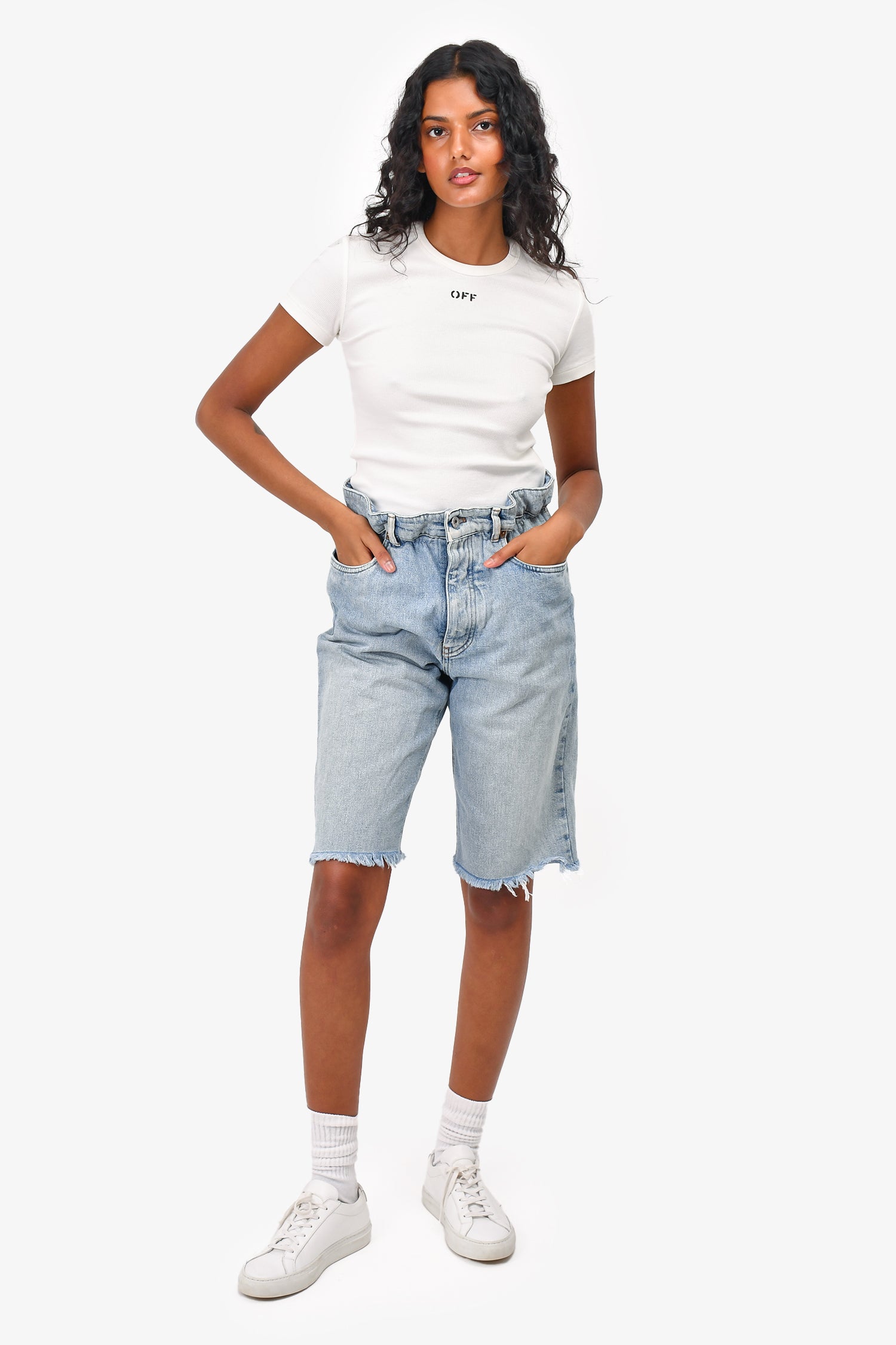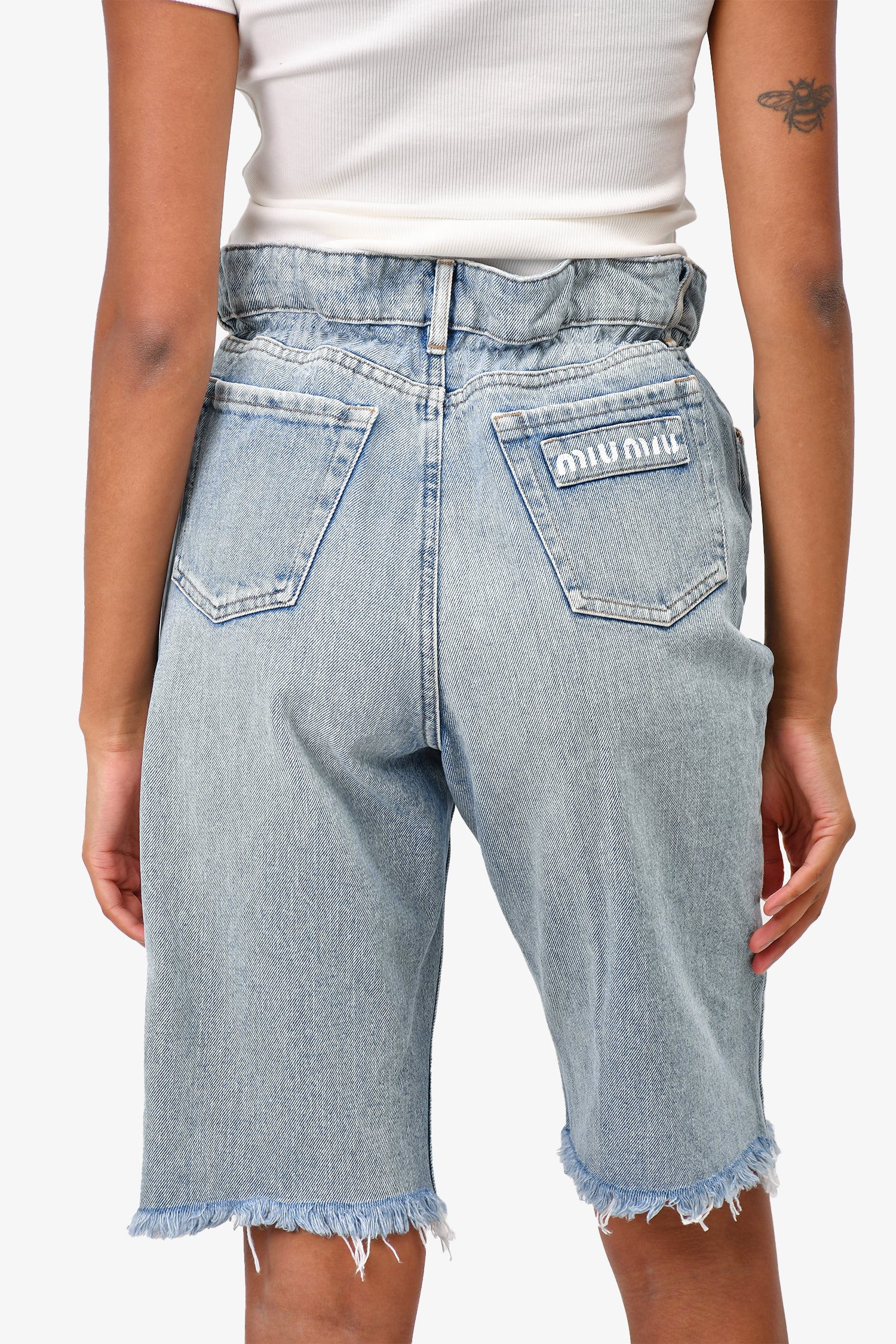 Refresh availabilityMiu Miu 2020 Blue Denim Bermuda Shorts. Front button-up closure. Front and rear pockets. Waist belt loops.