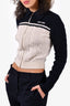 Miu Miu 2022 Navy/White Wool/Cashmere Cable Knit Zip Sweater Size 40