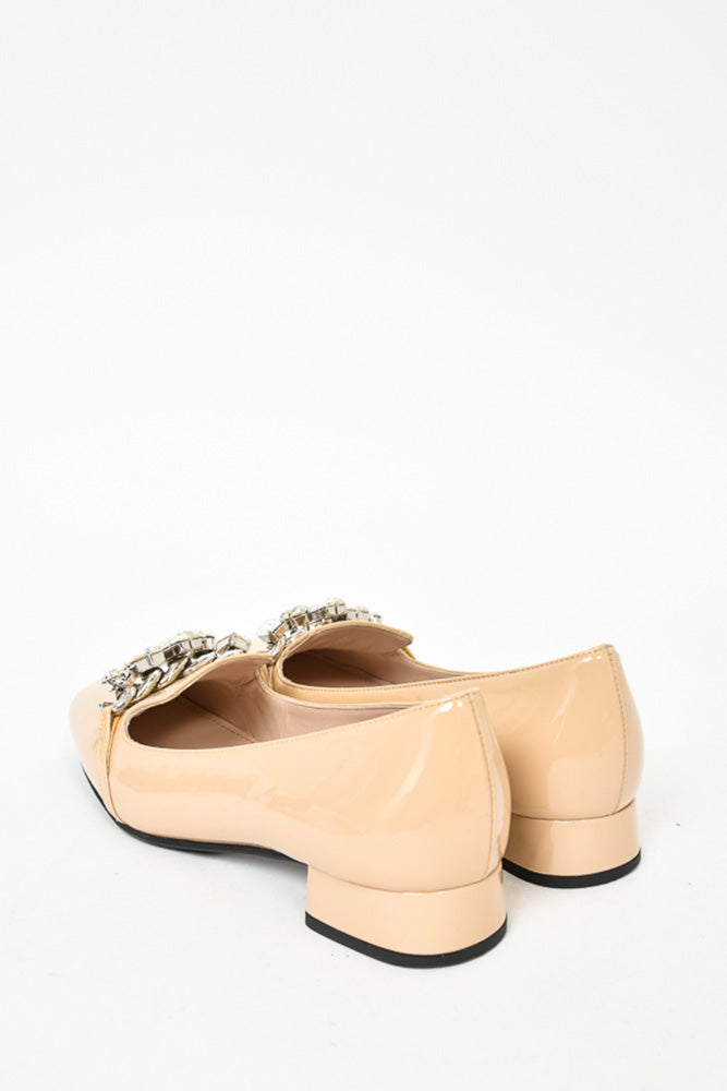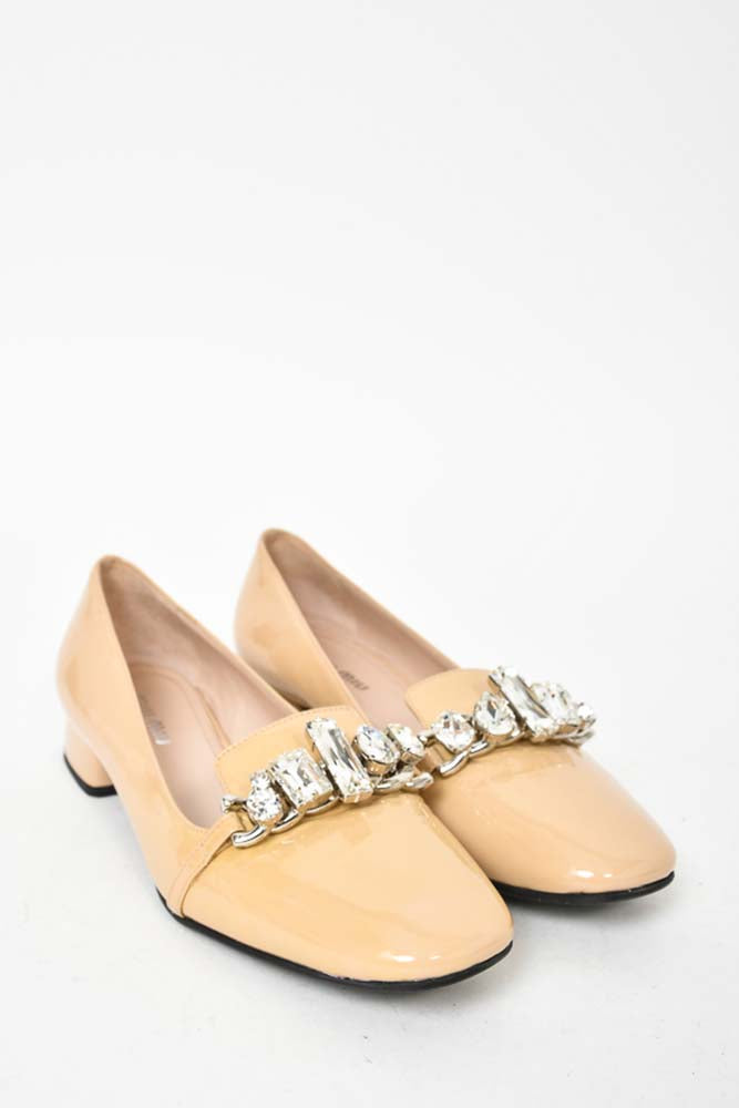 Miu Miu Biege Patent Leather Rhinestone Loafers Size 35