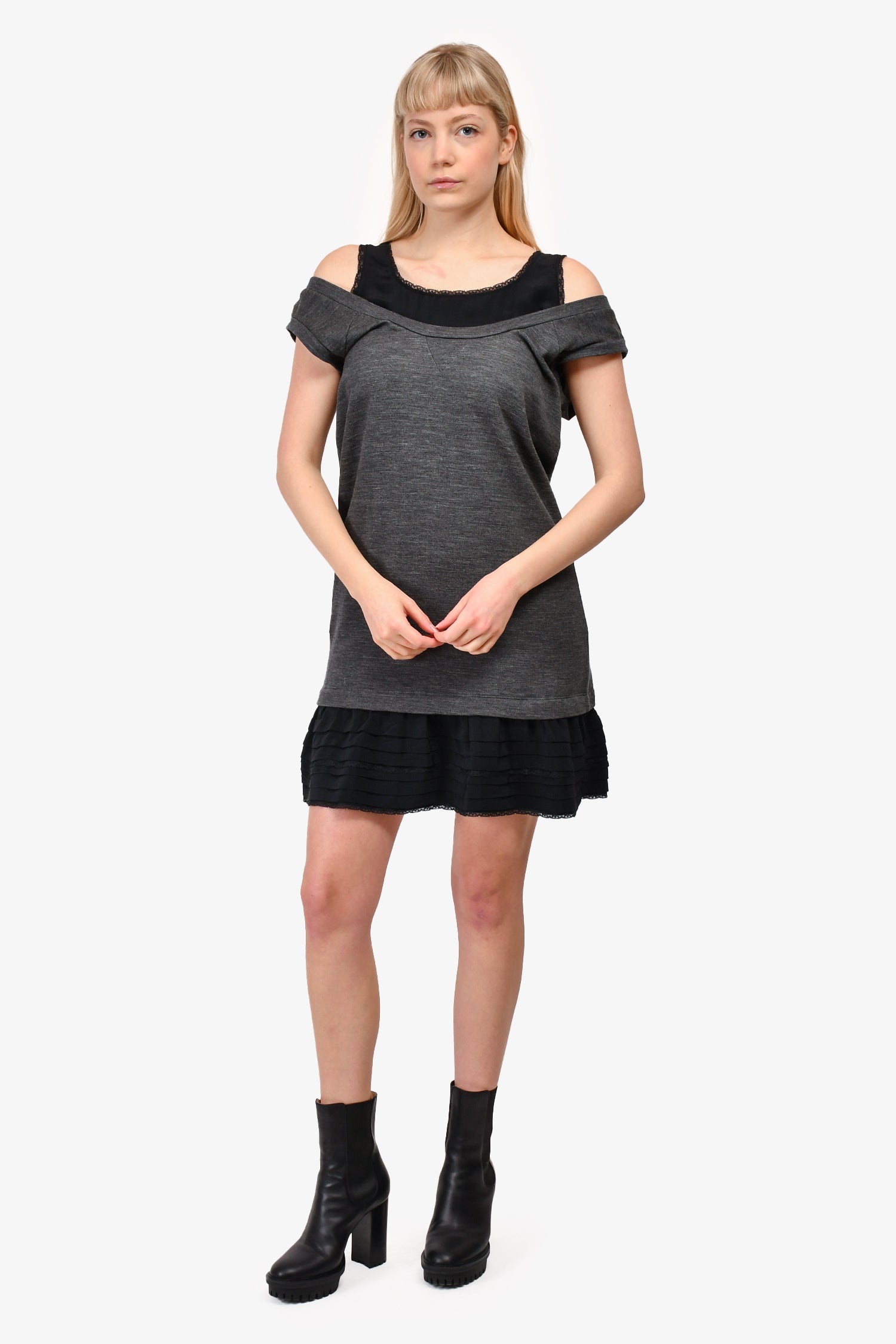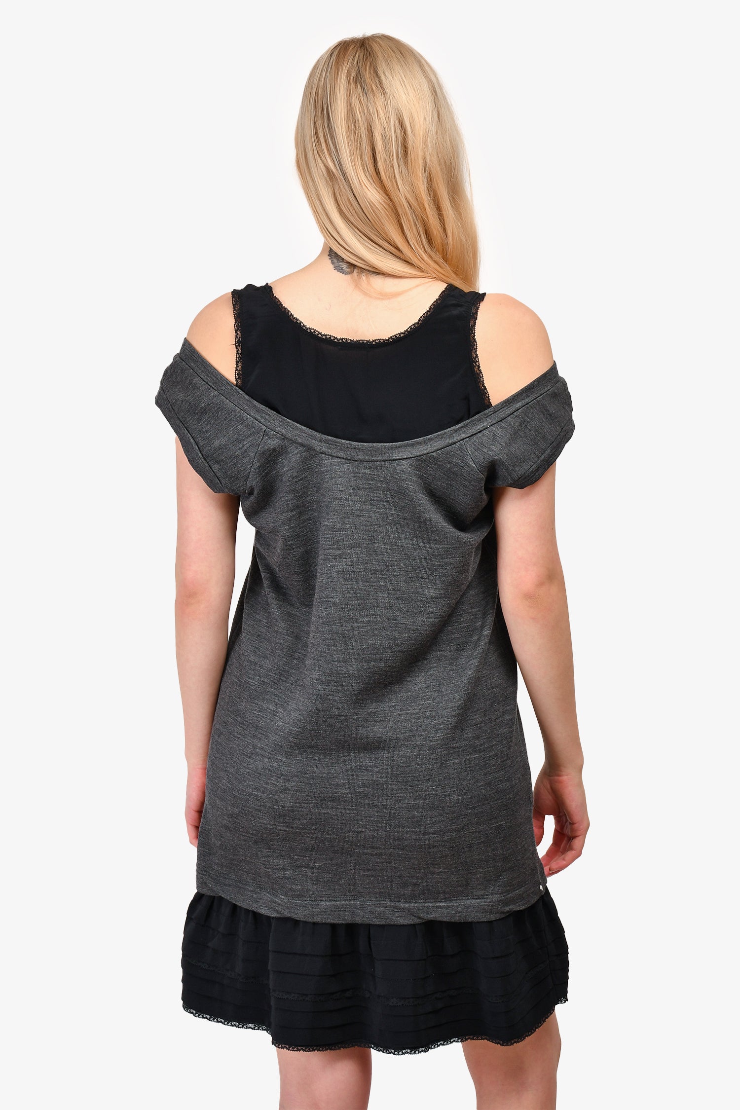 Miu Miu Black/Grey Sleeveless Lace Trim Dress Size S
