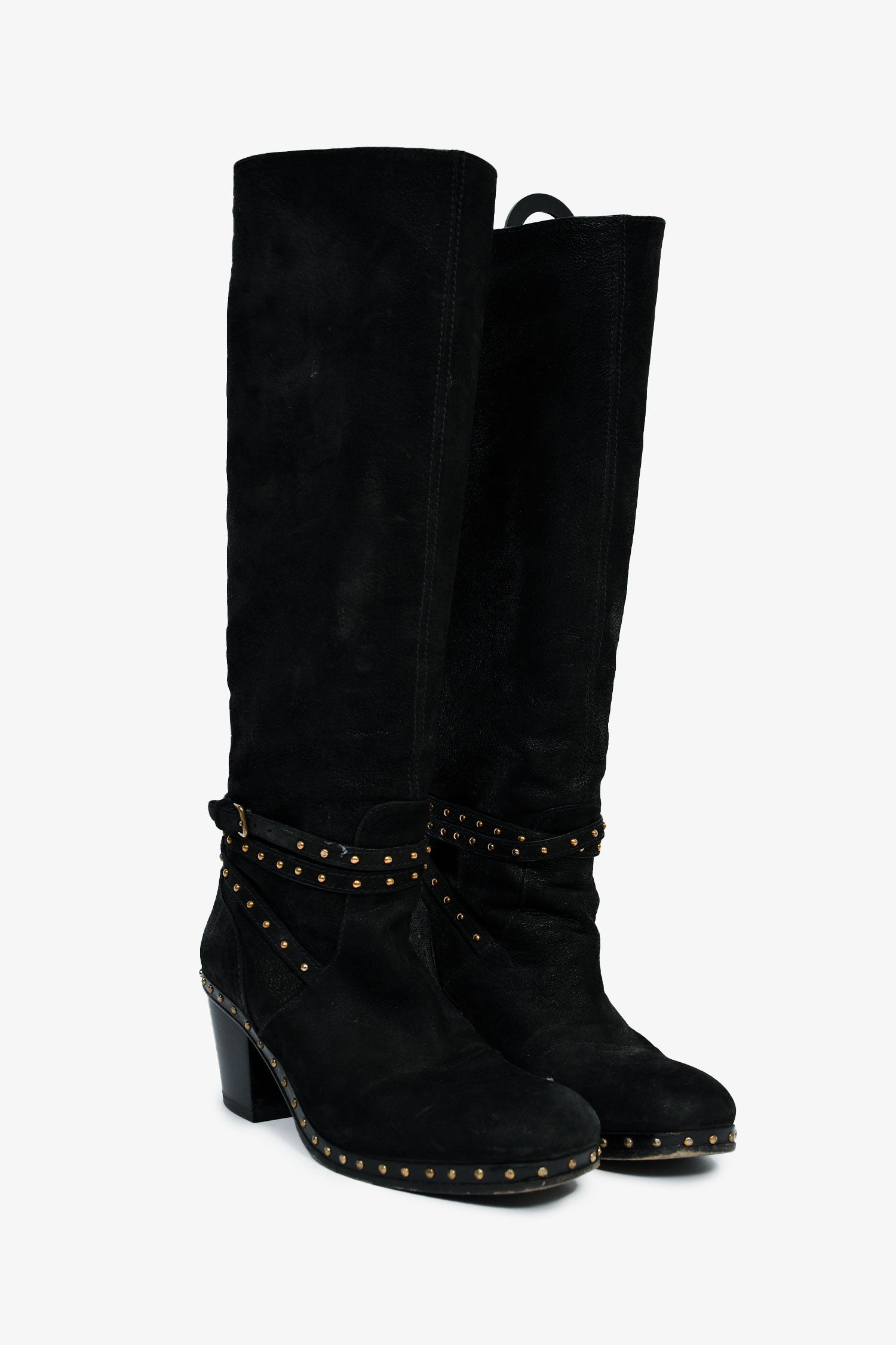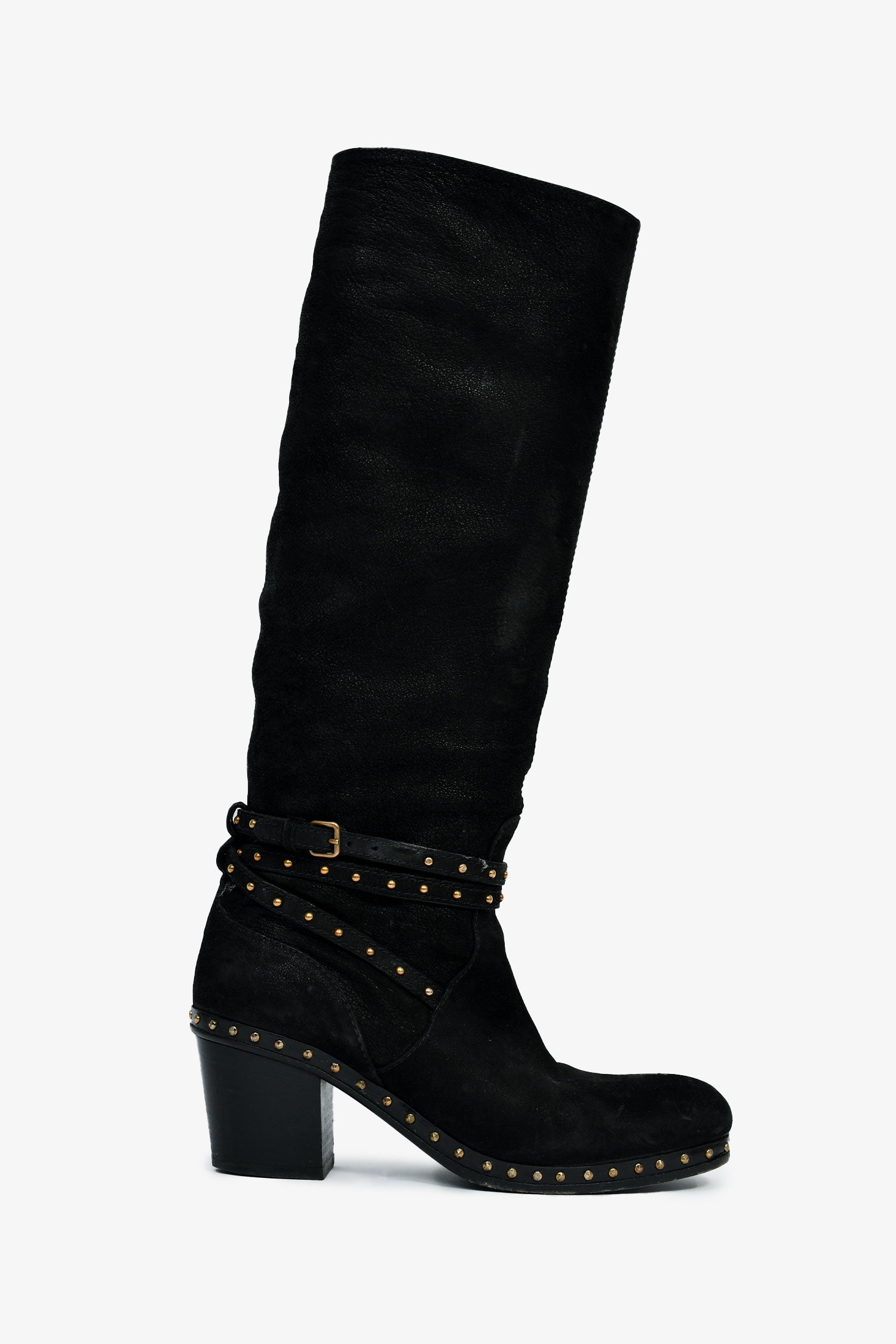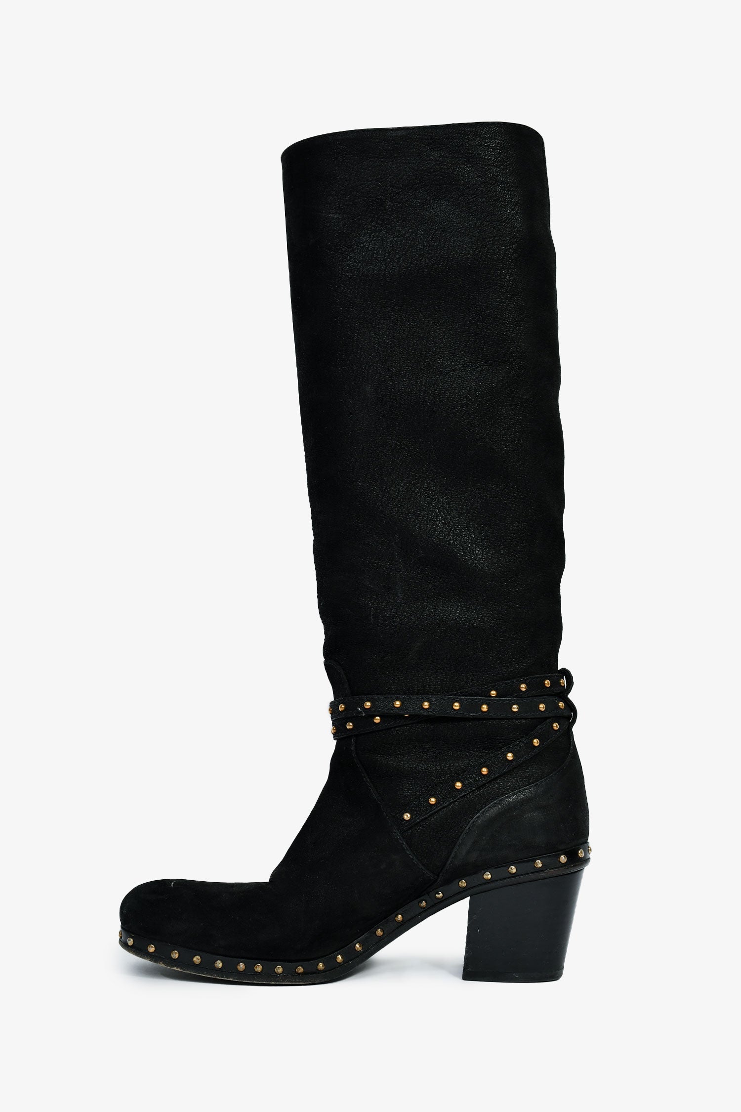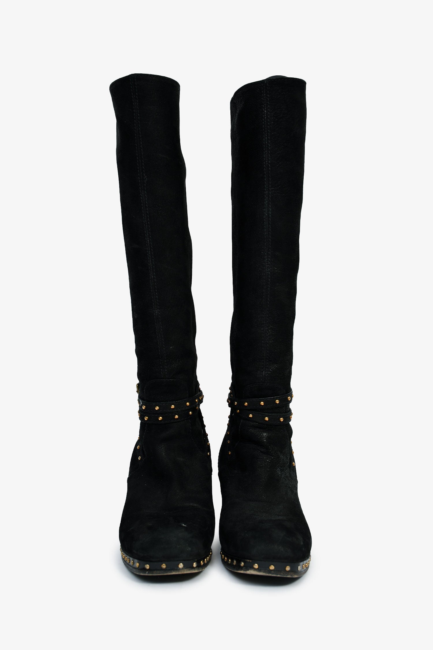 Miu Miu Black Suede Studded Knee High Boots Size 38