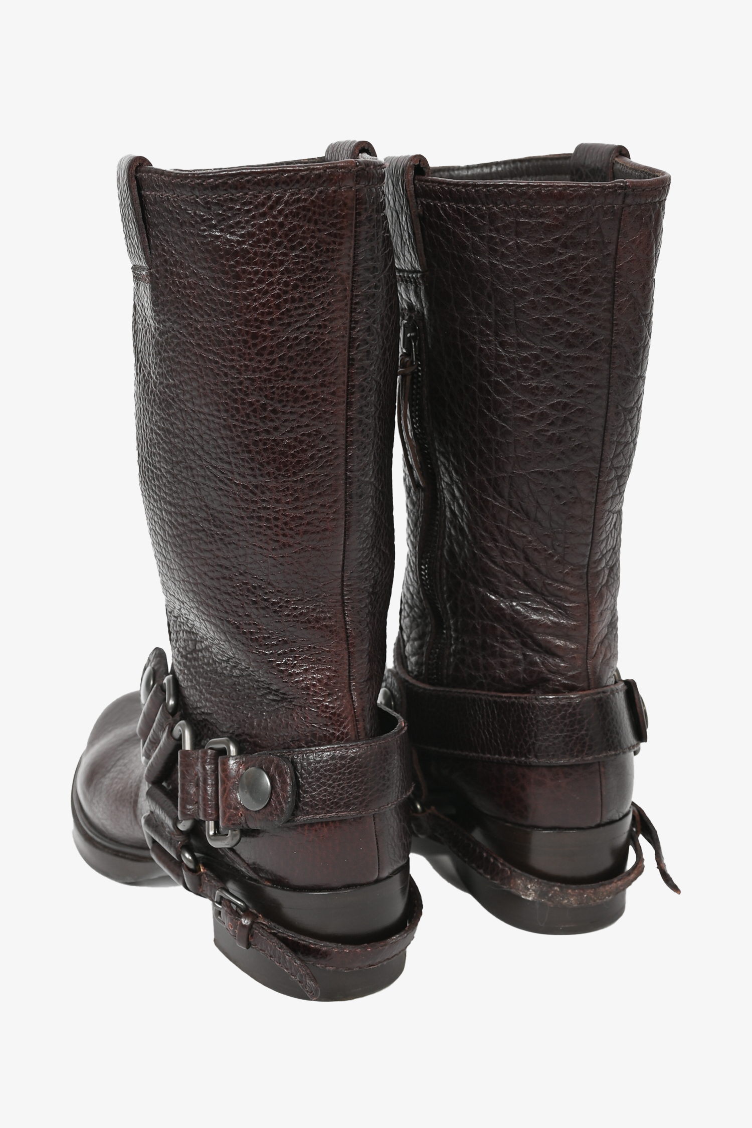 Miu Miu Brown Leather Motorcycle Boots Size 38