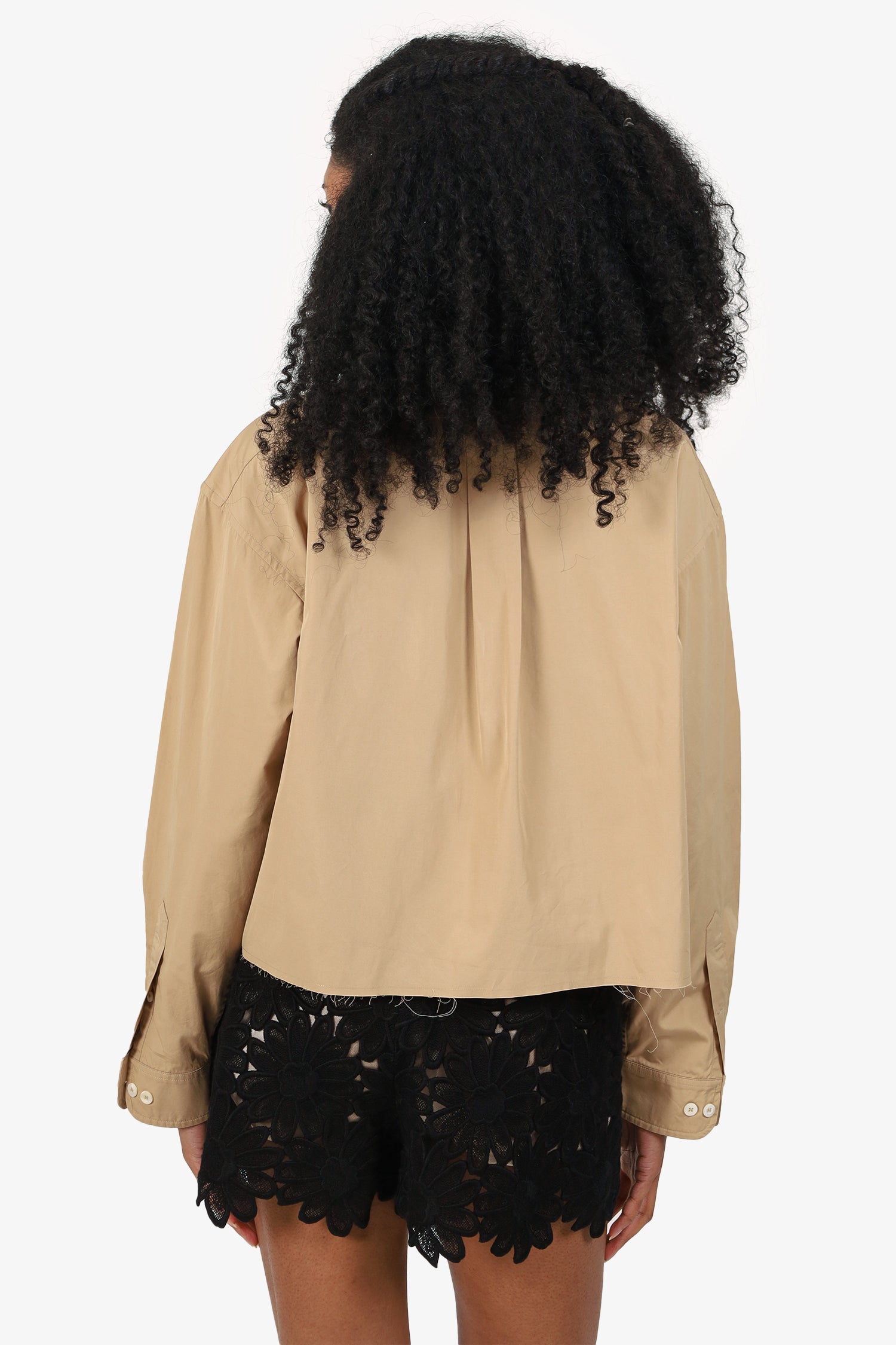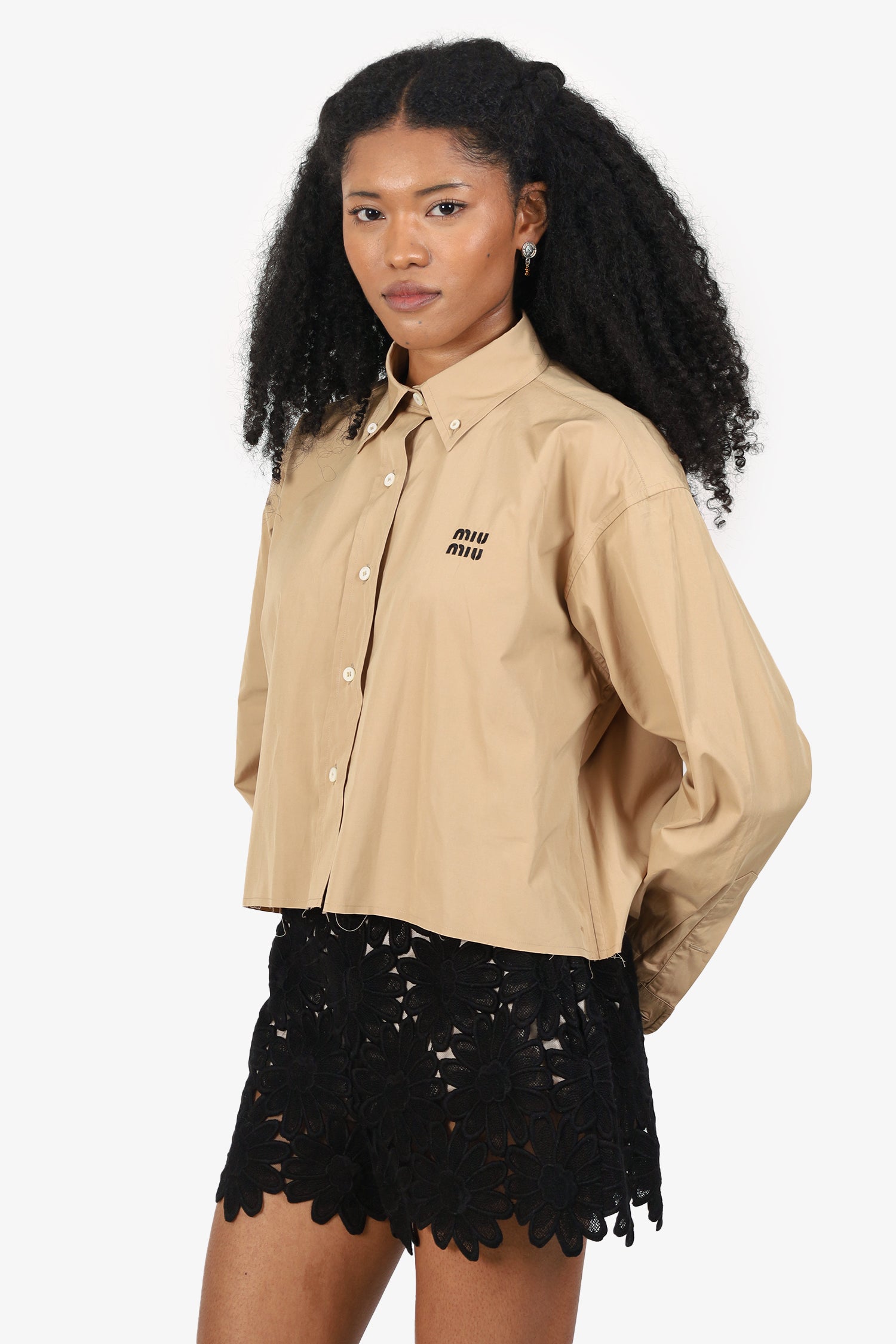 Miu Miu Khaki Embroidered Logo Crop Poplin Shirt Size 36