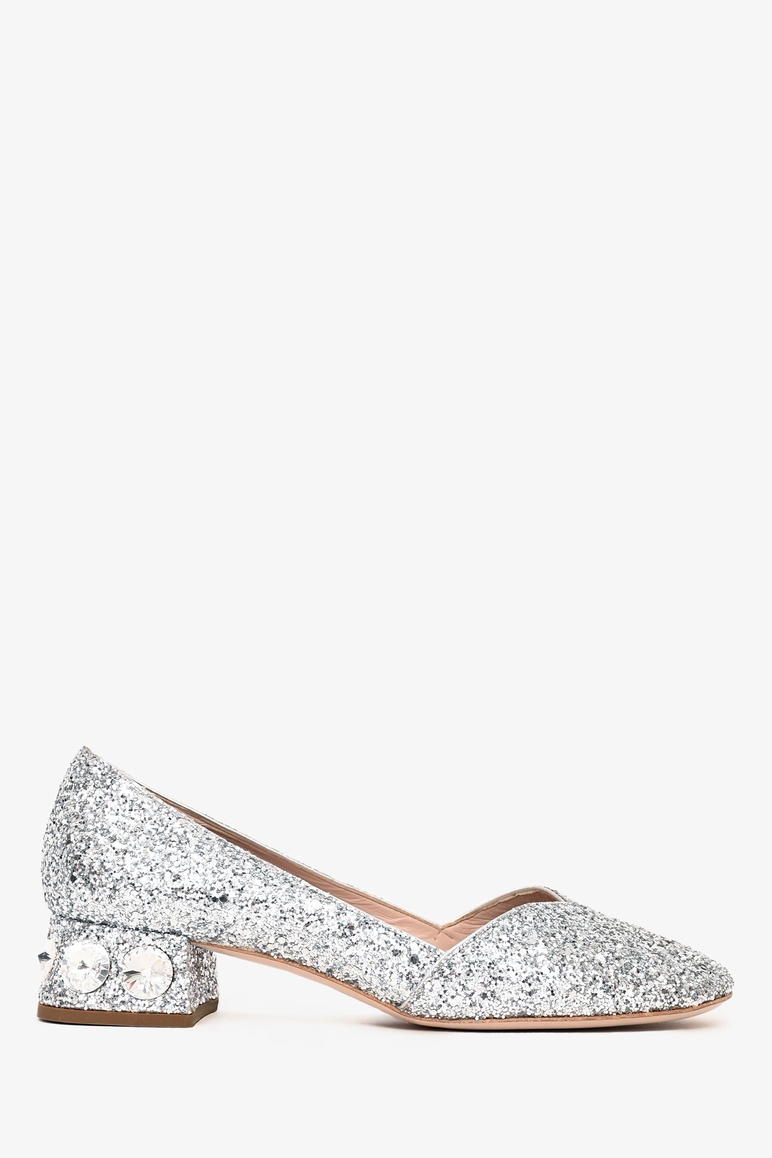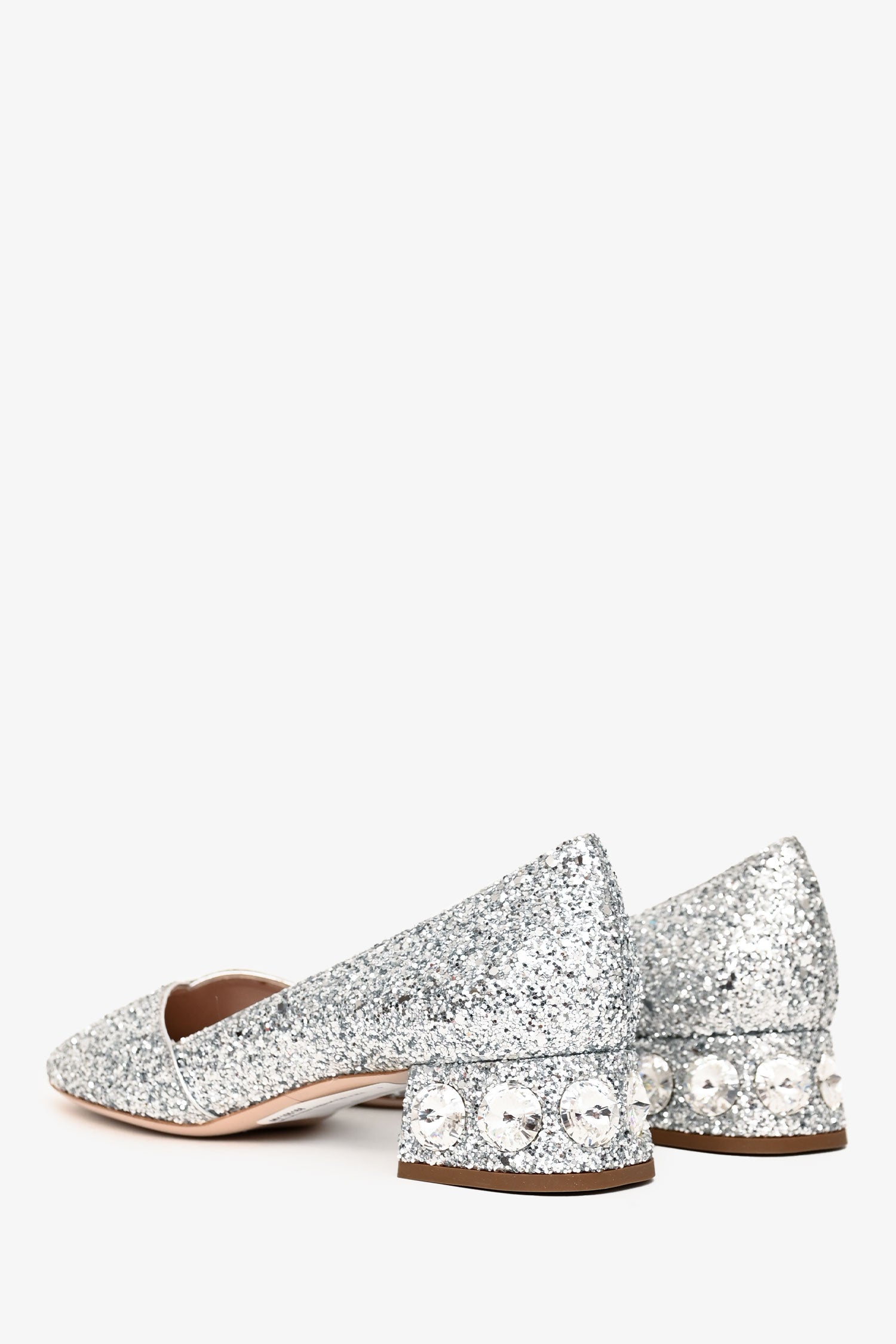Refresh availabilityMiu Miu Silver Glittered Flats. Slip-on style. Leather lining and sole. Tonal stitching.