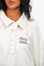 Miu Miu White Logo Crystal Embellished Oversize Polo Sweatshirt Est. Size S