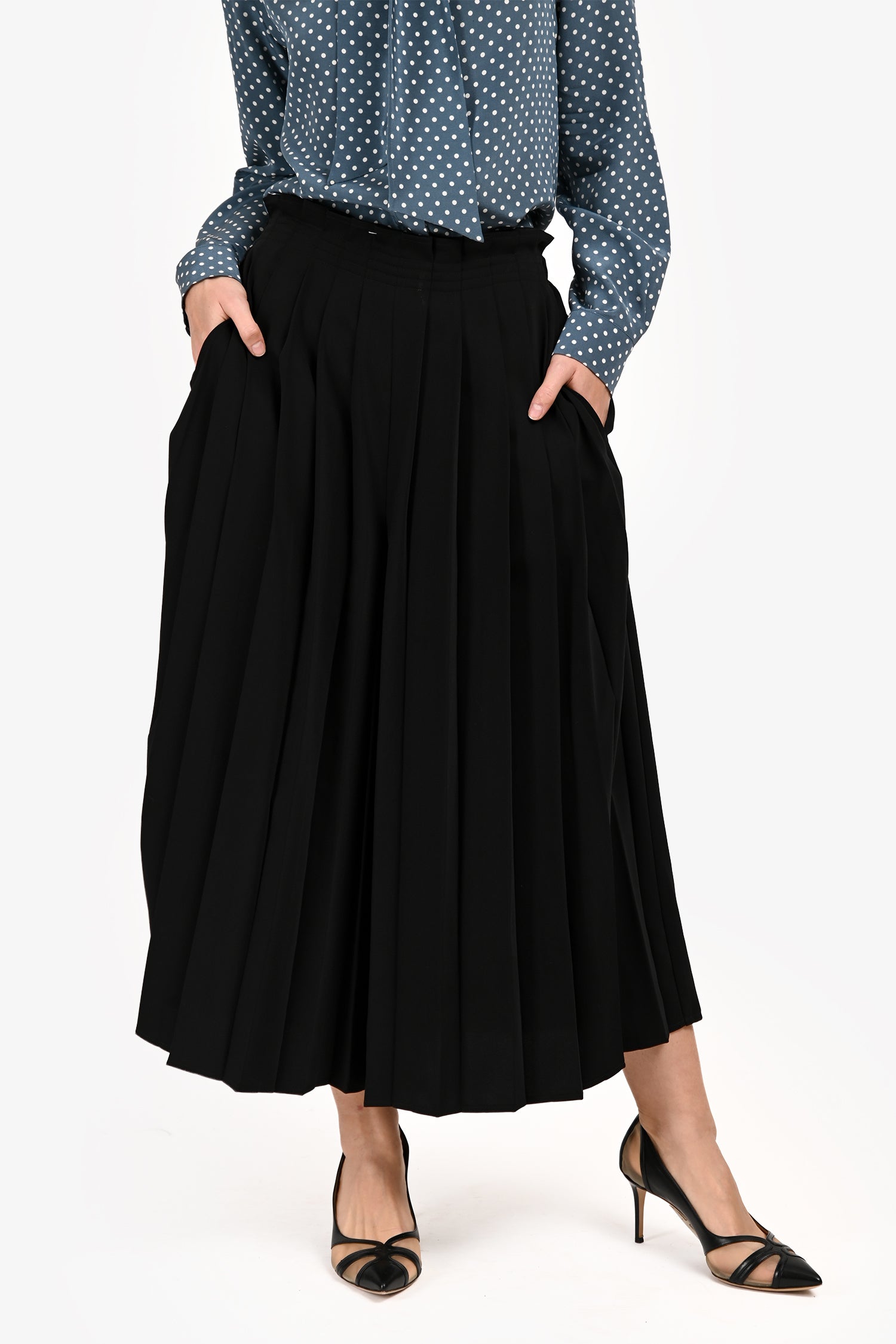 MM6 Black Pleated Wide Leg Trousers Size 40