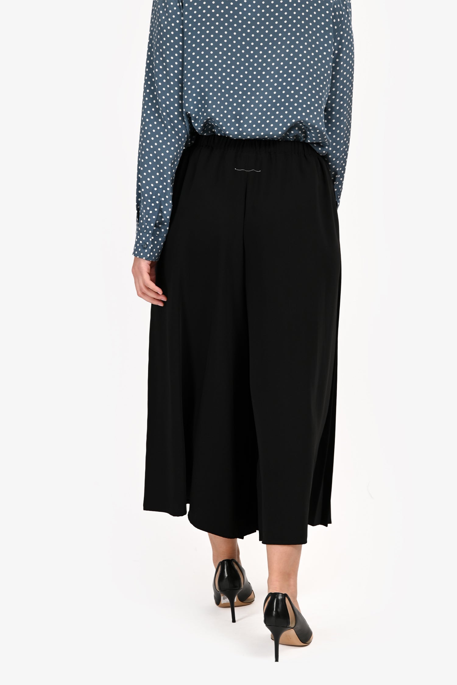 Refresh availabilityMM6 Maison Margiela Black Pleated Wide Leg Trousers. Pull-on. Elasticized rear waistband. 2 side slip pockets. Tonal and contrast stitching.