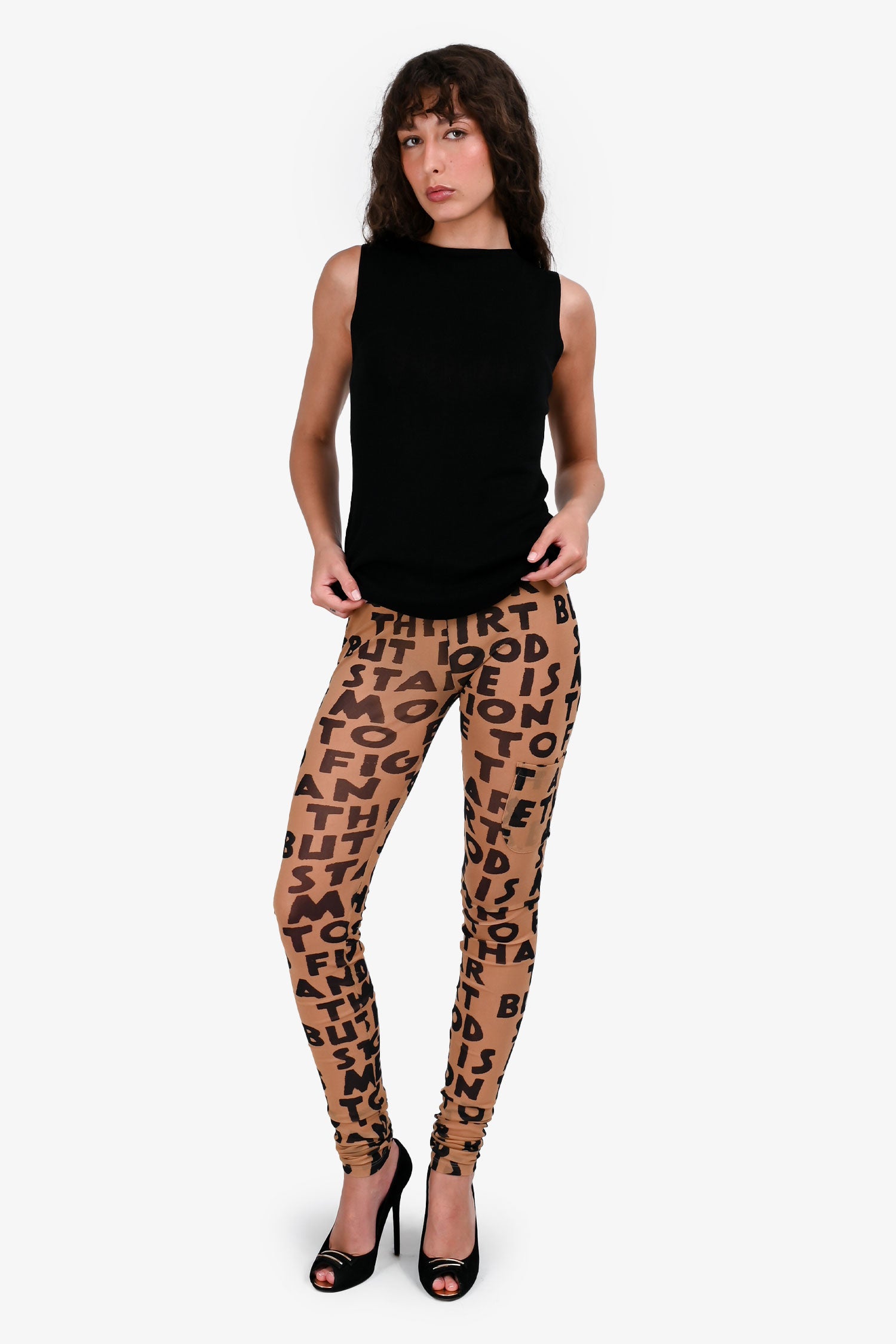 Refresh availabilityMM6 Maison Margiela Brown/Black Graffiti Leggings. Elasticated waistband. Single side pocket. Tonal stitching.