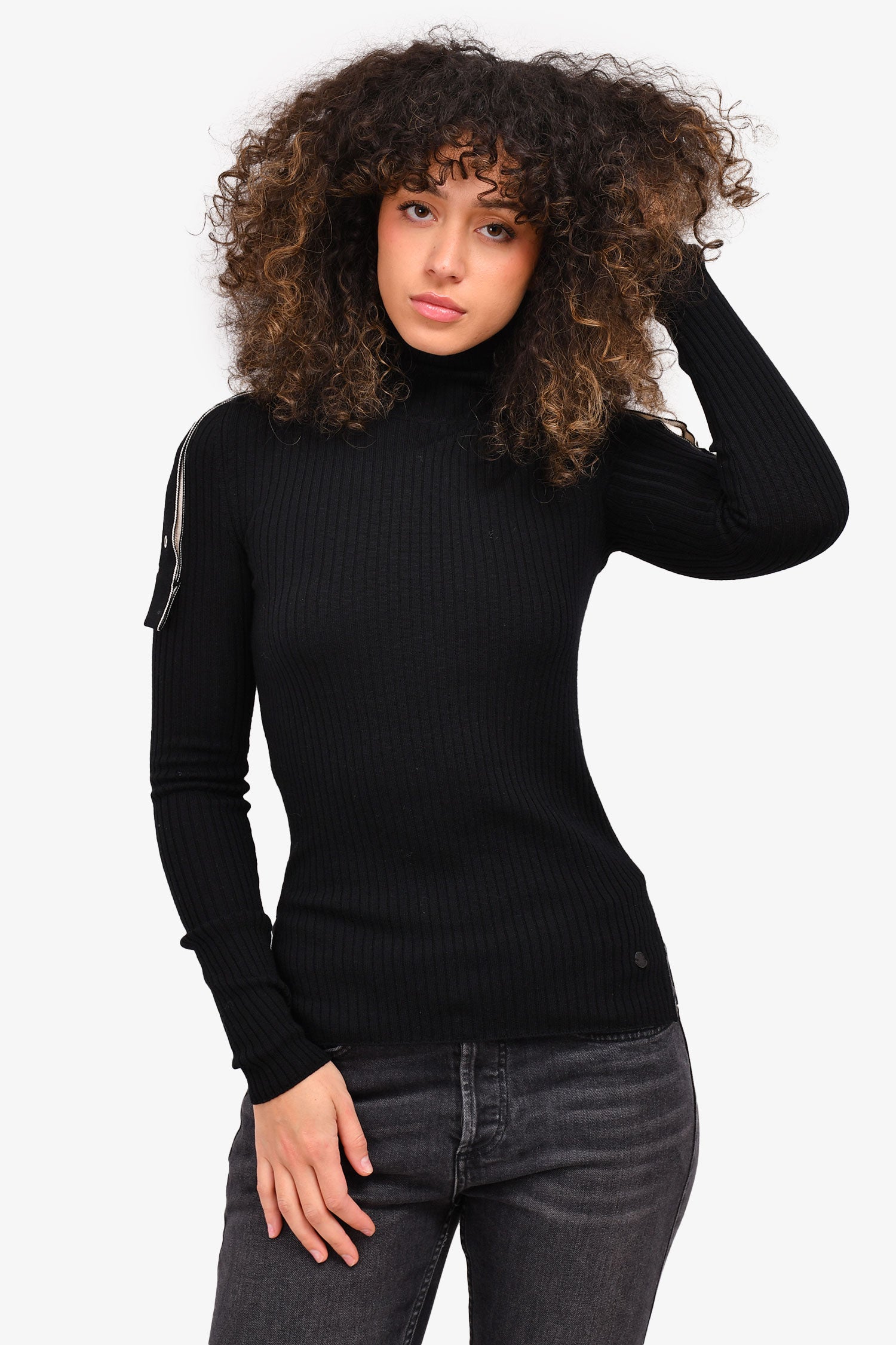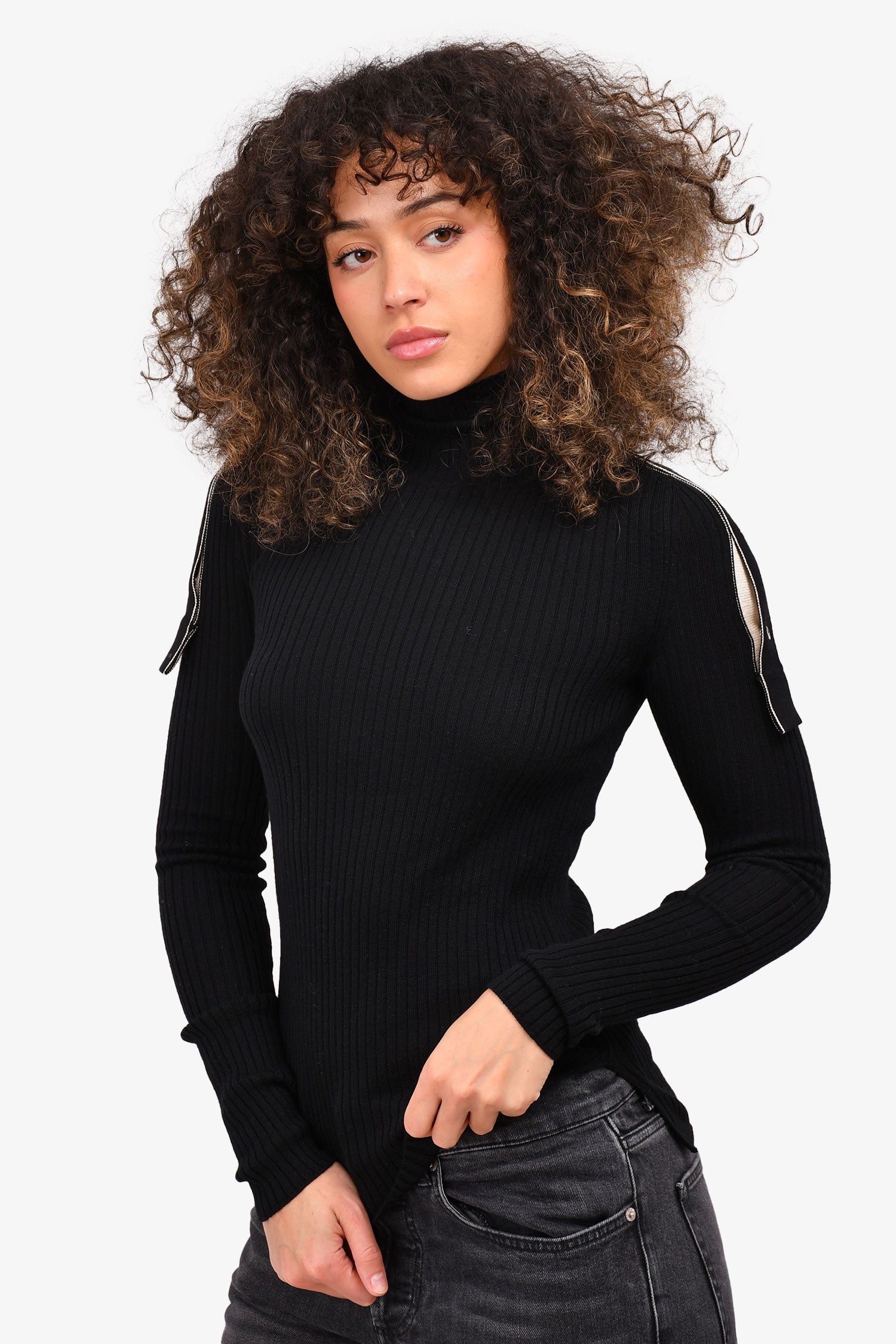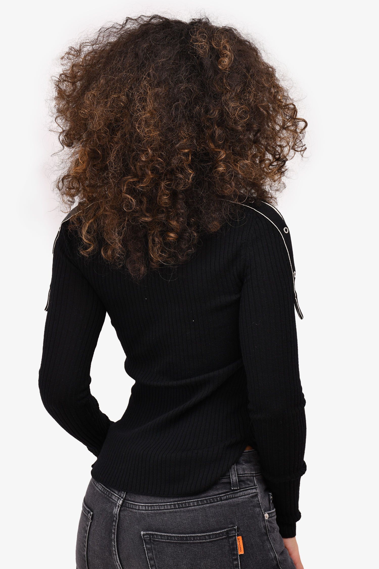 Refresh availabilityMoncler Black Button Detailed Turtle Neck Sweater. Silver-tone grommets. White contrast stitching.