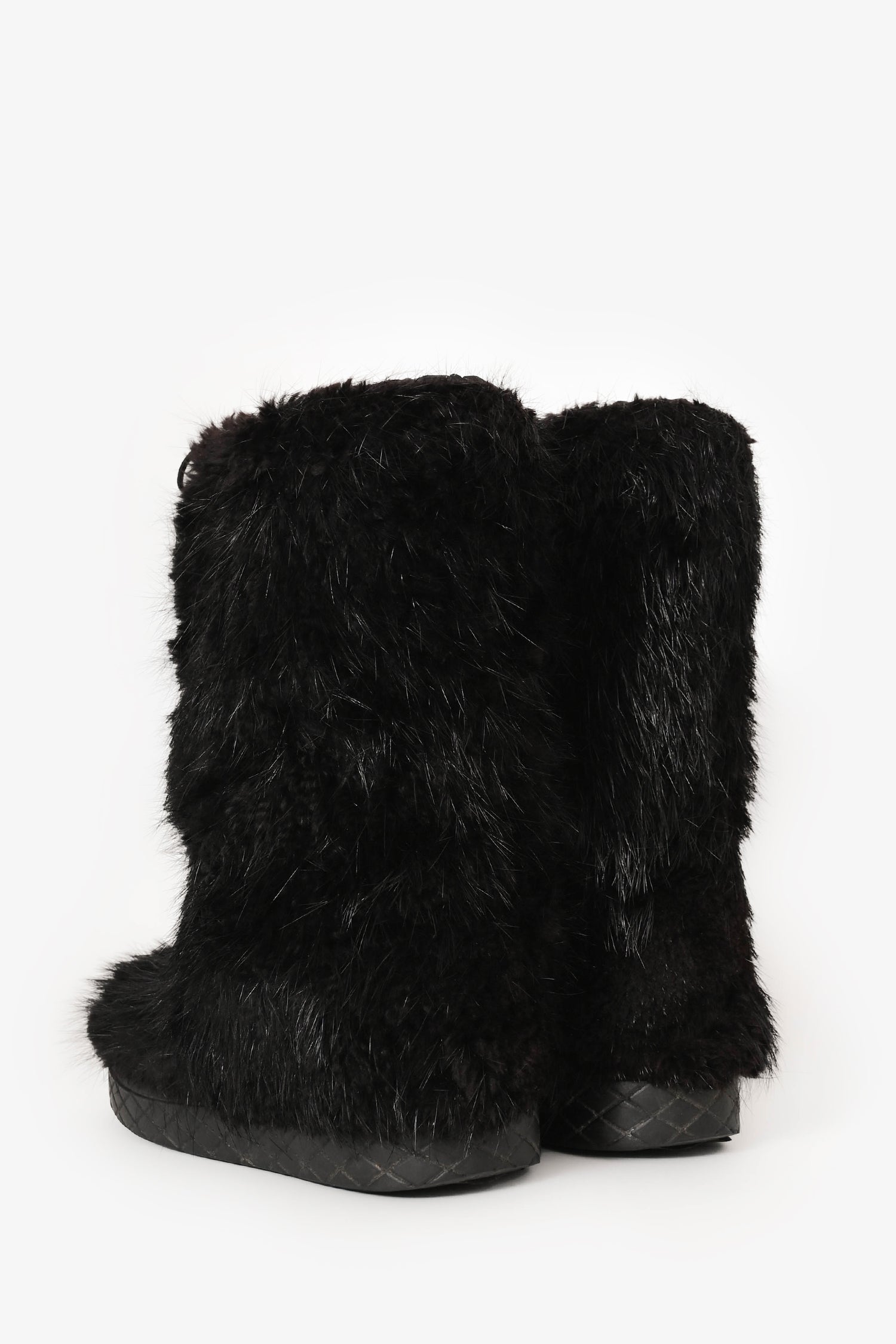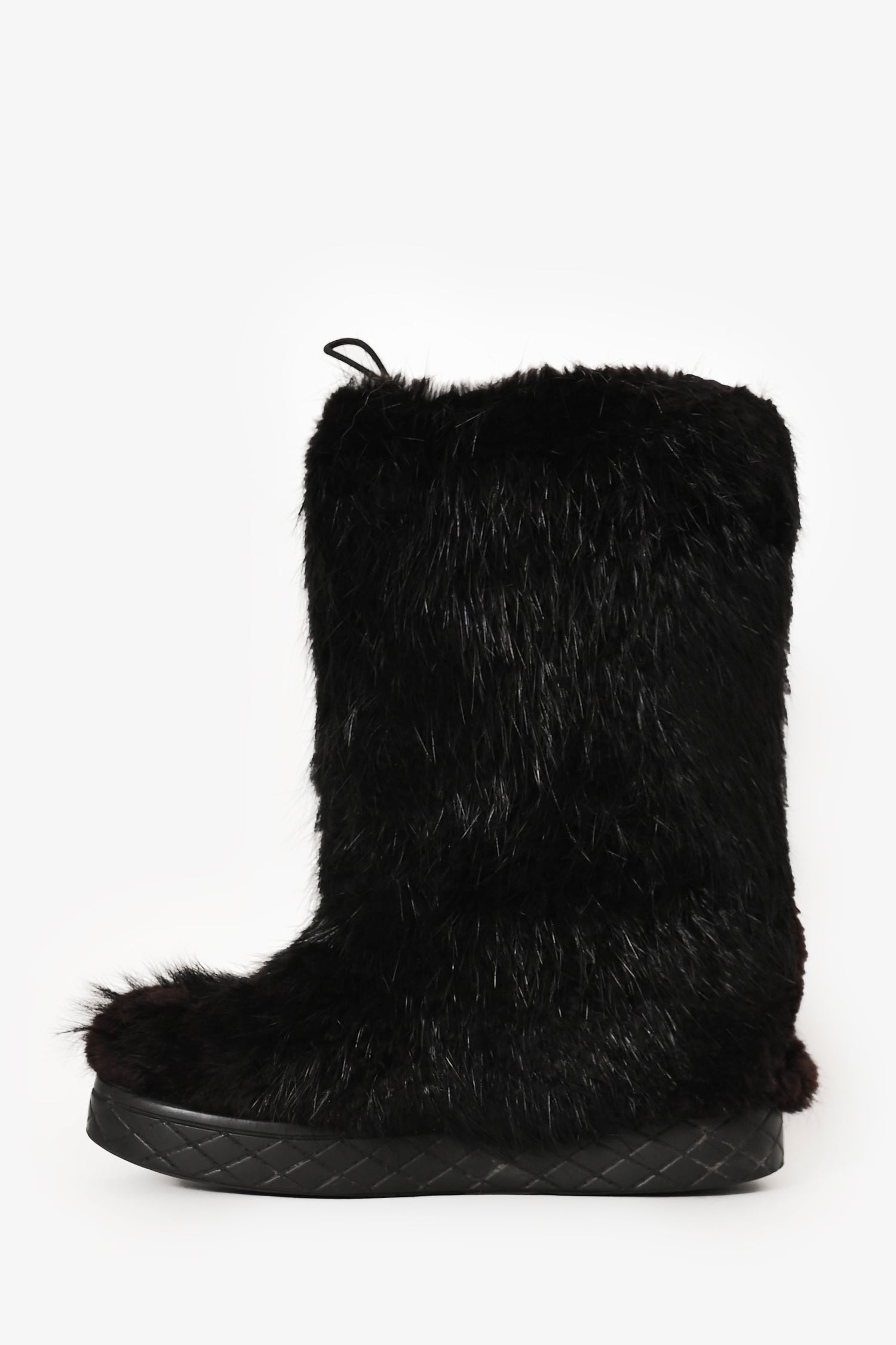 Refresh availabilityMoncler Black Fur Wedge Snow Boots. Pull-on. Round toe. Drawstring closure at the top.
