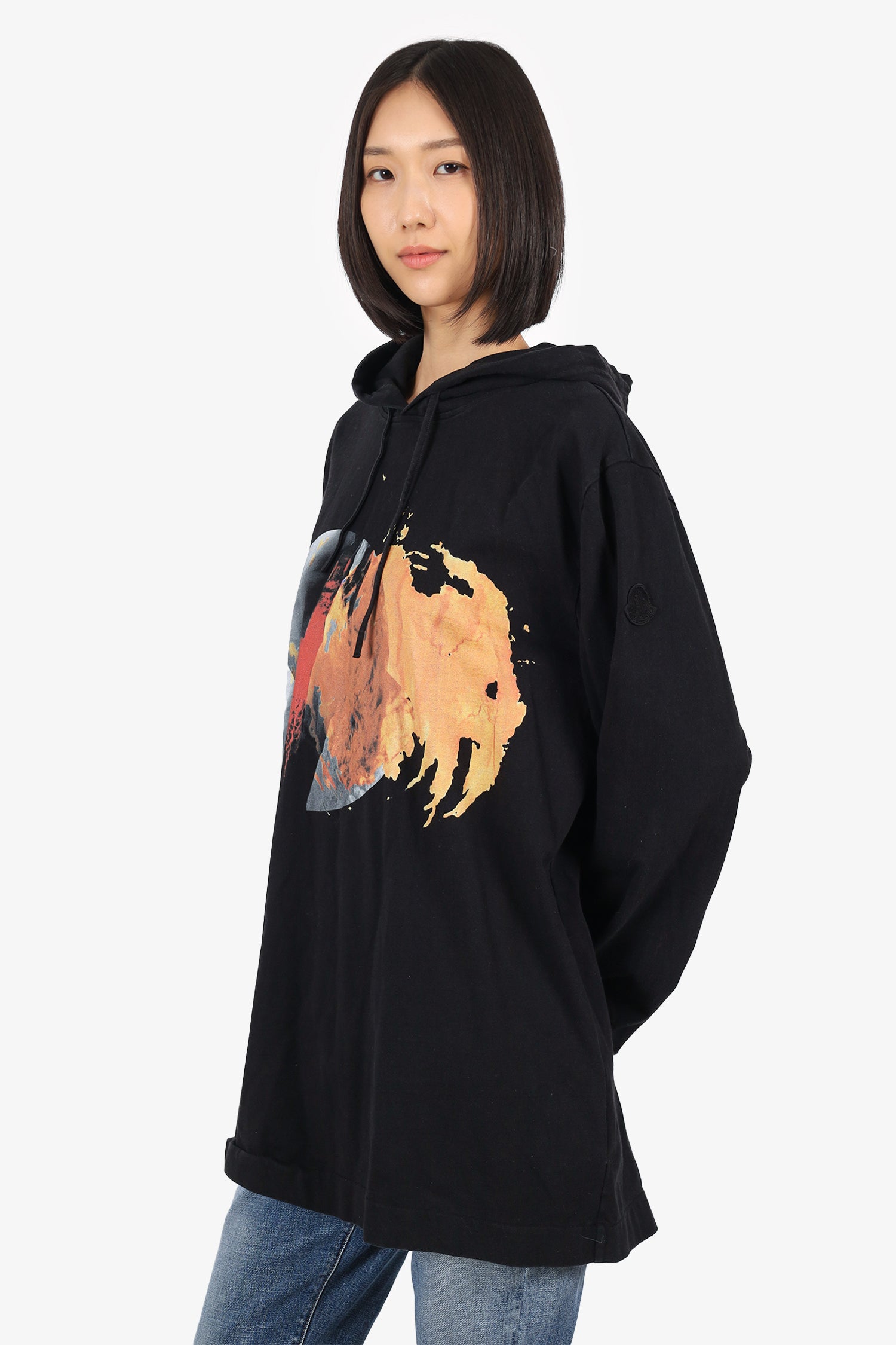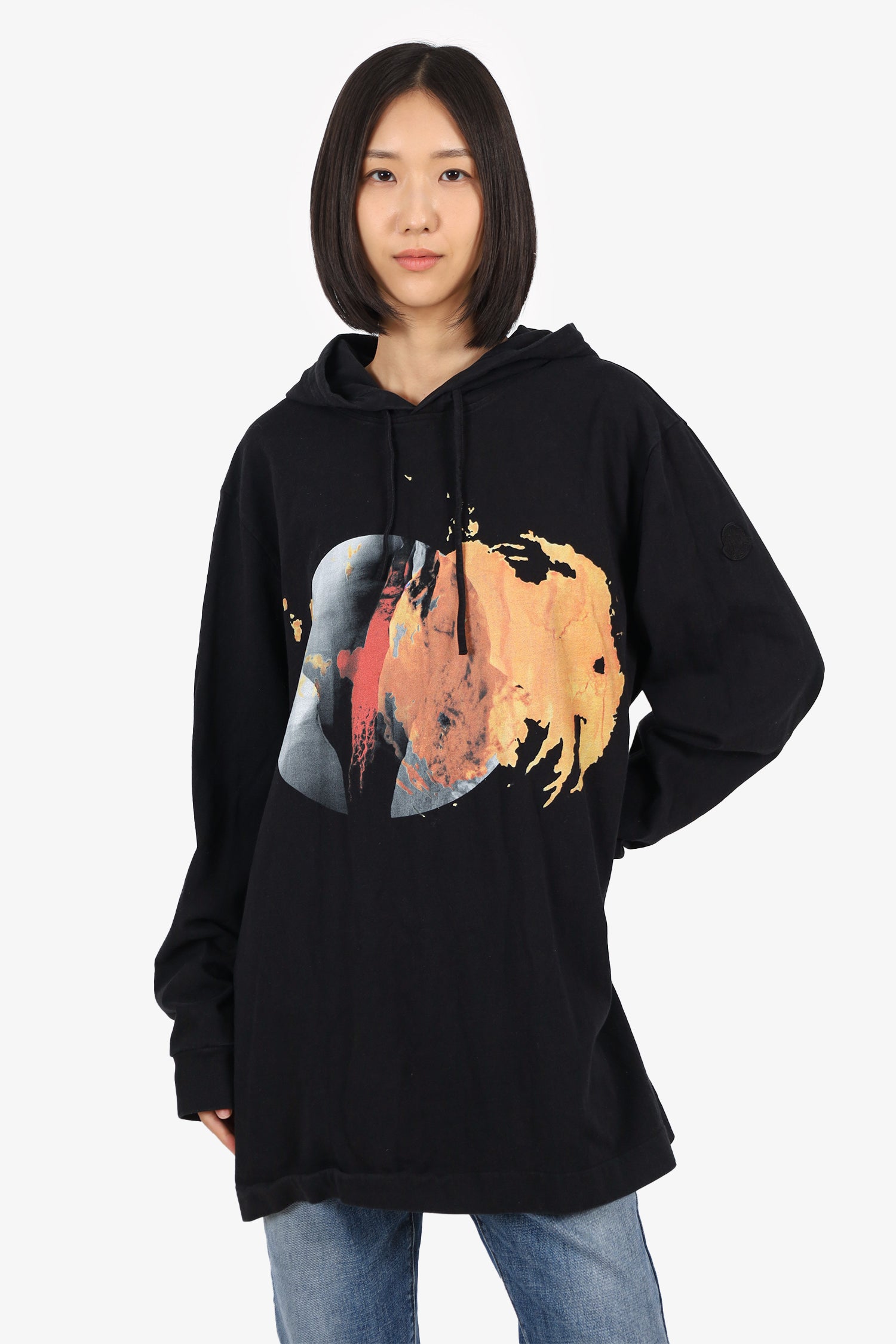 Refresh availabilityMoncler Black Logo Hoodie. Pull-on. Hooded with adjustable drawstrings. Lined interior. Tonal stitching.