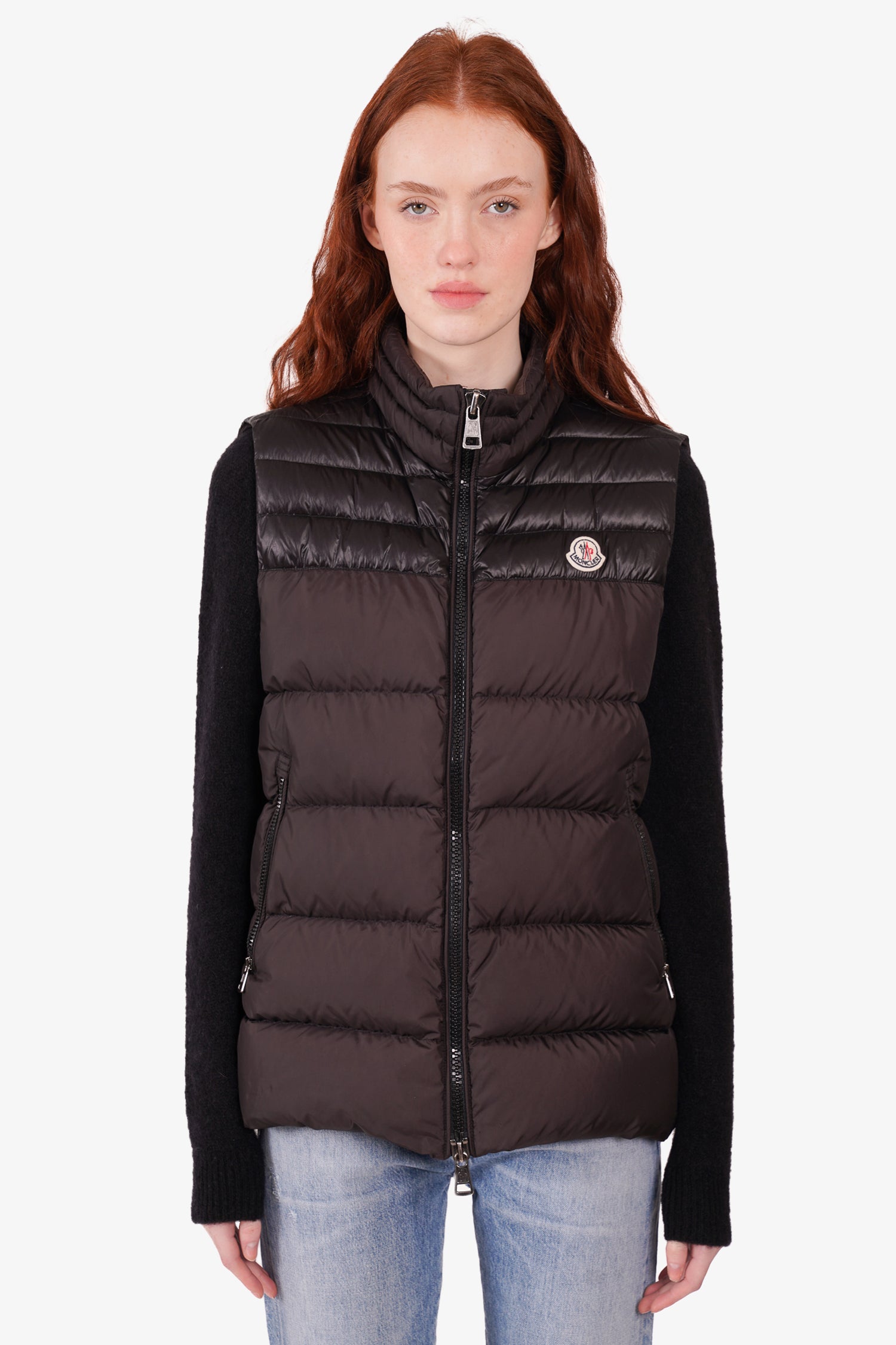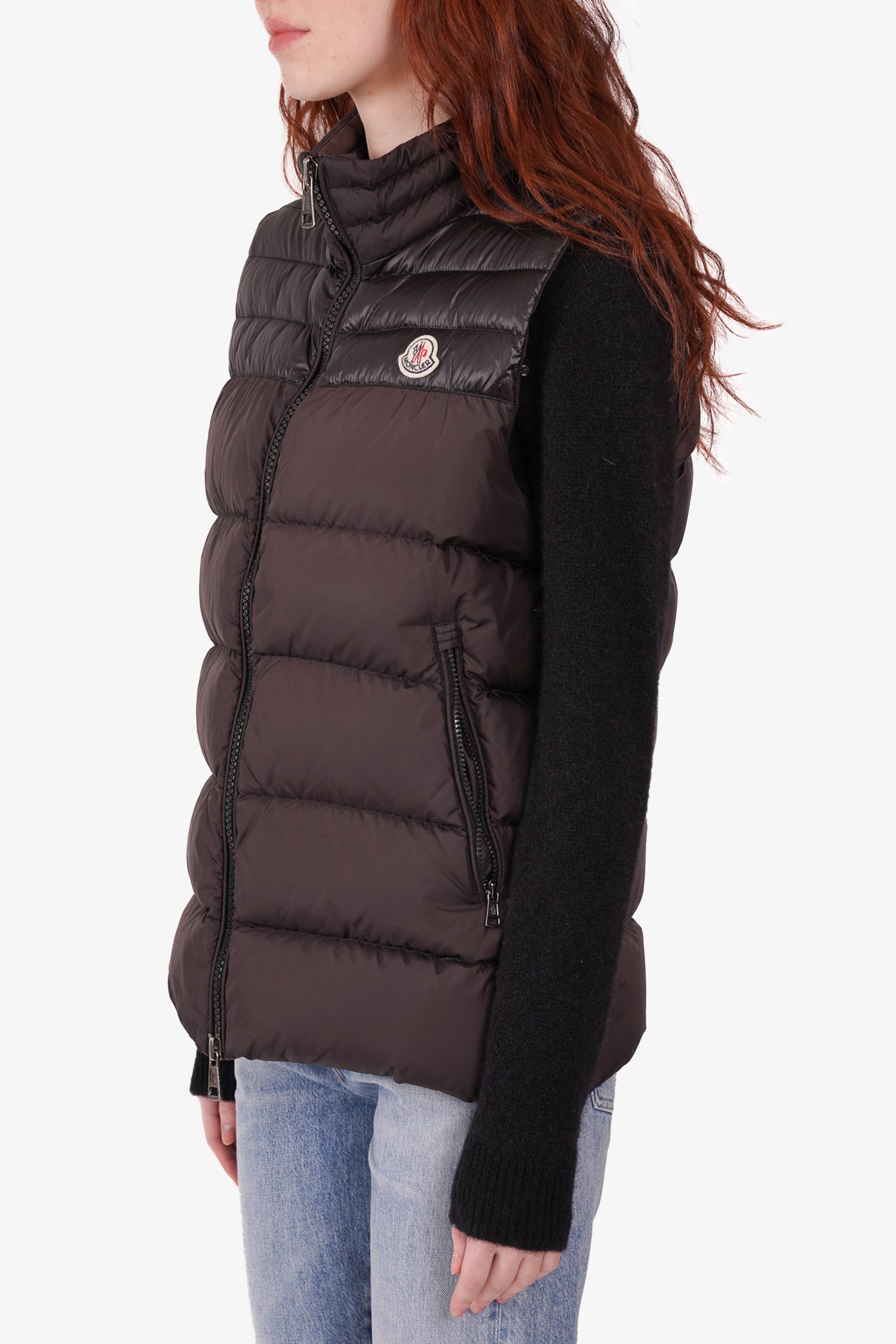 Refresh availabilityMoncler Black Quilted Down Vest. Front two-way zip closure. Front zip pockets. Lined. Tonal stitching.