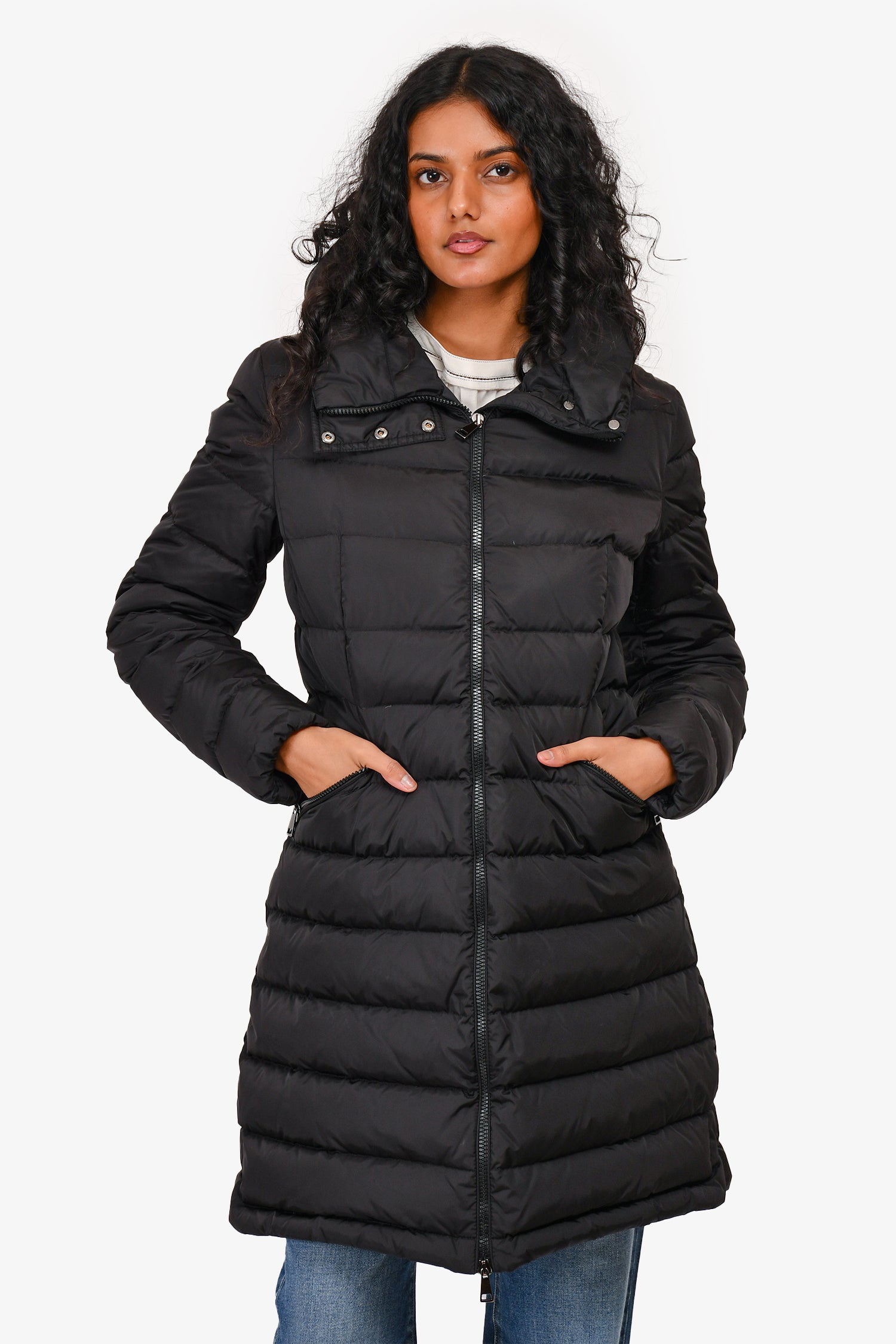 Moncler Black Quilted Mid Length 'Flammette' Down Jacket Size 2