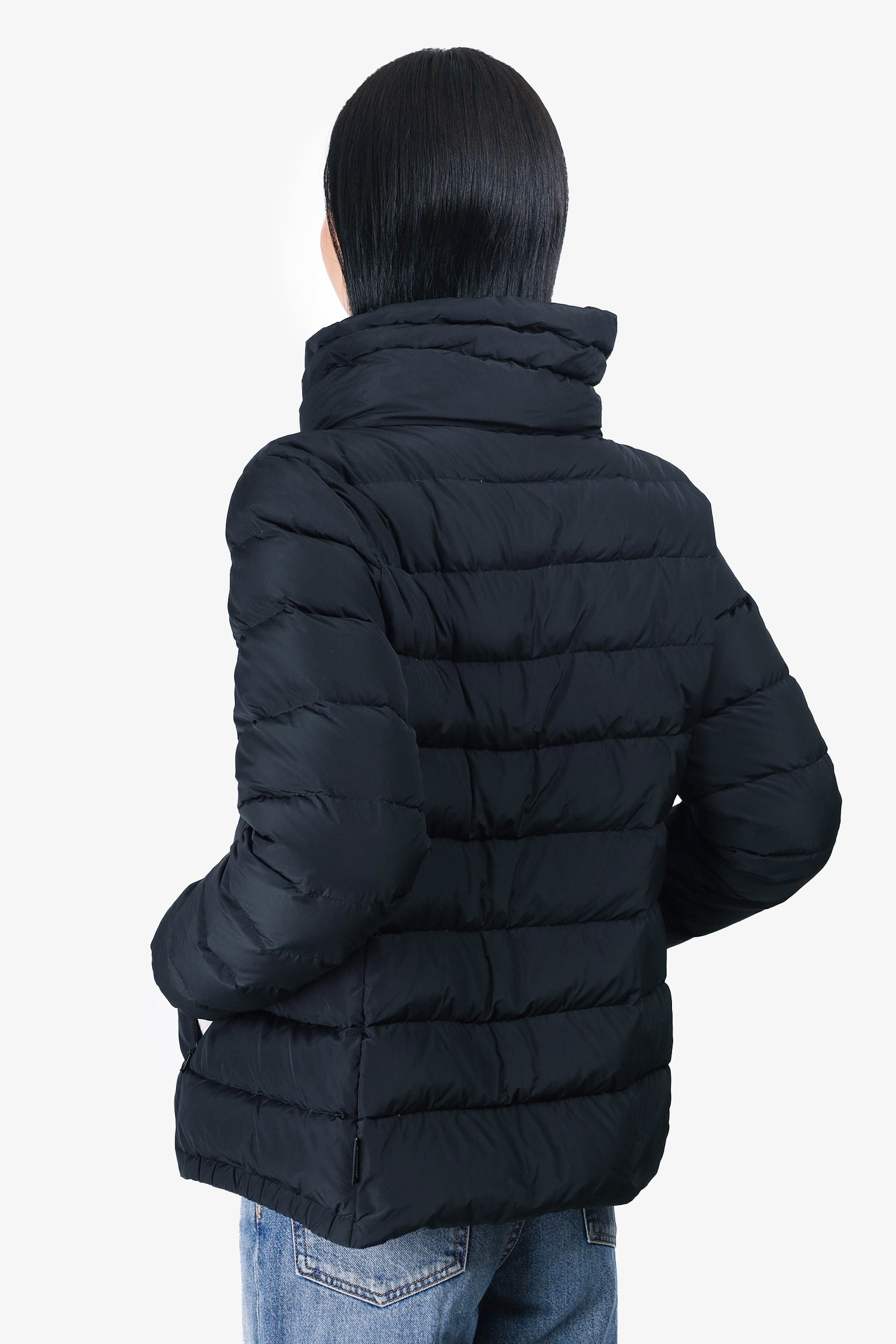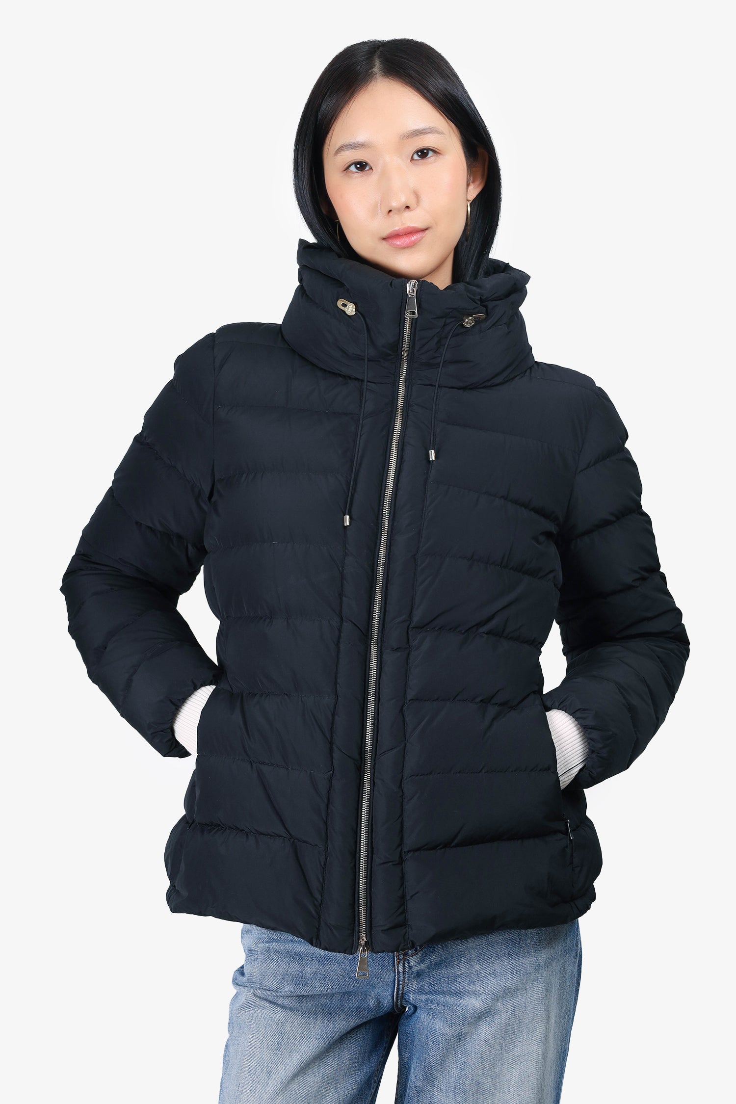 Refresh availabilityMoncler Black Quilted Puffer Jacket. Front zip closure. Cinch detailing on hood. Side zip closure pockets. Gold-tone hardware. Lined. Tonal stitching.