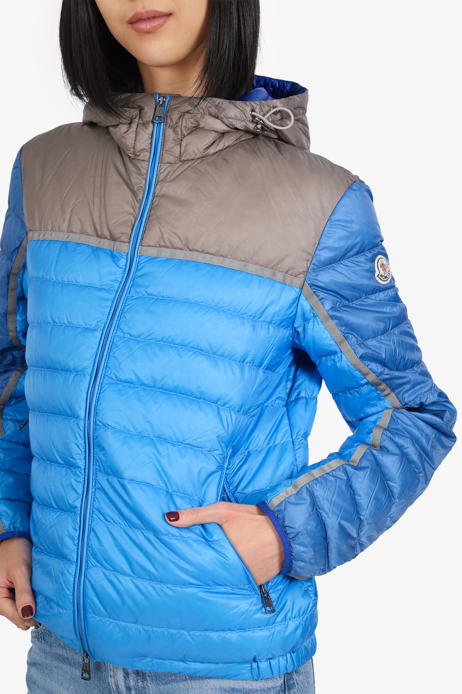 Refresh availabilityMoncler Blue Nylon Arsenal Lightweight Puffer Jacket. Pull-on. Hooded neckline with cinch cord. 2-way front zip closure. 2 exterior front zip pockets. Gunmetal-tone hardware. Contrast and tonal stitching.