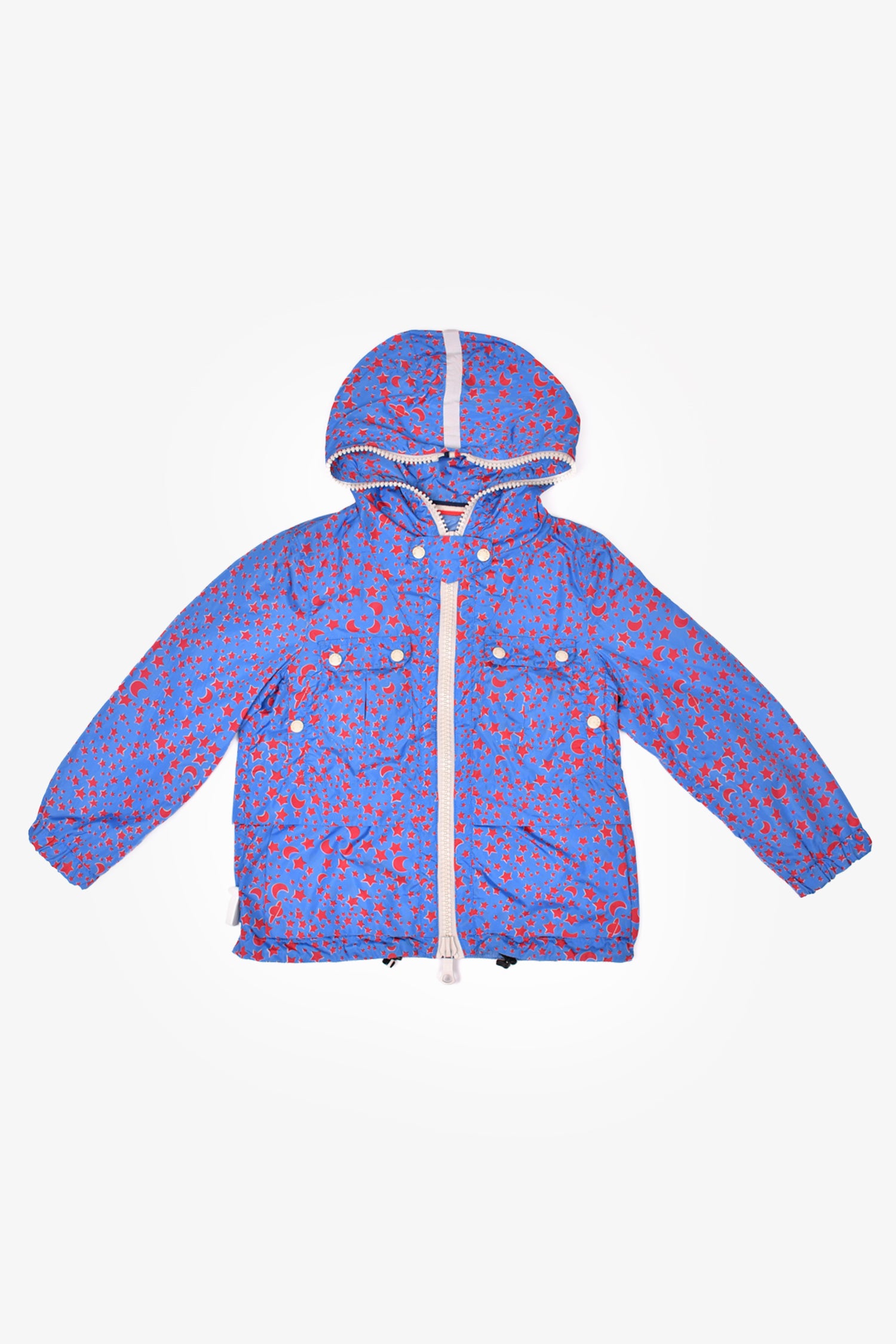Moncler Blue/Red Stars and Moons Nylon Windbreaker with White Zipper 14Y Kids