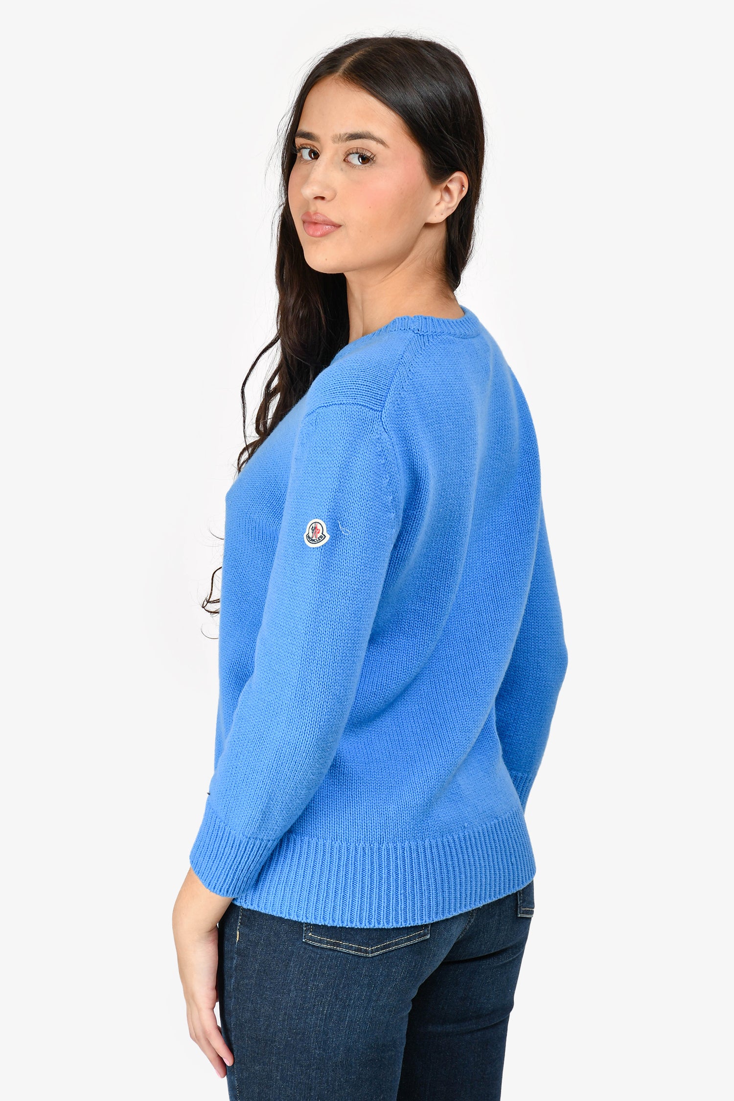 Moncler Blue Wool/Cashmere Logo Embroidered Sweater Size S