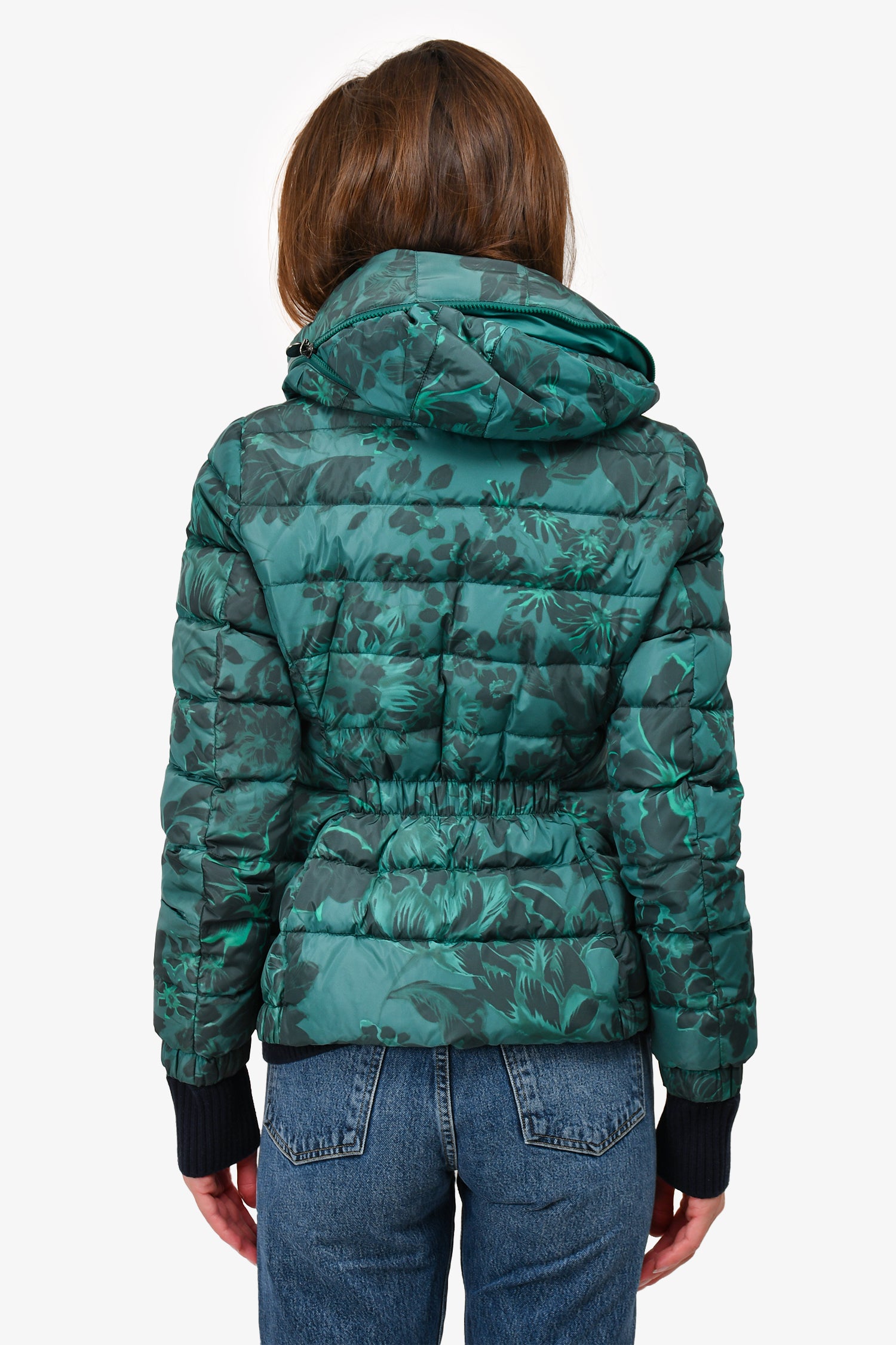 Moncler Green Floral Print Sanglier Giubotto Hooded Down Jacket Size 1