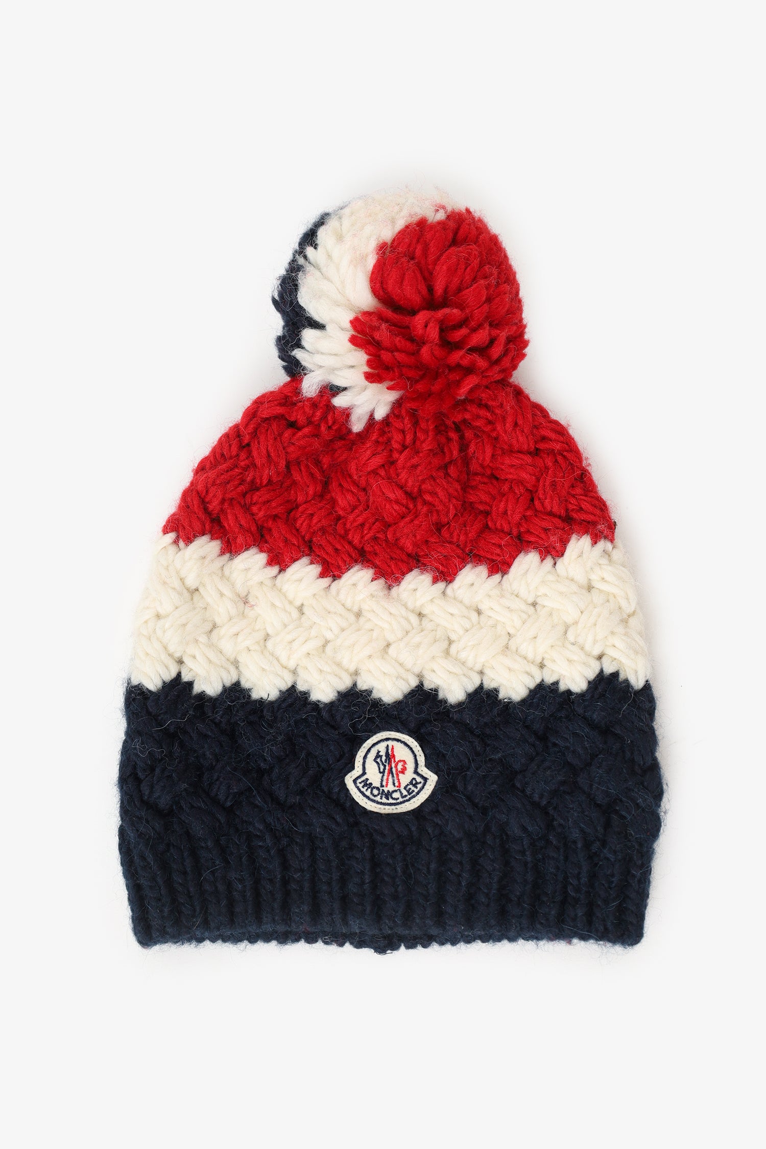 Refresh availabilityMoncler Red/White Wool Knit Bobble Hat. Tonal stitching.