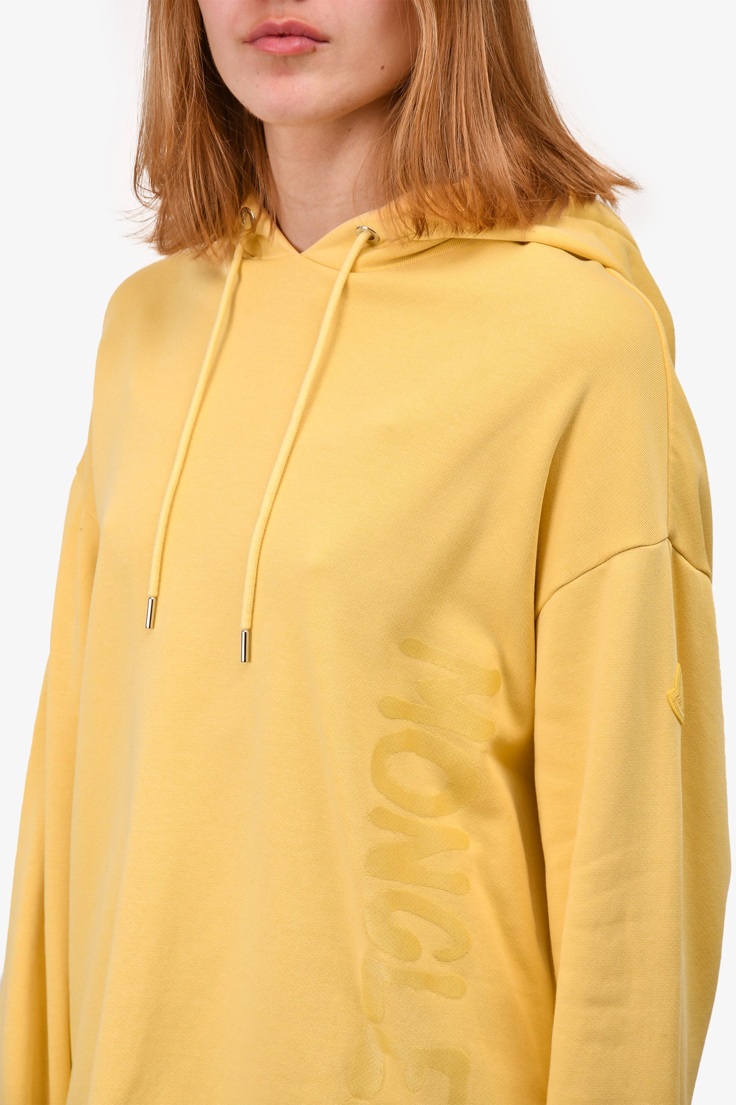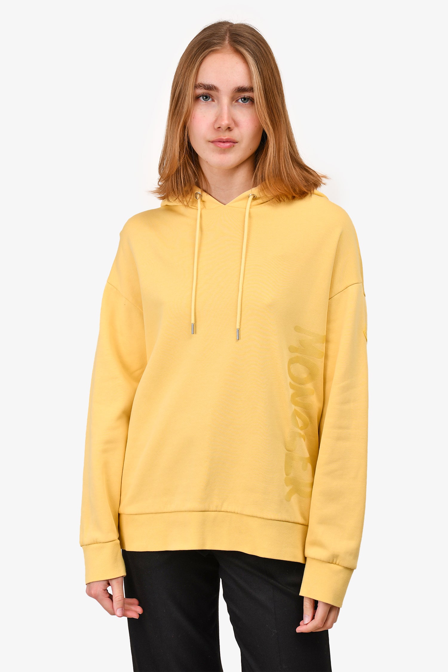 Refresh availabilityMoncler Yellow Logo Printed Hoodies. Drawstring with silver-tone hardware hoodie. Tonal stitching.