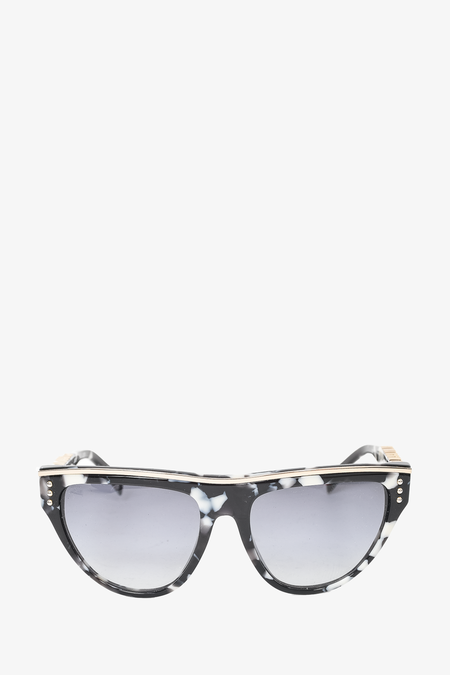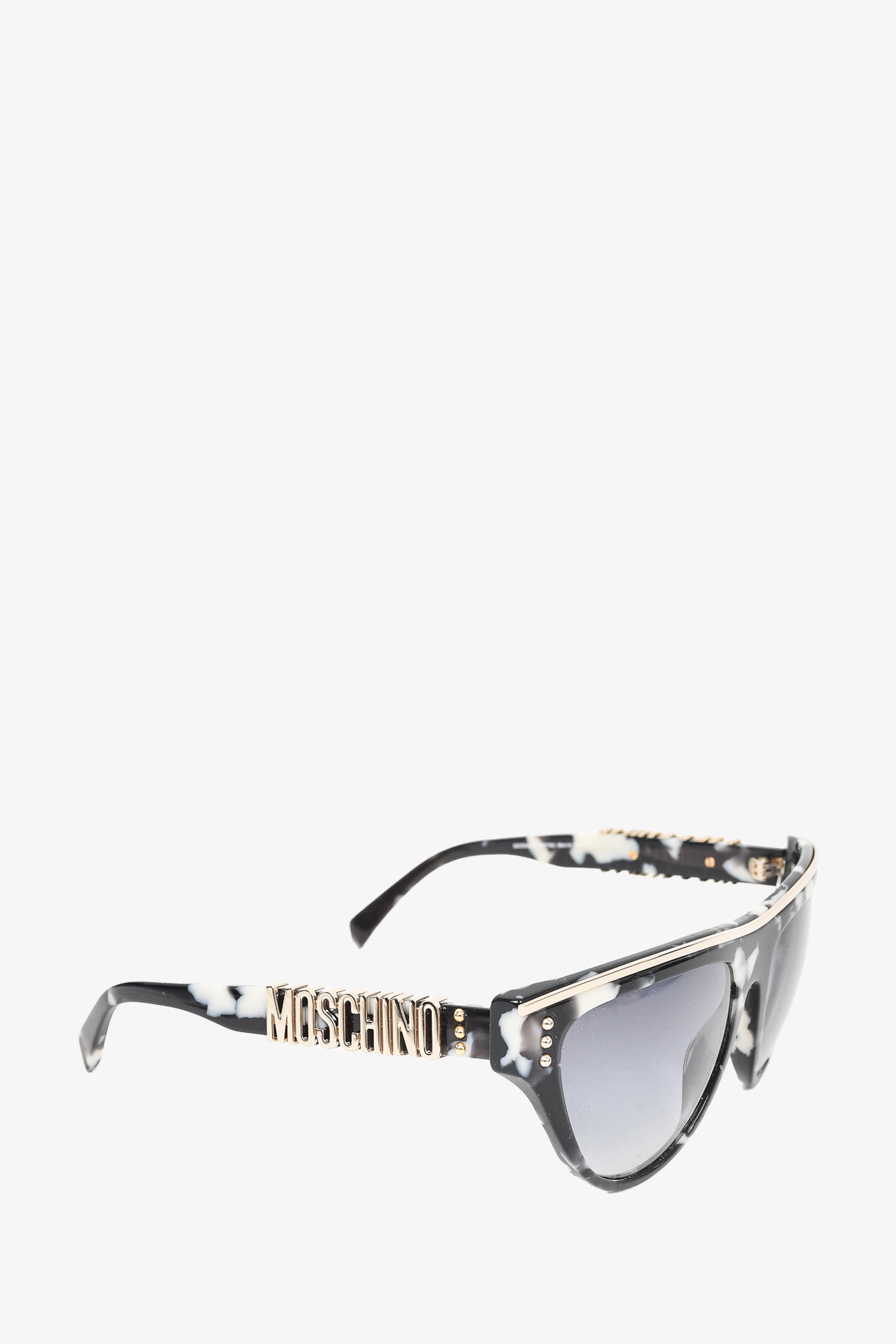 Refresh availabilityMoschino Black/White Marble with Gold Hardware Logo Sunglasses. Built-in nose pads. Gradient lens.