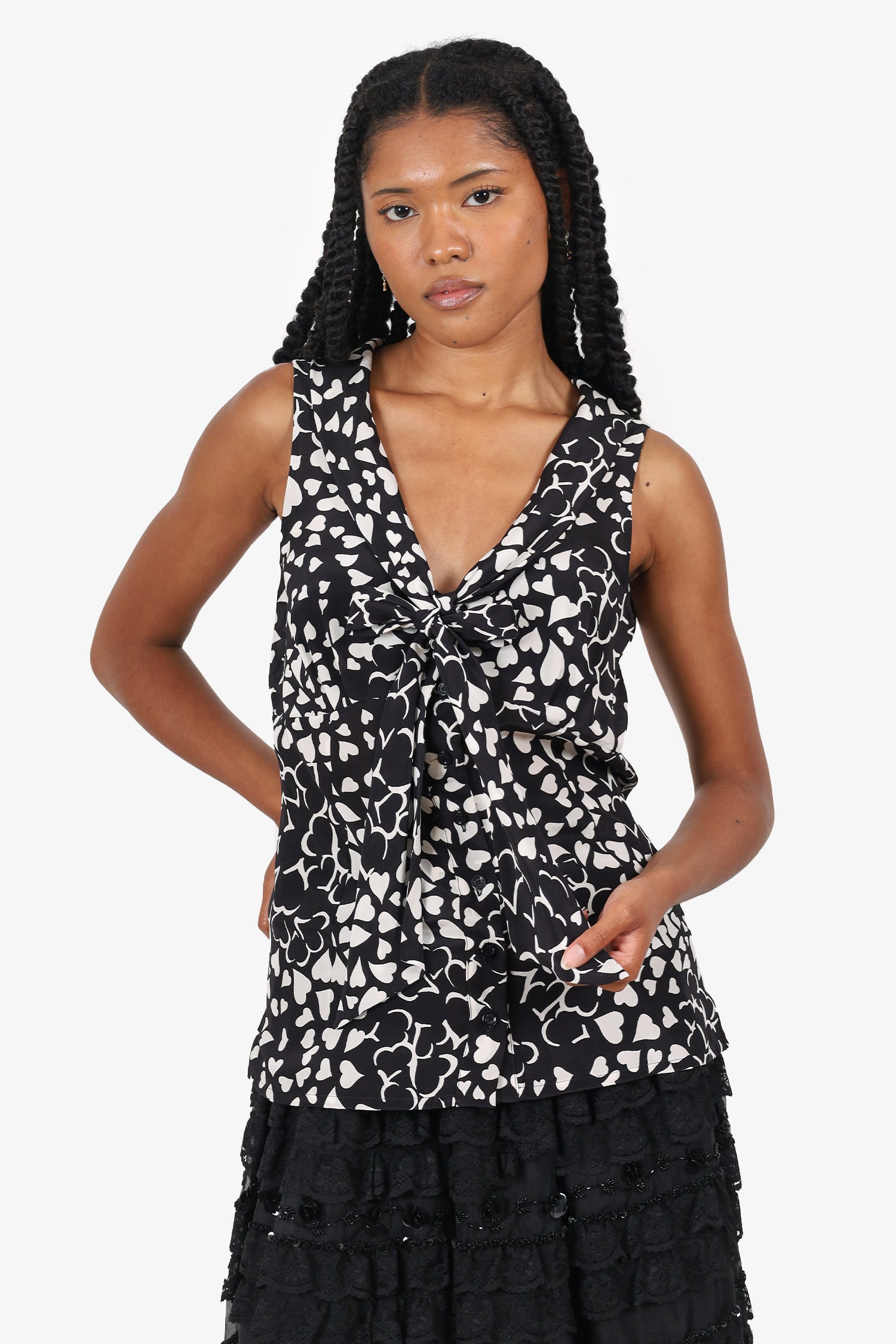 Moschino Black/White Silk Heart Print Sleeveless Blouse Size 10