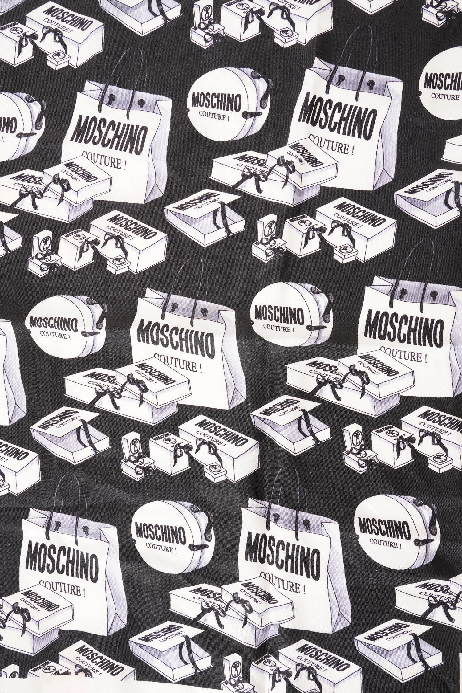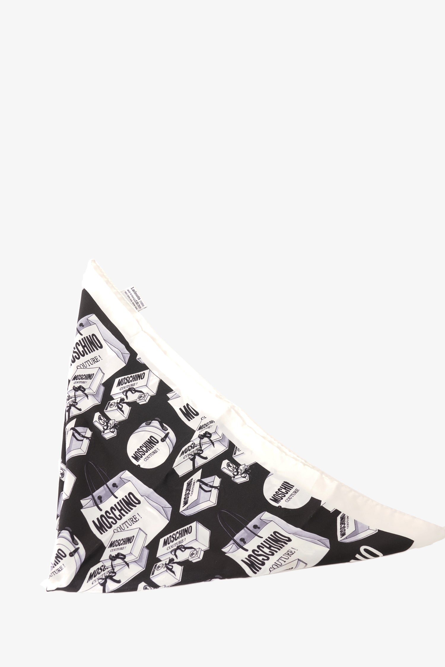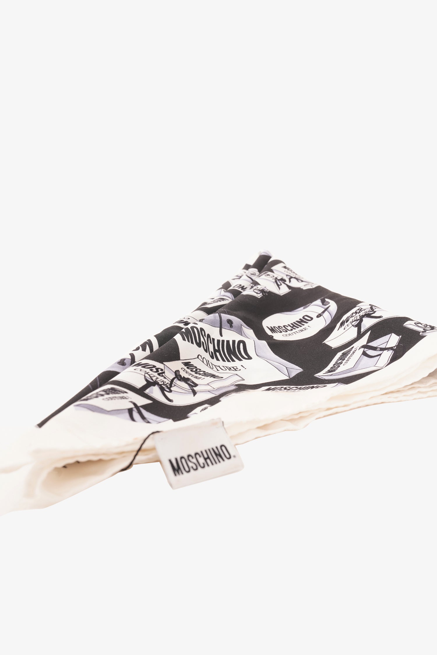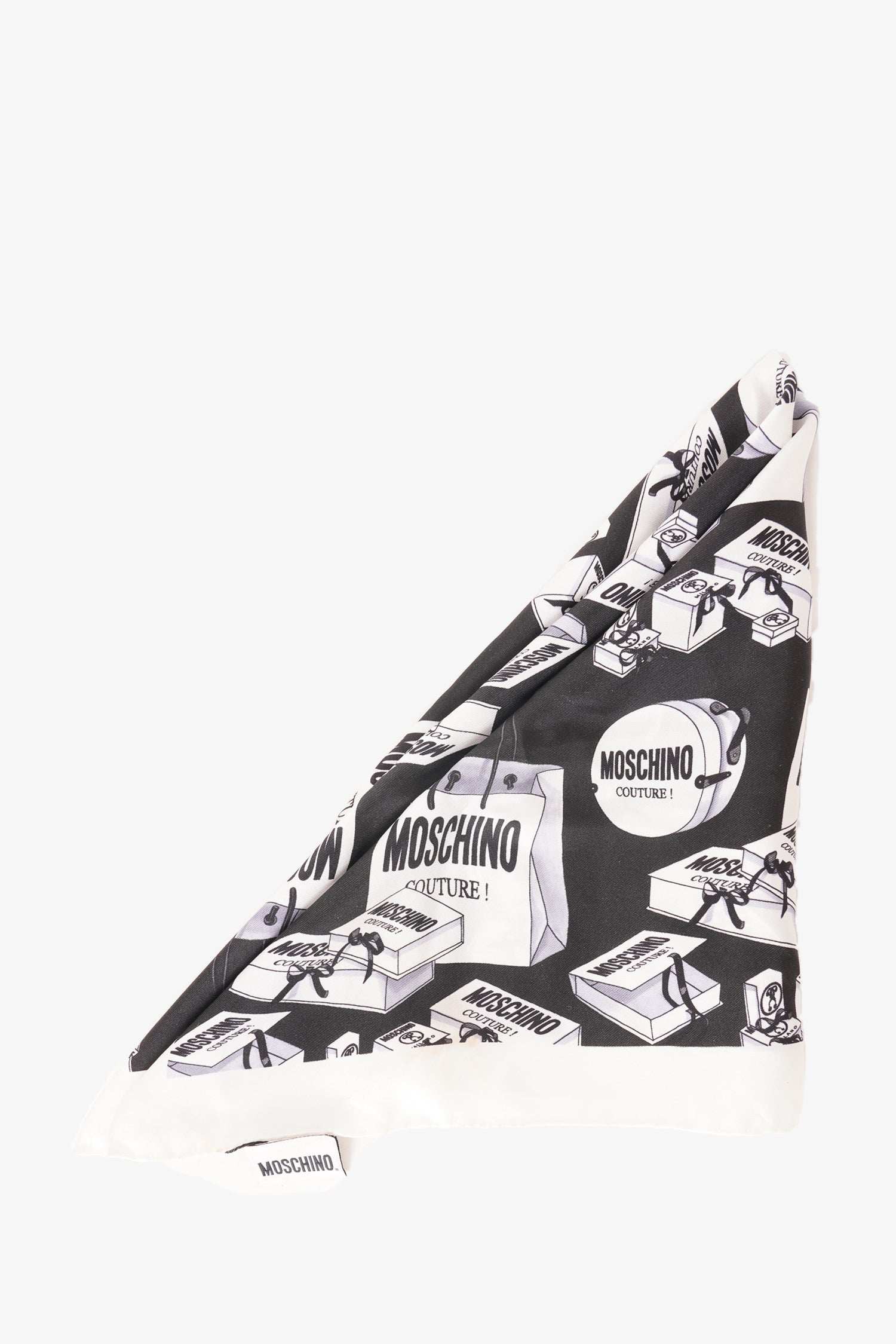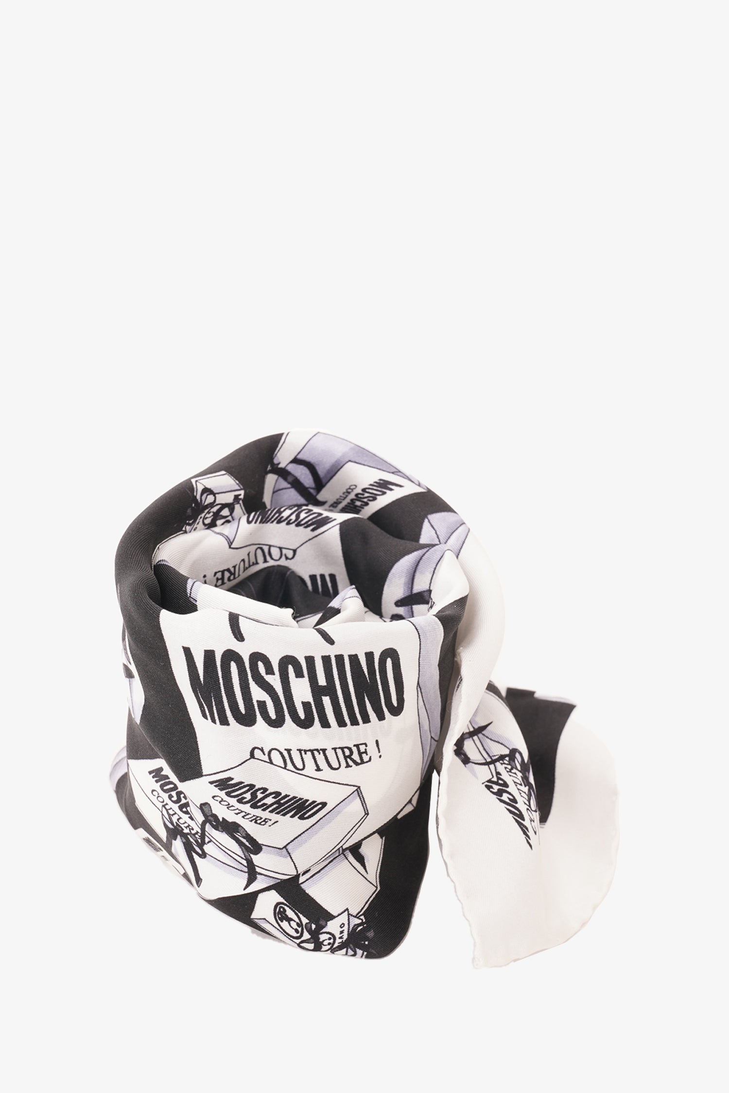 Refresh availabilityMoschino Black/White Silk Patterned Scarf. Tonal stitching.