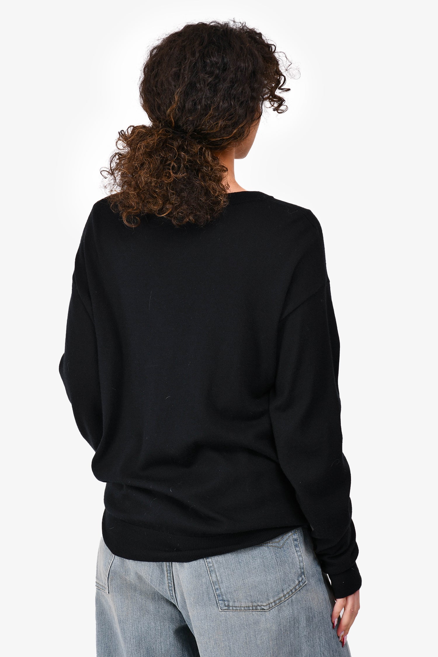 Moschino Black Wool White Logo Patch Crewneck Sweater Size 10