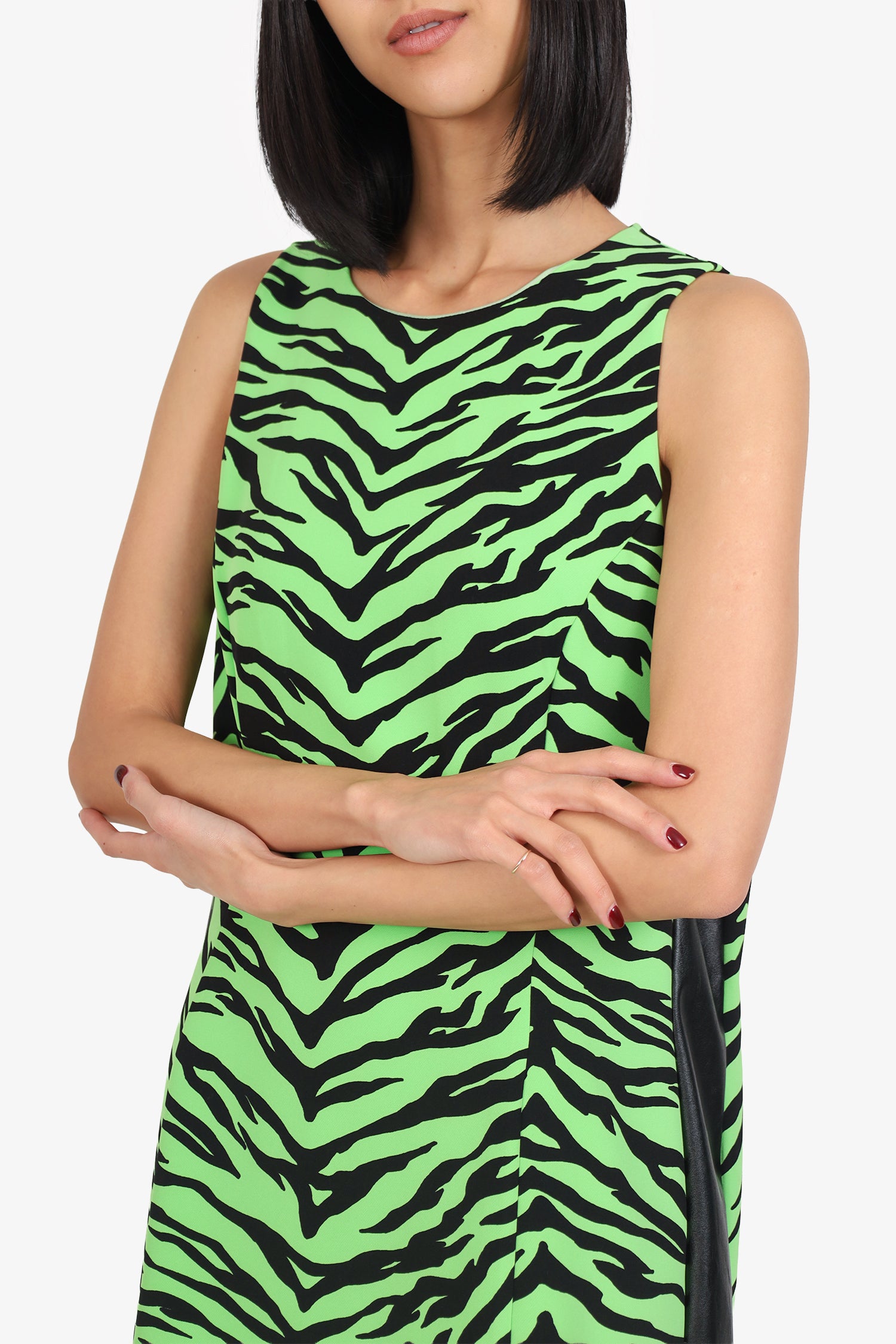 Refresh availabilityMoschino Cheap & Chic Green/Black Zebra Print Dress. Slip-on. Round neckline. Rear zip closure. Lined interior. Tonal stitching.