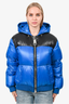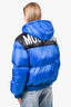 Moschino Cobalt Blue/Black Logo Down Puffer Jacket Size 34