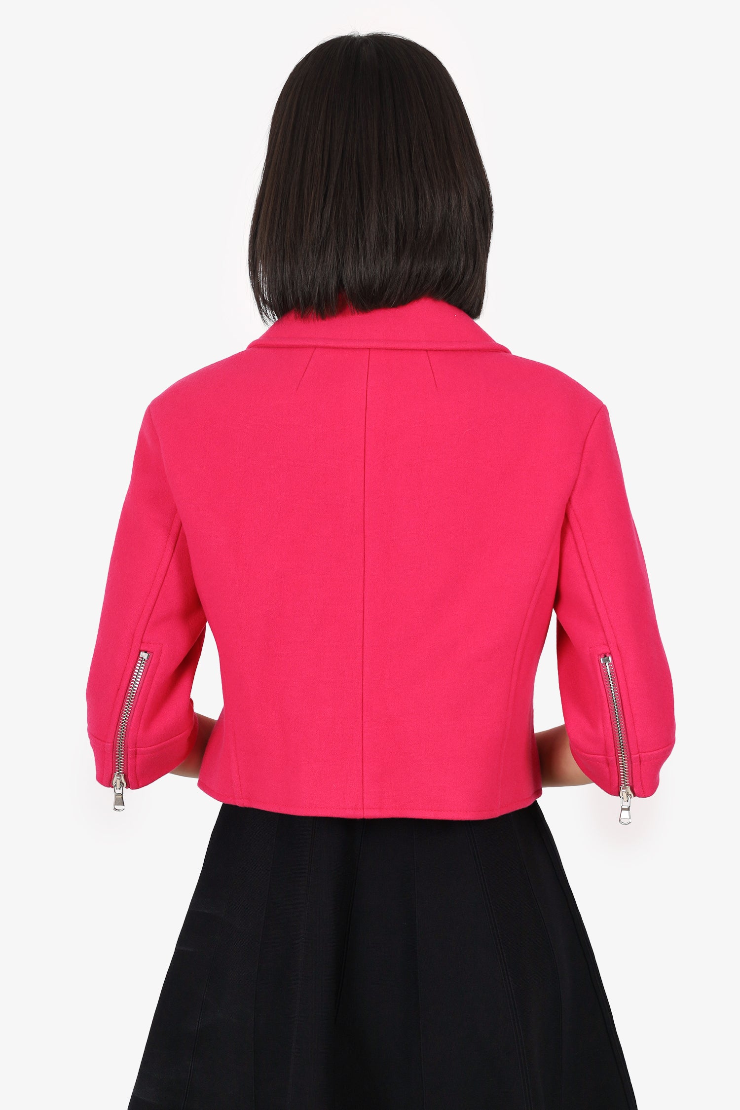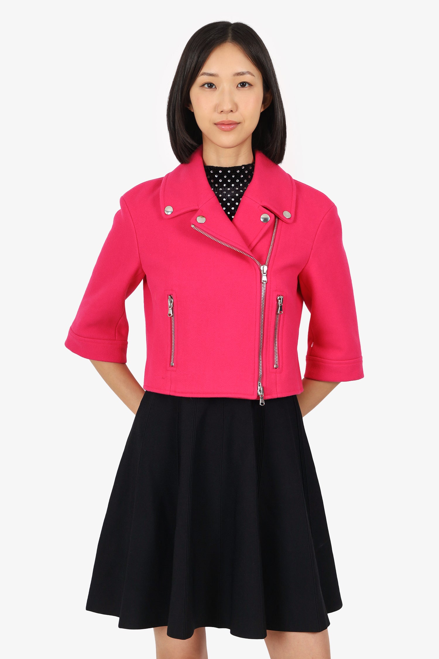 Moschino Couture Pink Wool Cropped 'Jackie-O' Biker Jacket Size 8