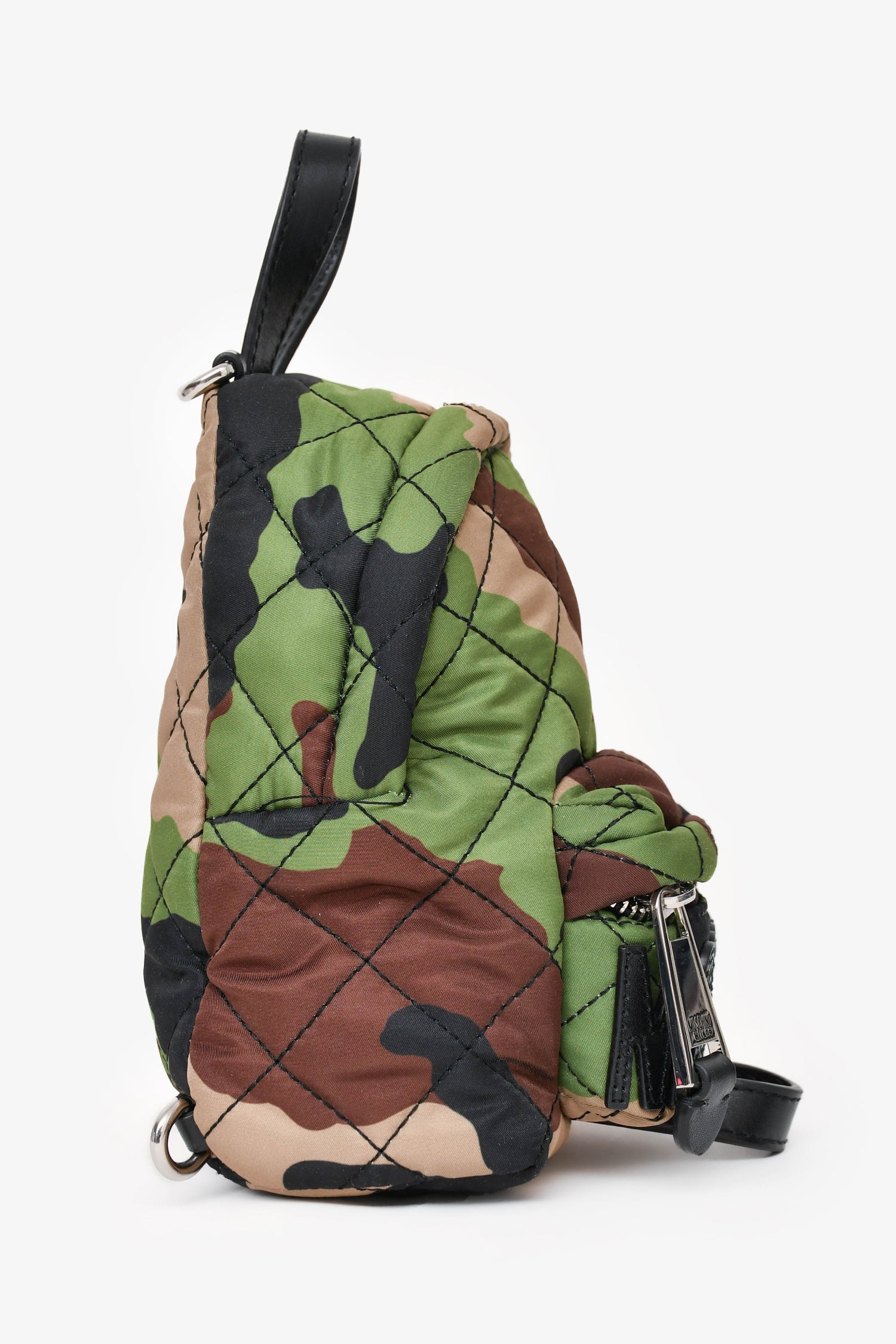 Moschino Green Cloth Quilted Logo Patched Mini Backpack