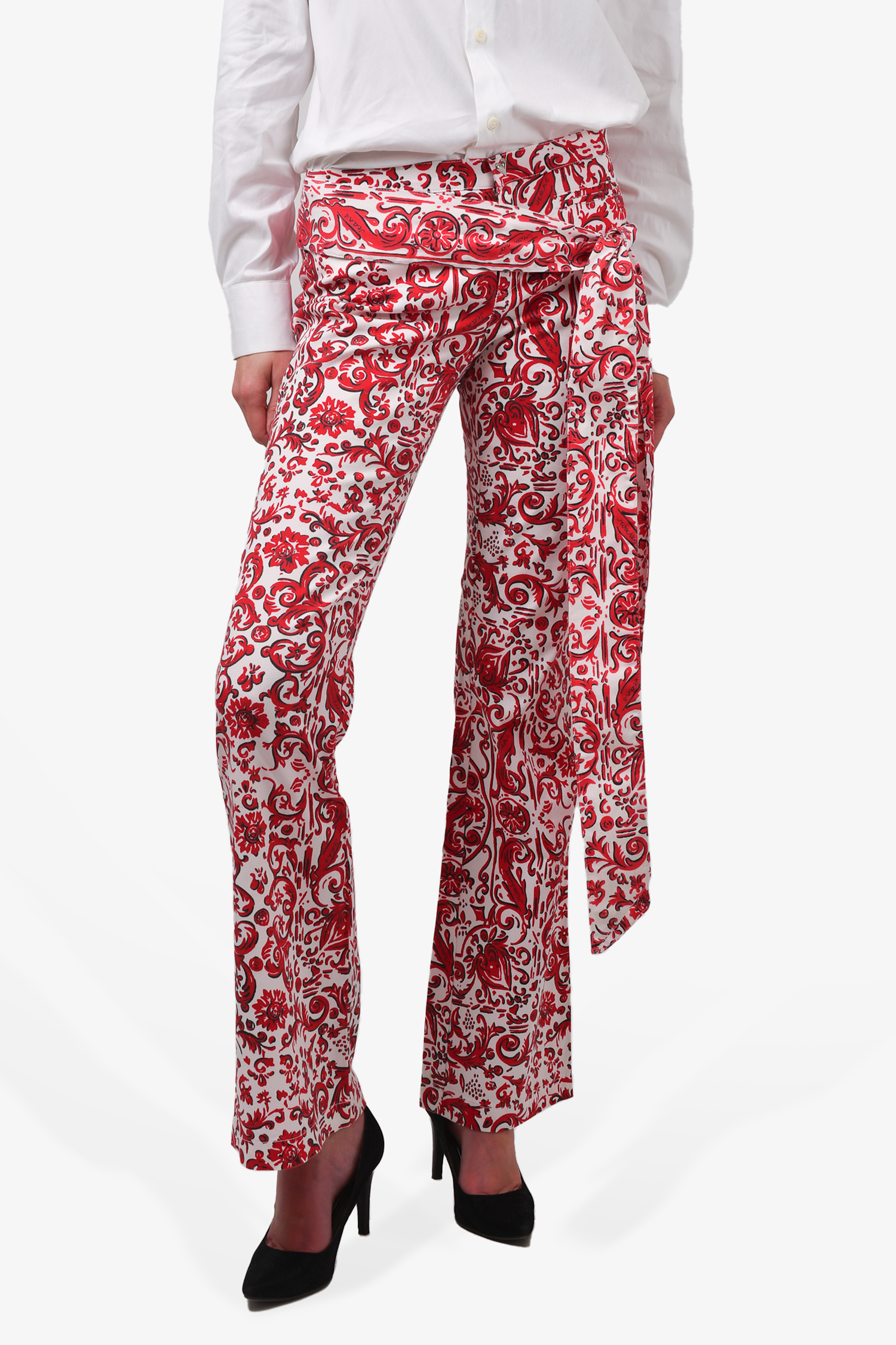 Moschino Jeans White/Red Printed Denim Sash Belted Micro Flared Jeans Size 6 US